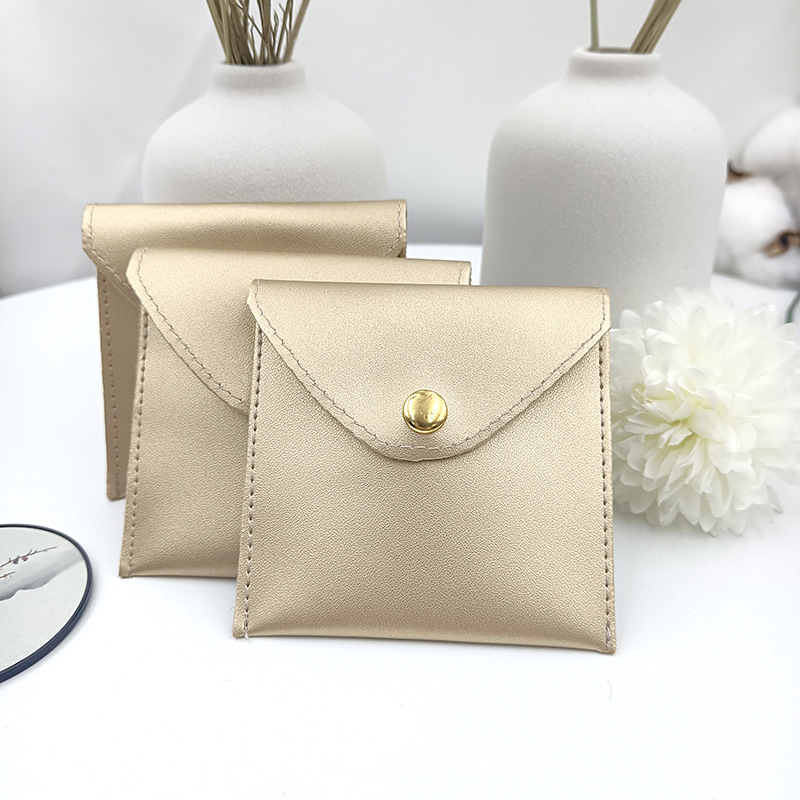 Индивидуальный свежий позолоченный PU кожаный мешочек на защелке, популярный мини-мешочек для упаковки украшений, мешочек с возможностью нанесения логотипа.