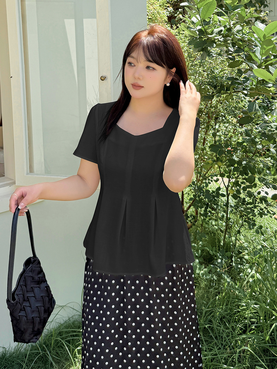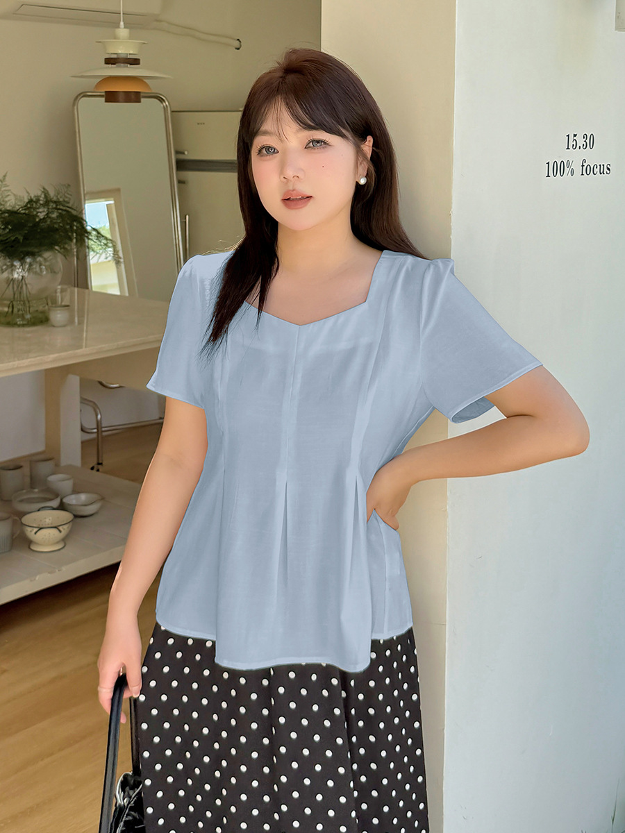 Французский квадратный воротник со сладким коротким рукавом шифоновая рубашка женский 2025 летний новый талия, чтобы покрыть живот лотос блузка 212395