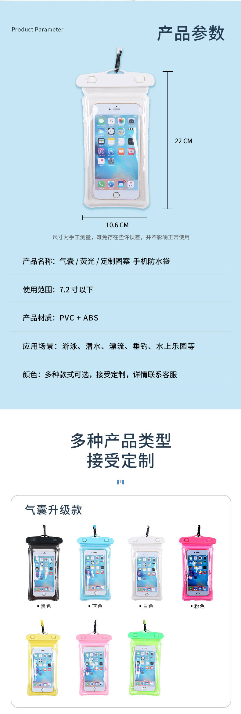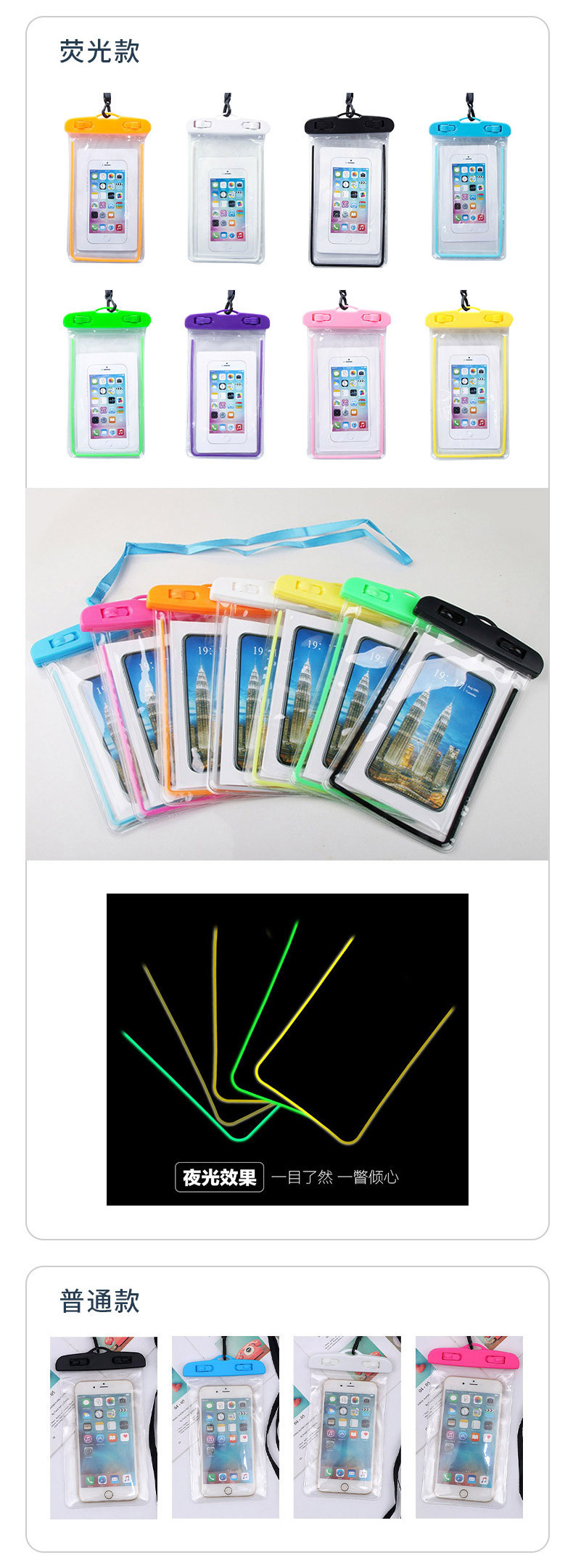 Прозрачный водонепроницаемый чехол для мобильного телефона с сенсорным экраном для дайвинга, плавания, рафтинга, купания в горячих источниках, курьеров, светящийся водонепроницаемый чехол для телефона
