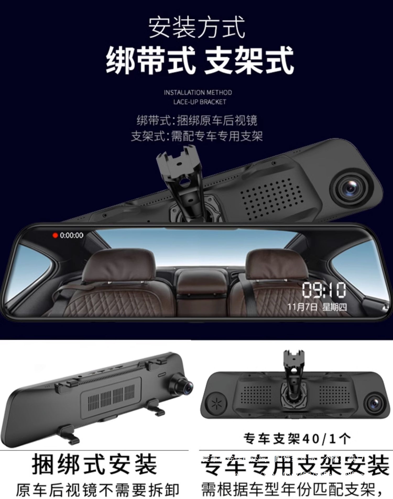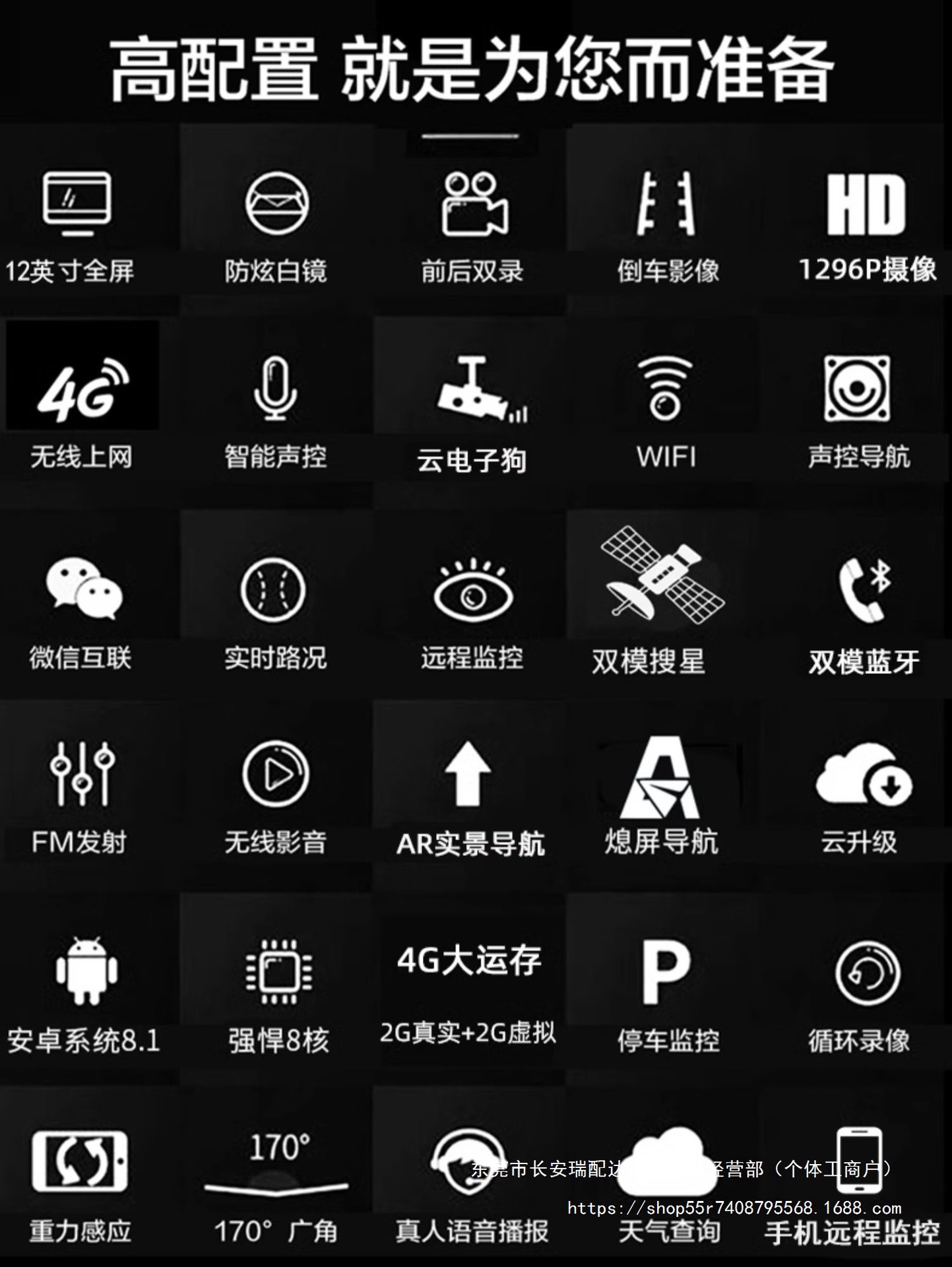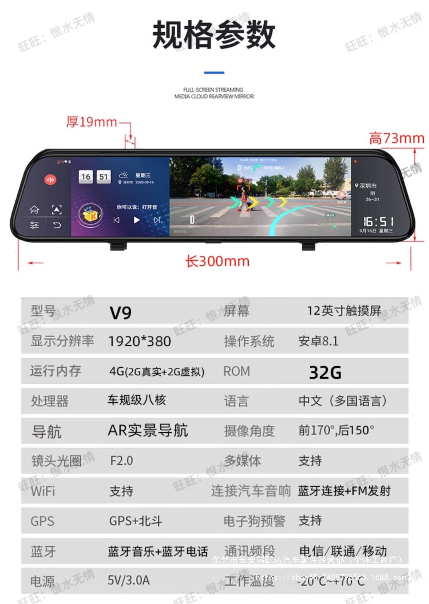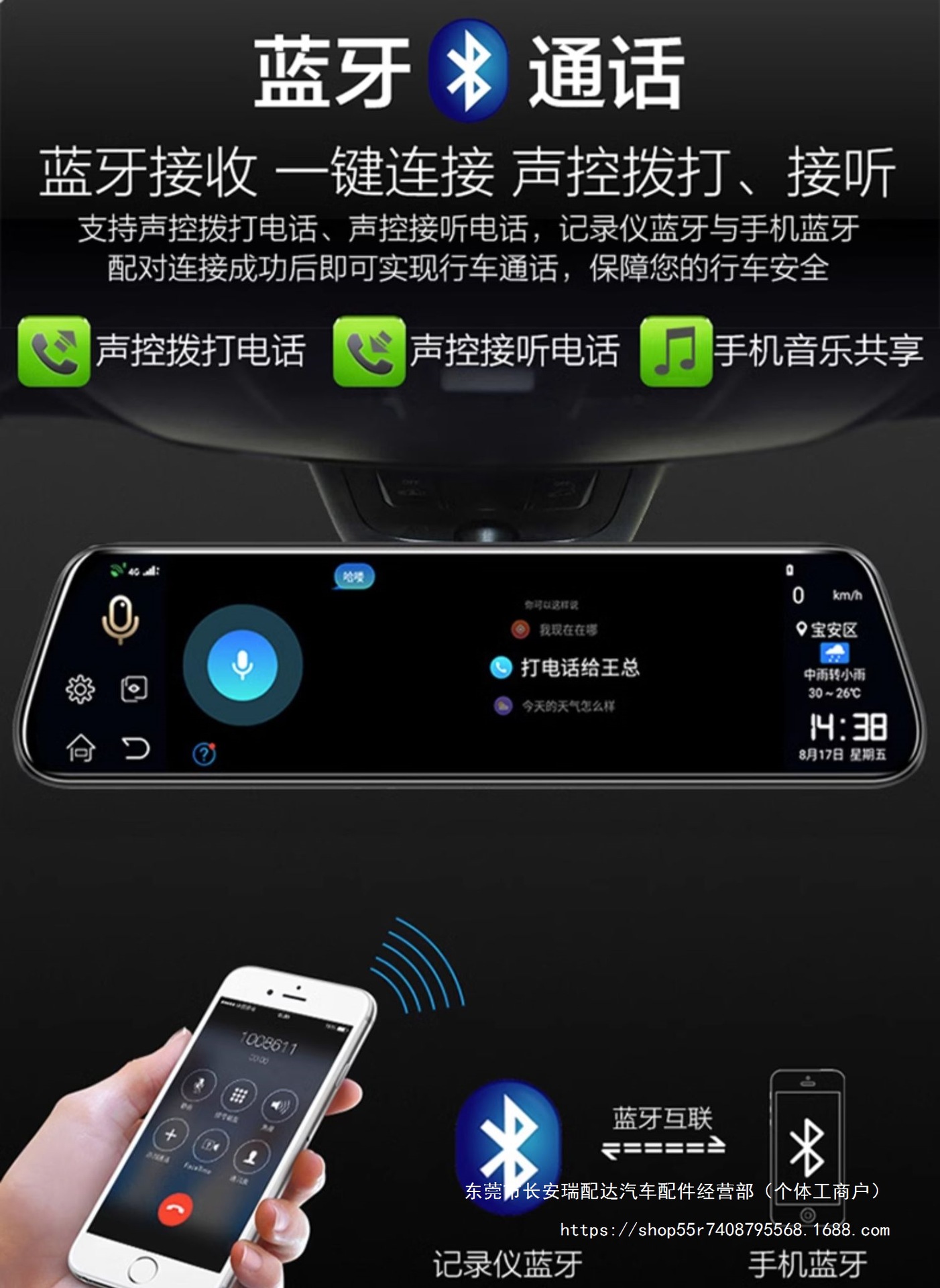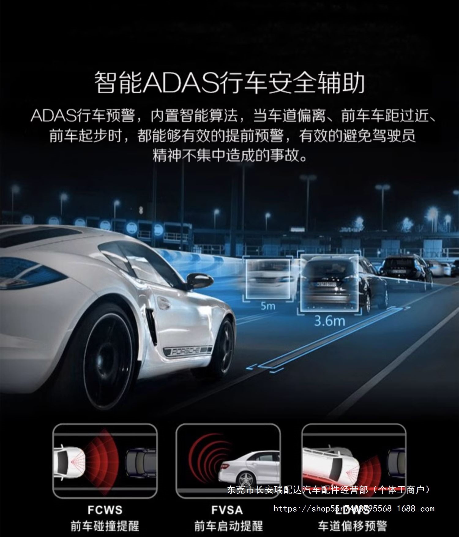 Bluetooth, GPS-навигация, позиционирование, изображение заднего вида, обнаружение движения, циклическая запись, измерение фиксированной скорости, мониторинг парковки, заполняющий свет ночного видения, помощь при смене полосы движения, запуск переднего автомобиля