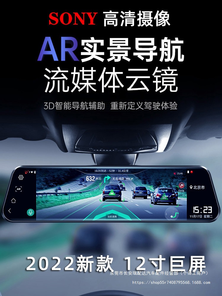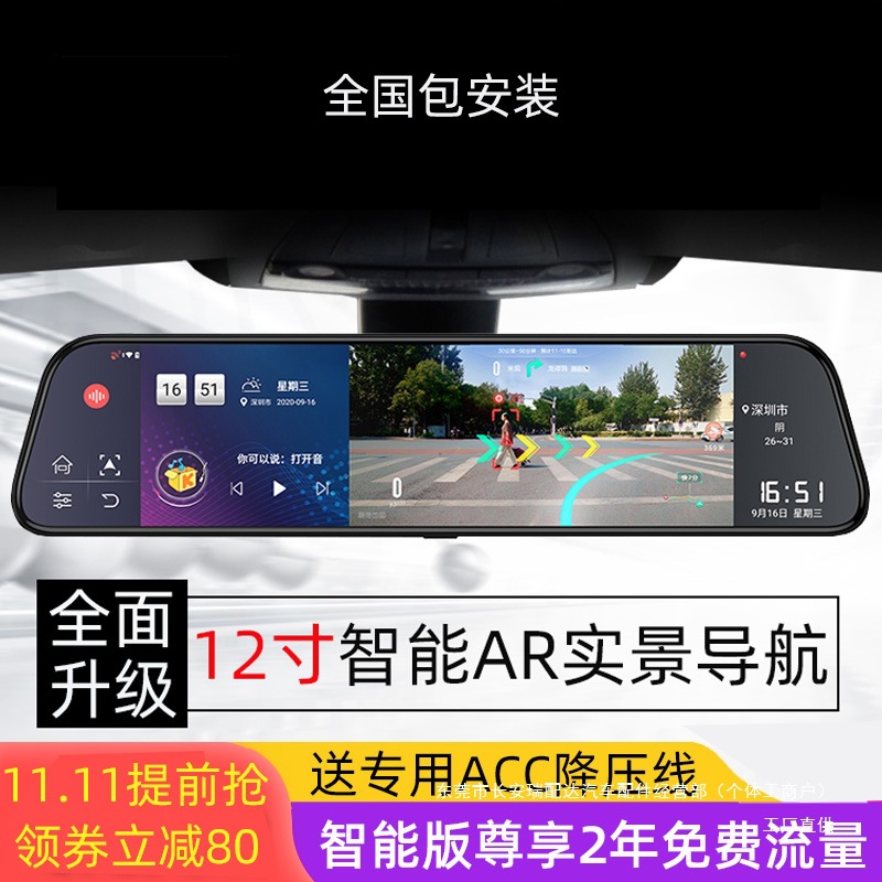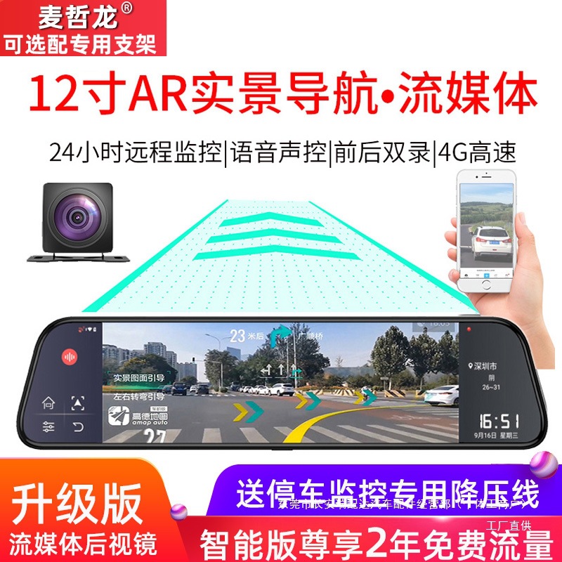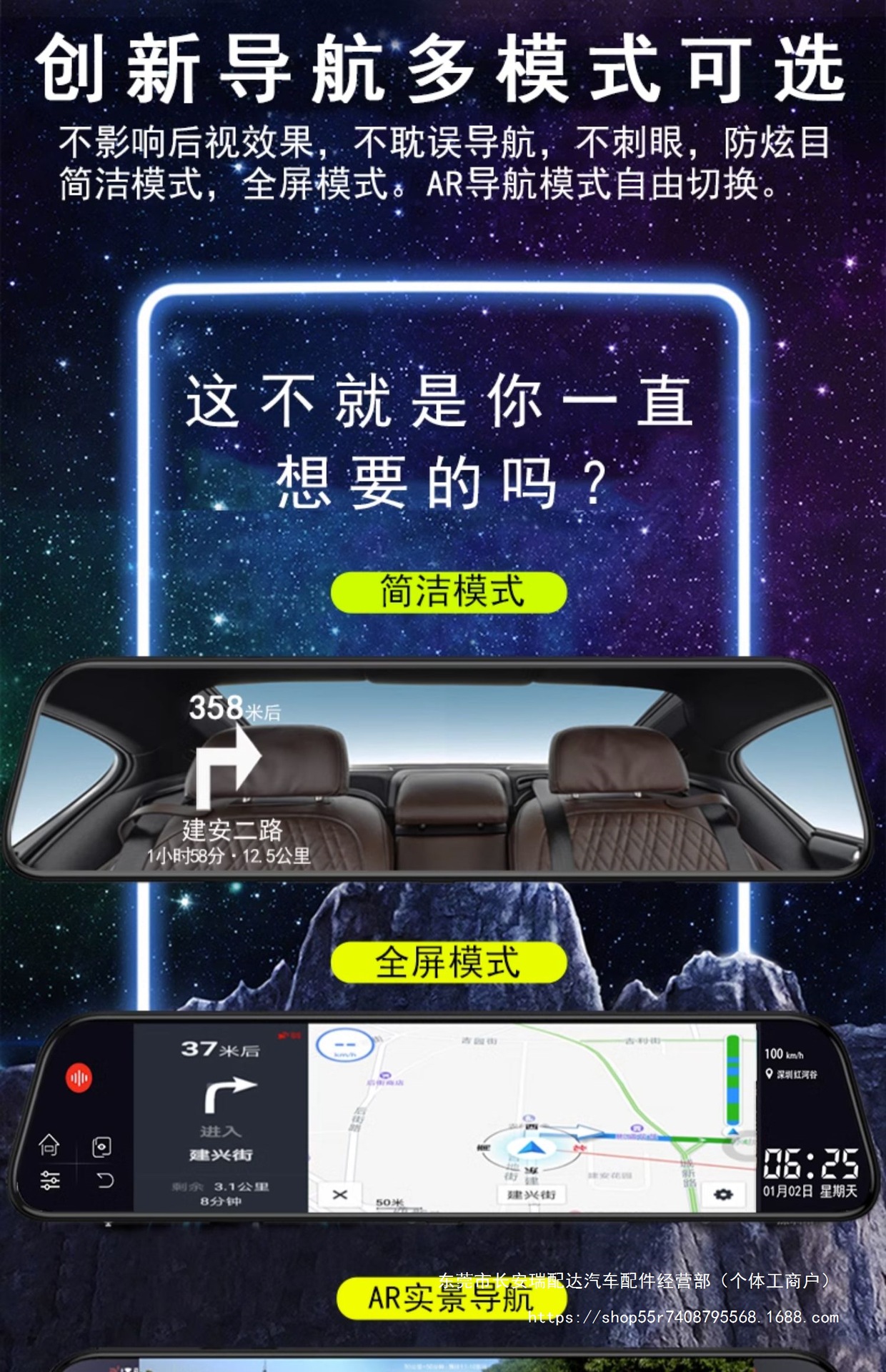 Регистратор для вождения, новая модель 2024 года, передняя и задняя двойная камера, потоковое зеркало заднего вида, умная навигация, реверсивное изображение Yirui