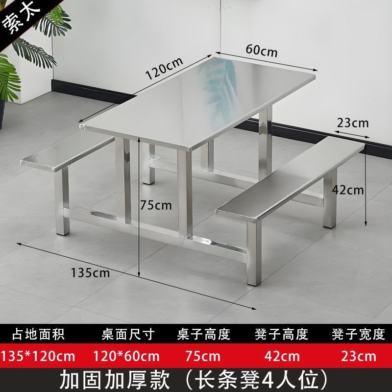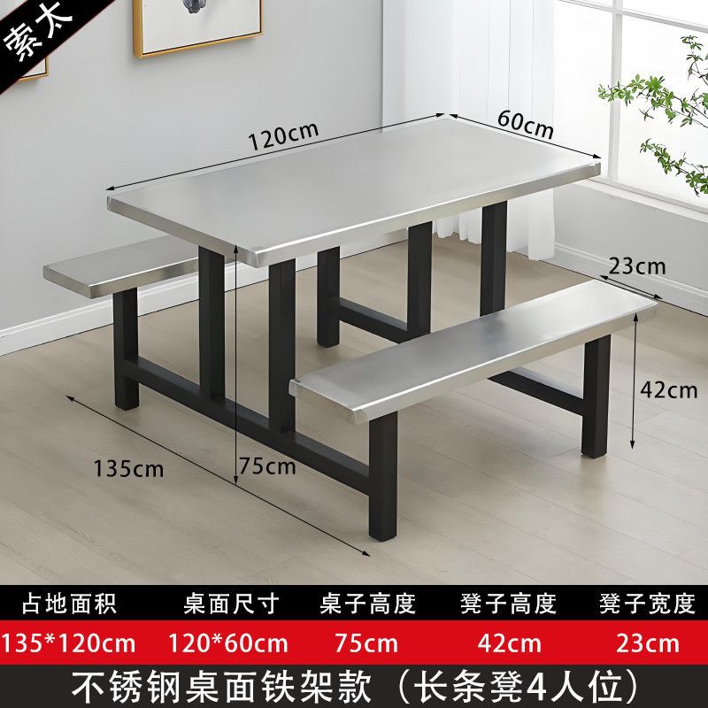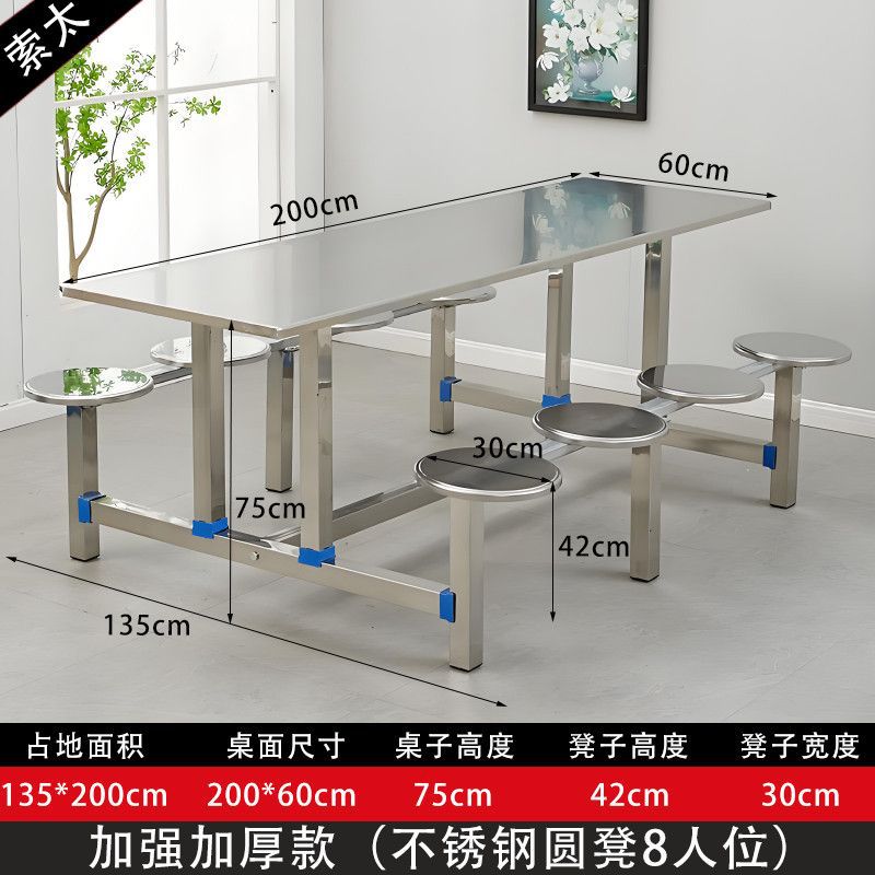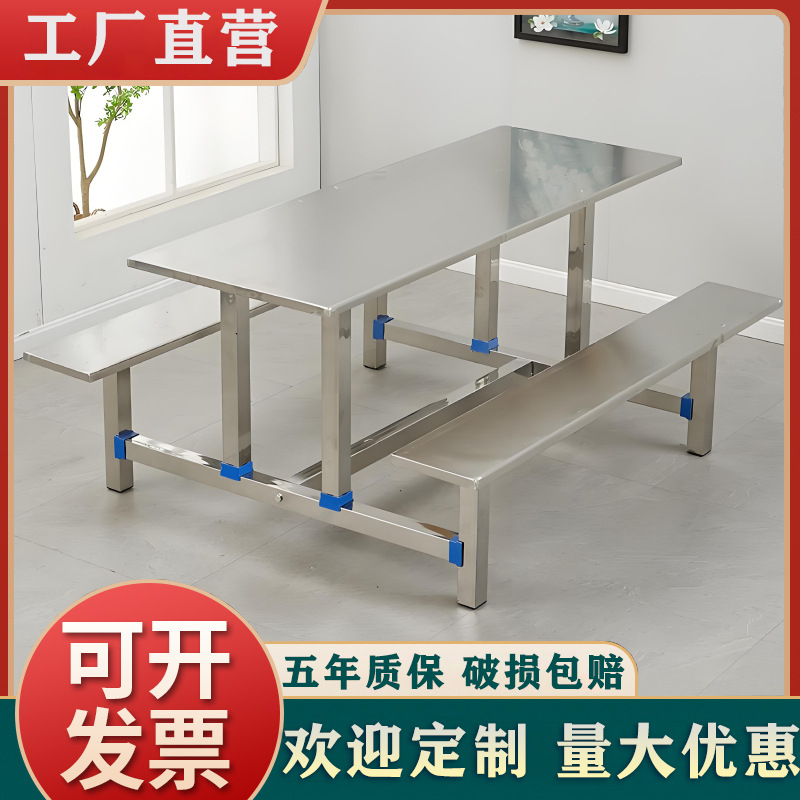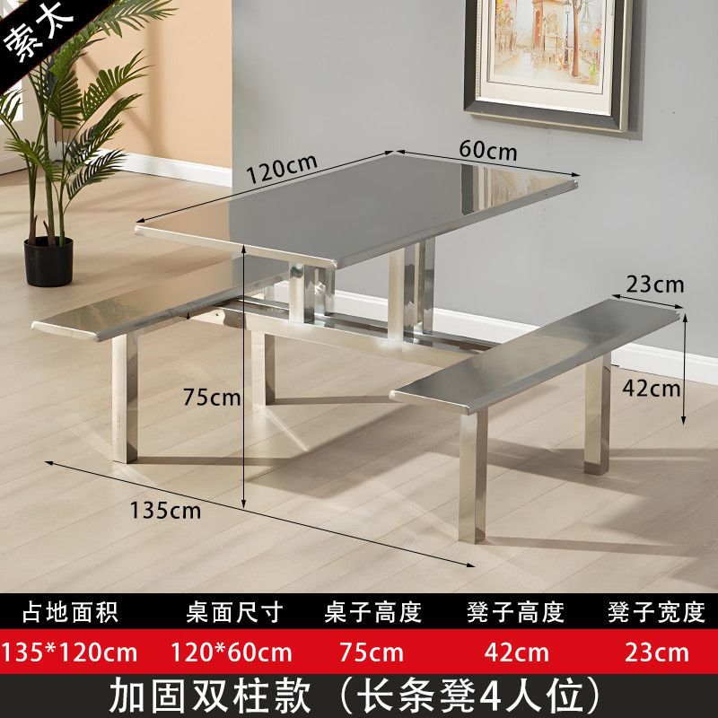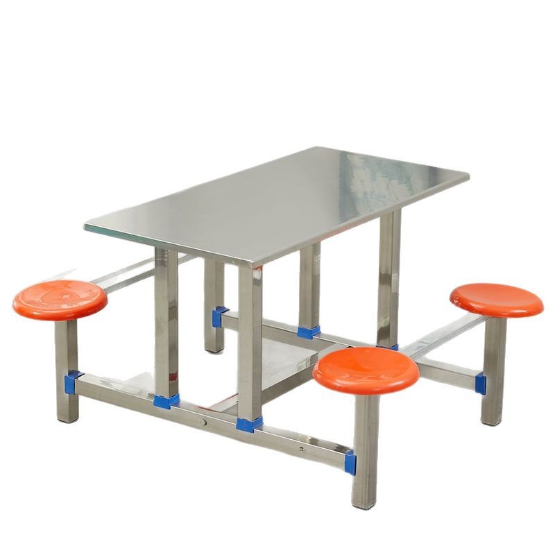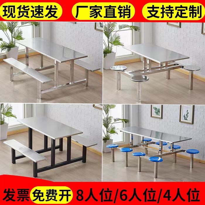 Обеденный стол и стулья из нержавеющей стали для школьной столовой, столовой сотрудников компании, индивидуальная настройка стола для быстрого питания на 4 и 8 человек.