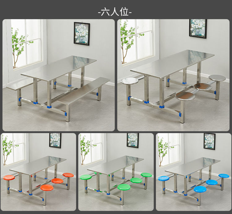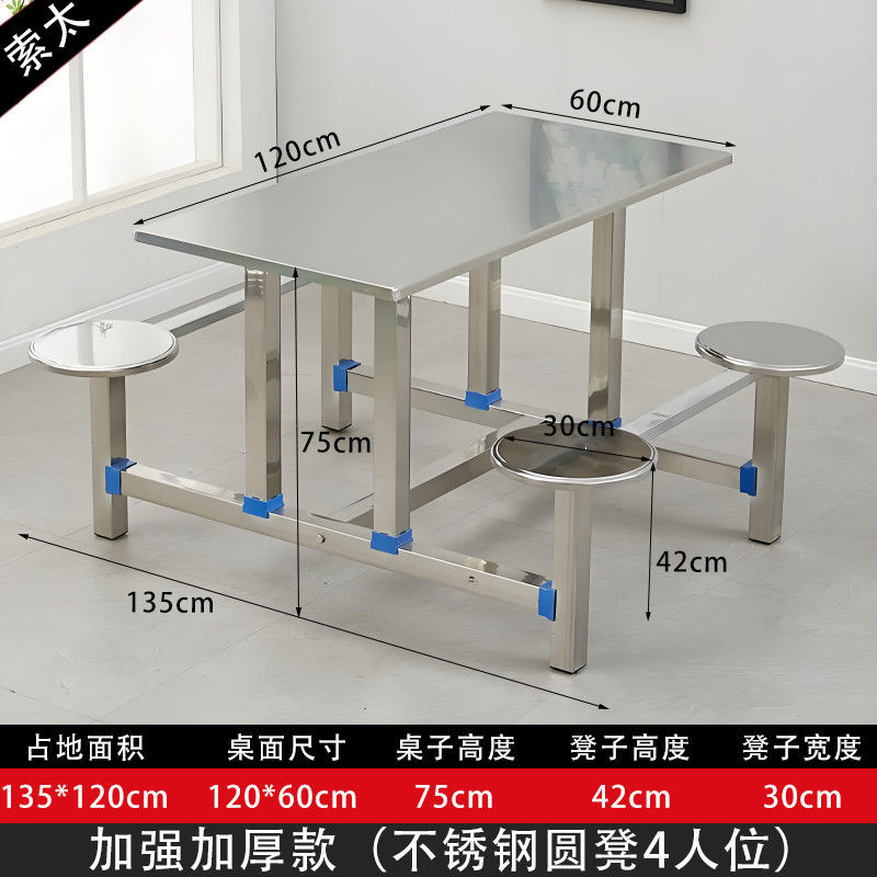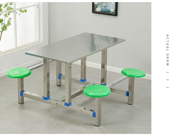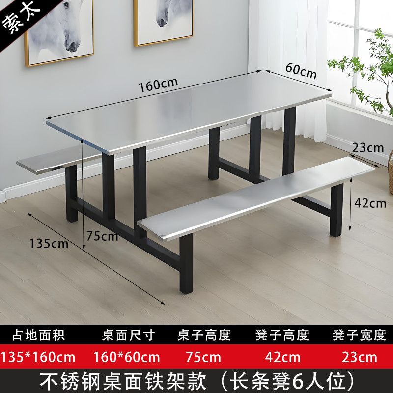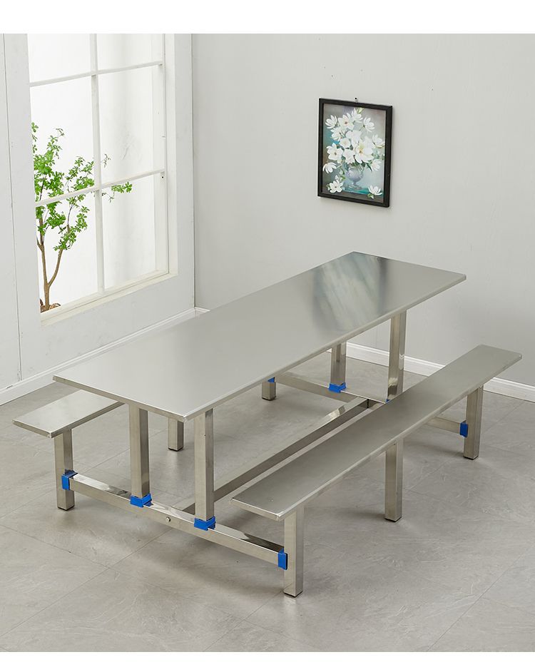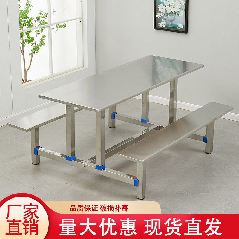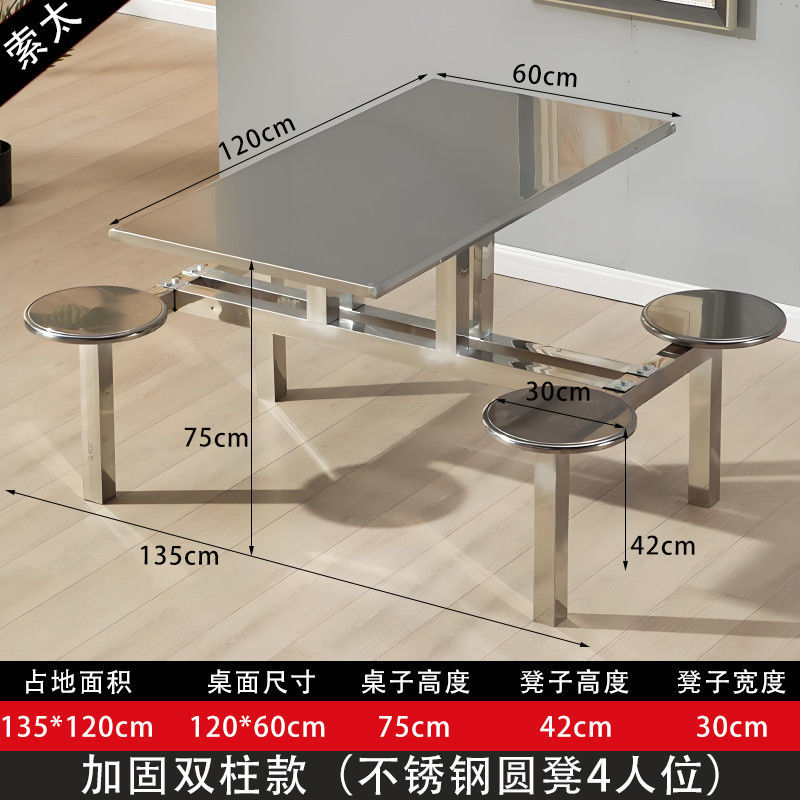 Обеденный стол и стулья из нержавеющей стали для школьной столовой, столовой сотрудников компании, индивидуальная настройка стола для быстрого питания на 4 и 8 человек.