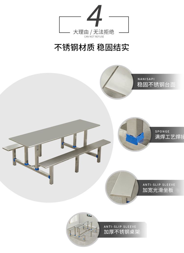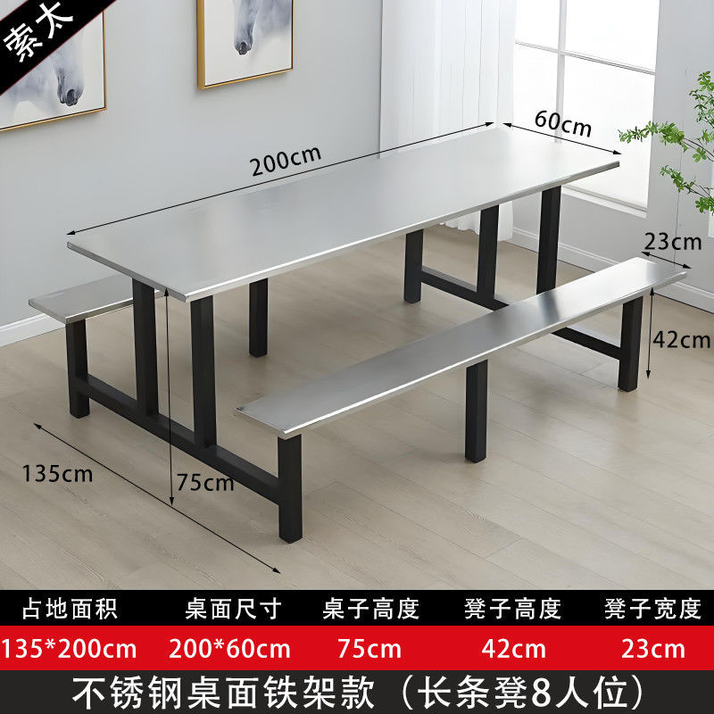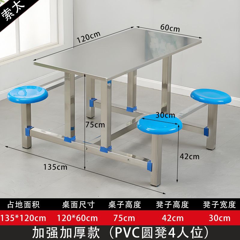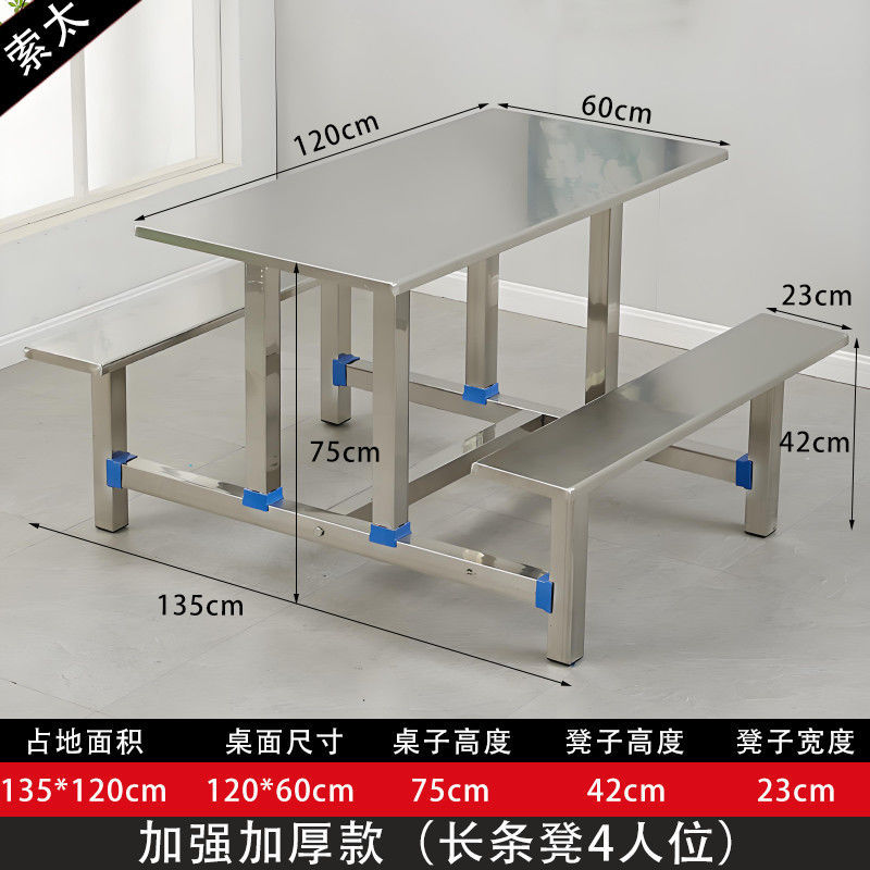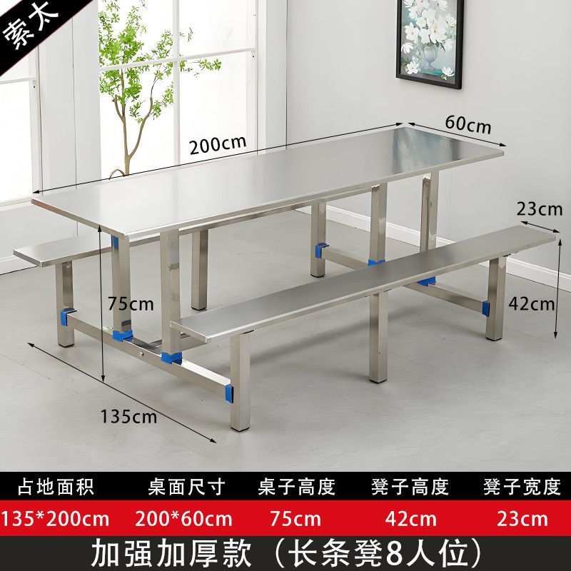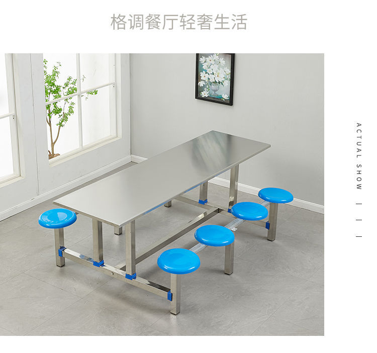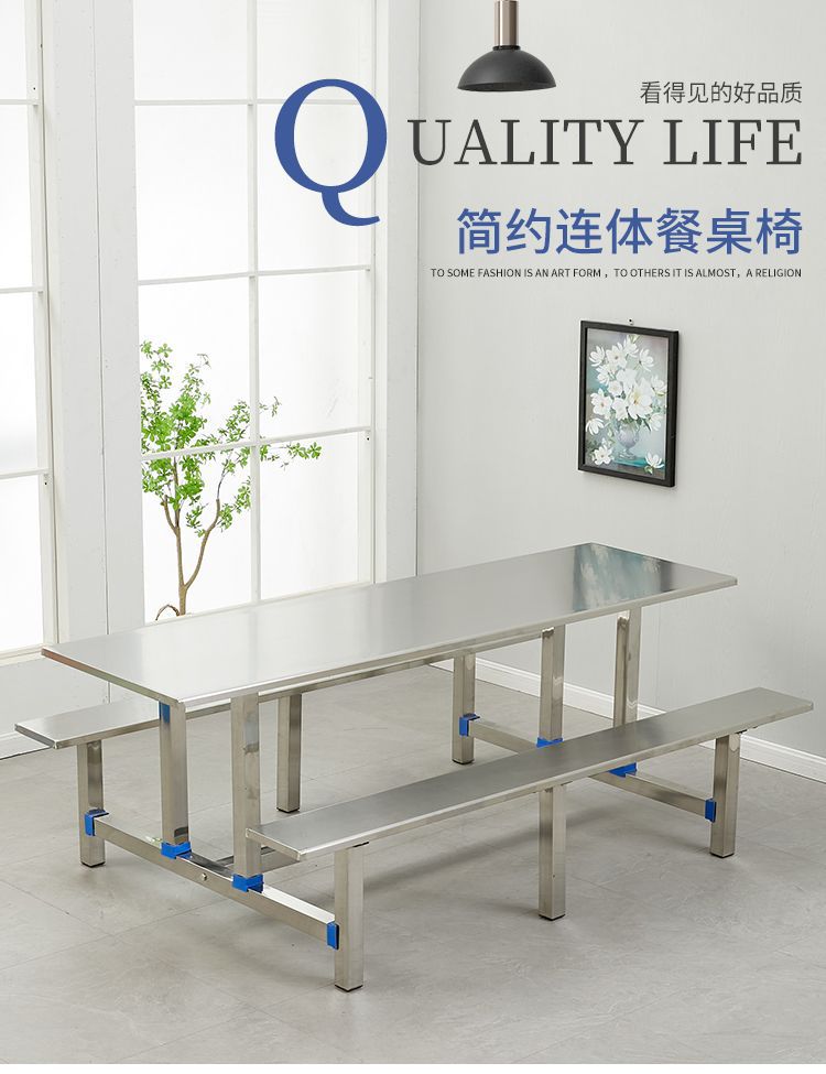 Обеденный стол и стулья из нержавеющей стали для школьной столовой, столовой сотрудников компании, индивидуальная настройка стола для быстрого питания на 4 и 8 человек.