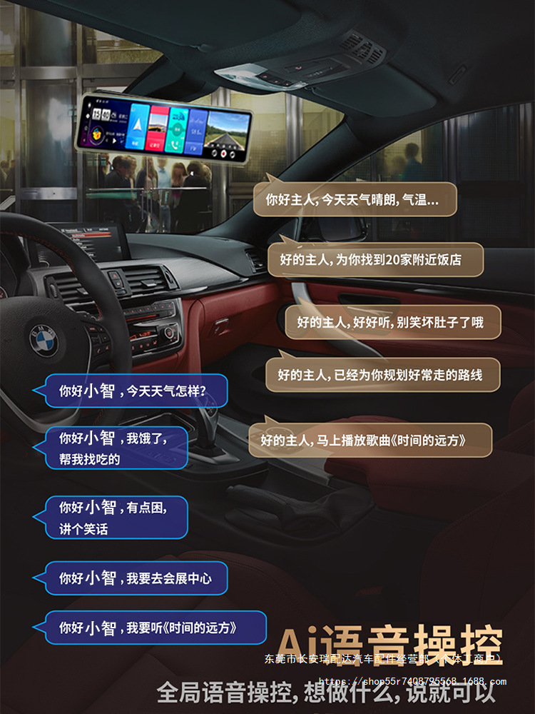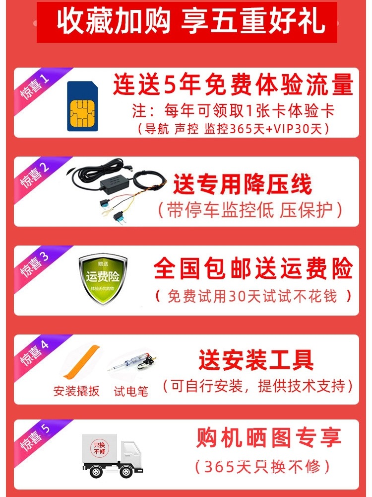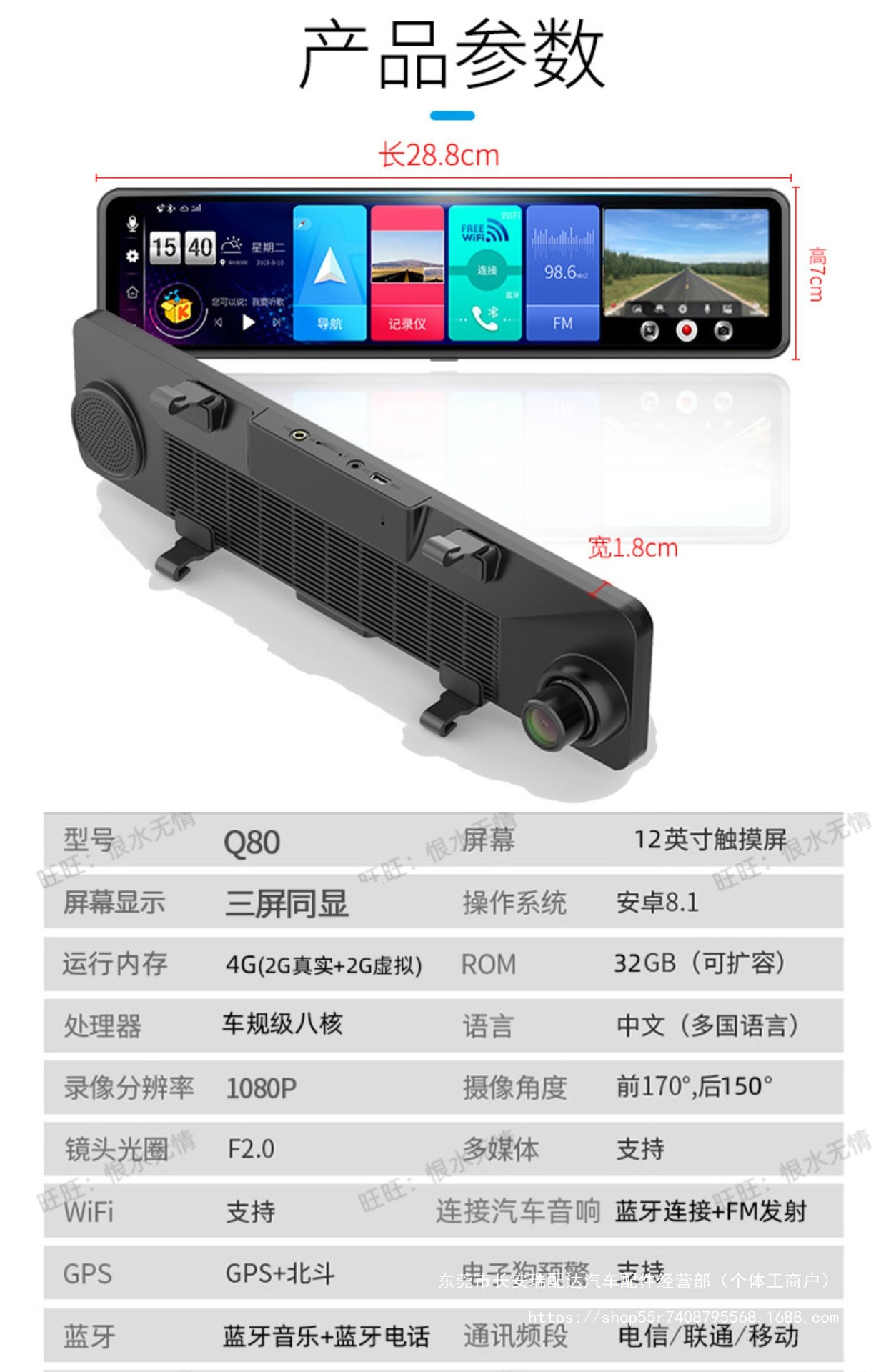 Bluetooth, GPS-навигация, позиционирование, изображение заднего вида, обнаружение движения, циклическая запись, измерение фиксированной скорости, мониторинг парковки, заполняющий свет ночного видения, помощь при смене полосы движения, запуск переднего автомобиля
