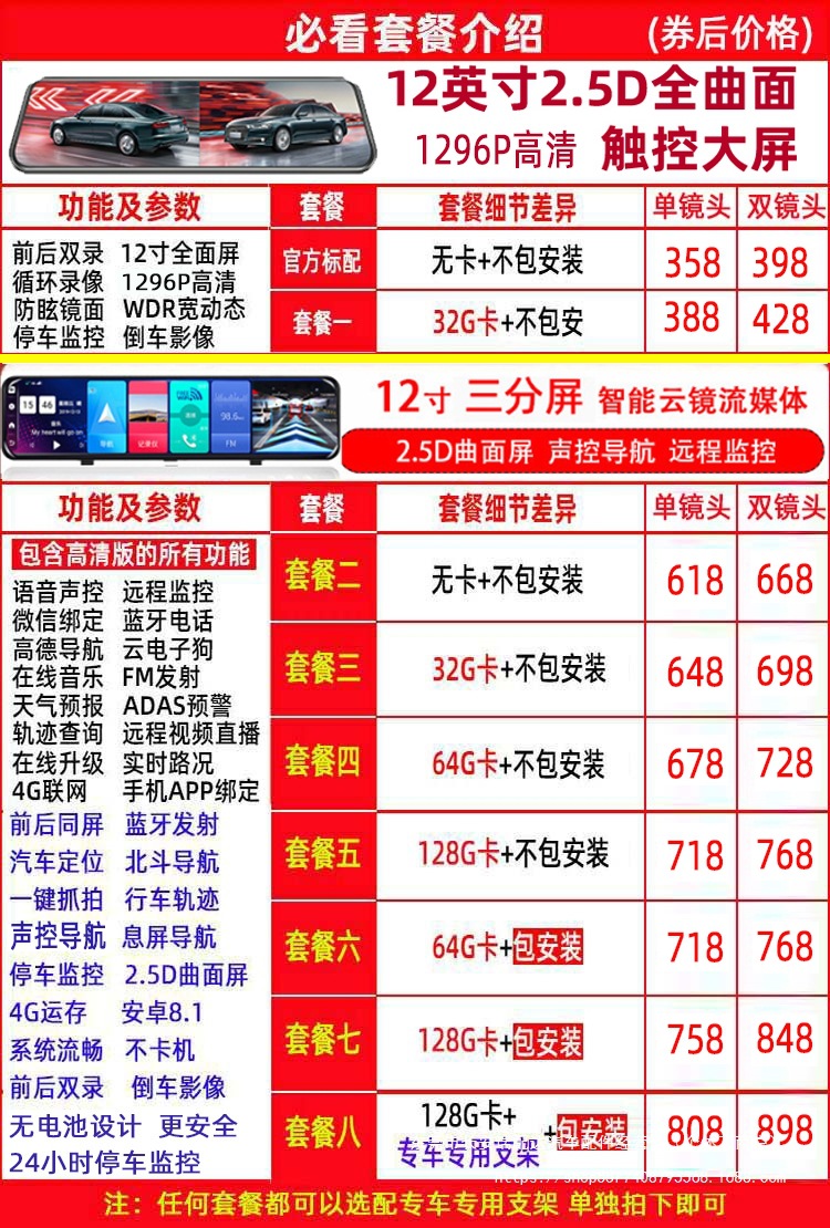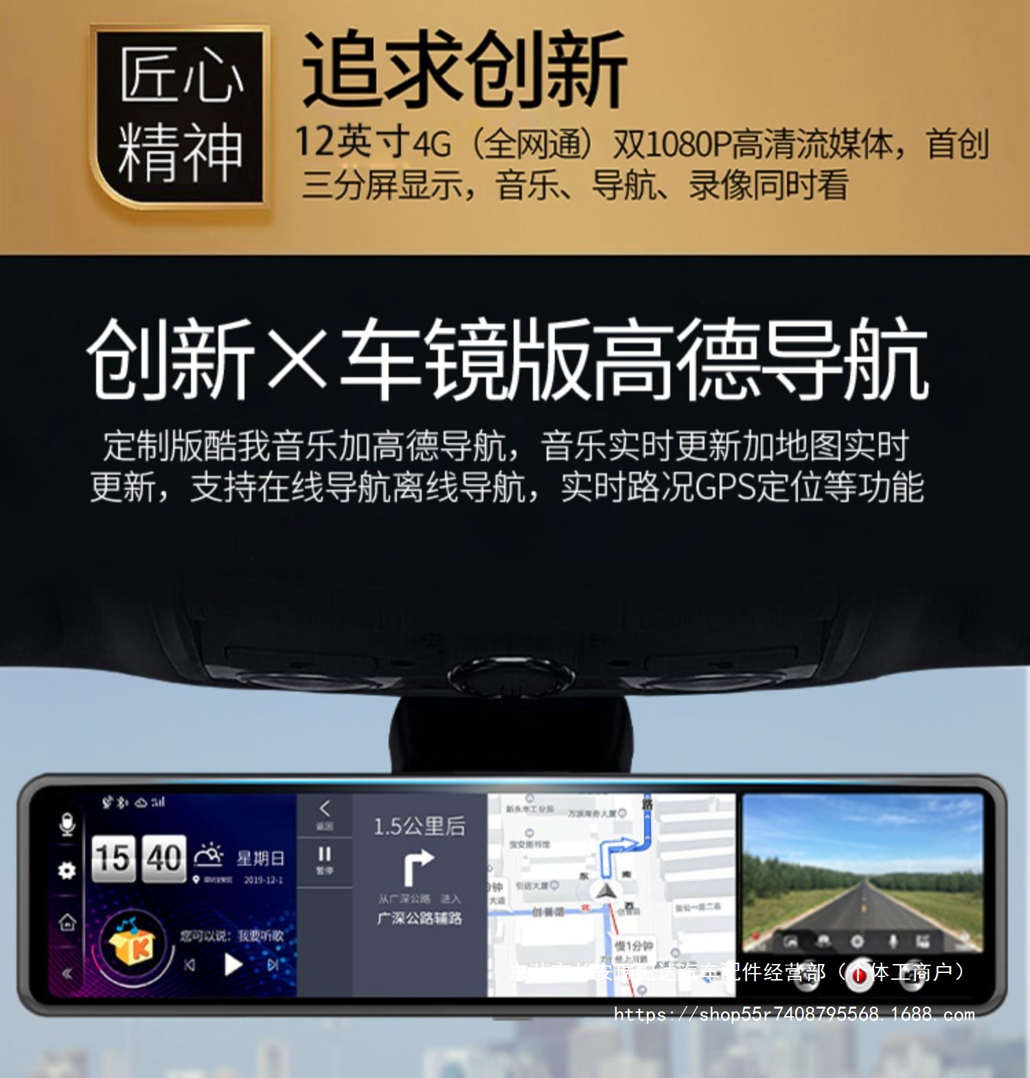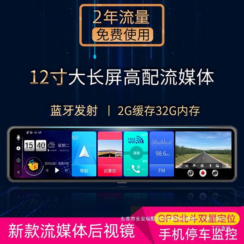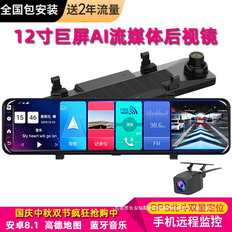 Новый полноэкранный видеорегистратор 12inch года с двойной записью спереди и сзади, потоковой передачей HD, навигацией по зеркалу заднего вида и камерой заднего вида.