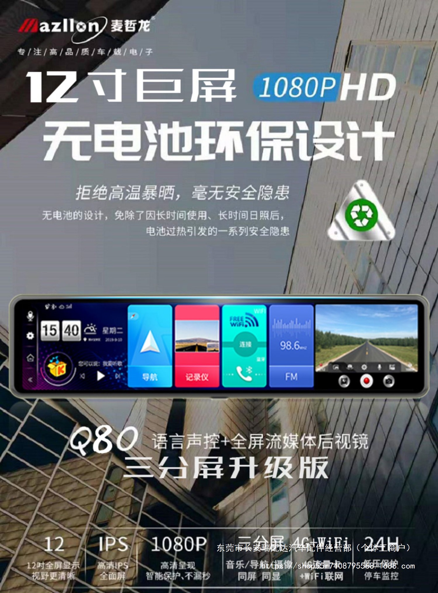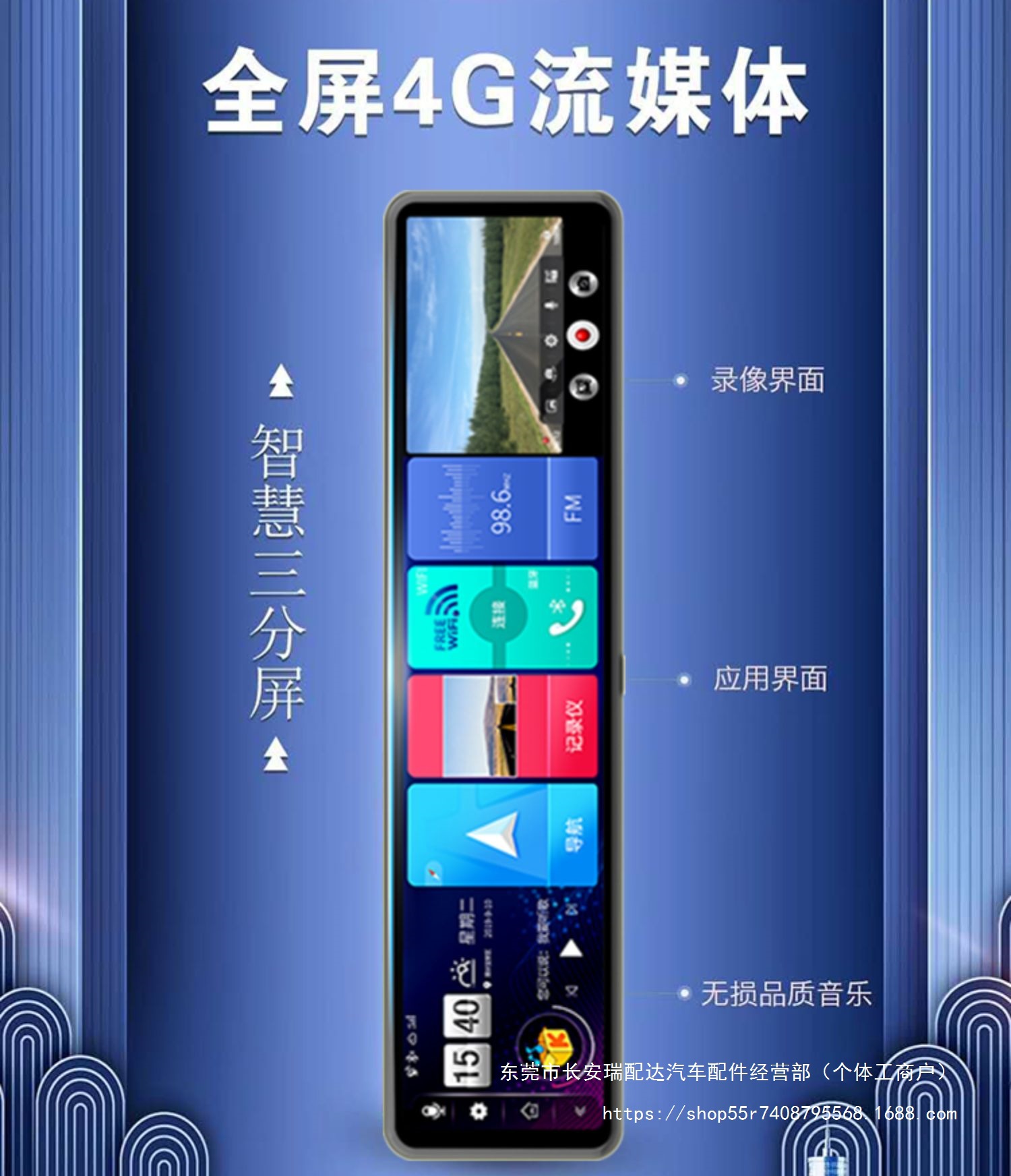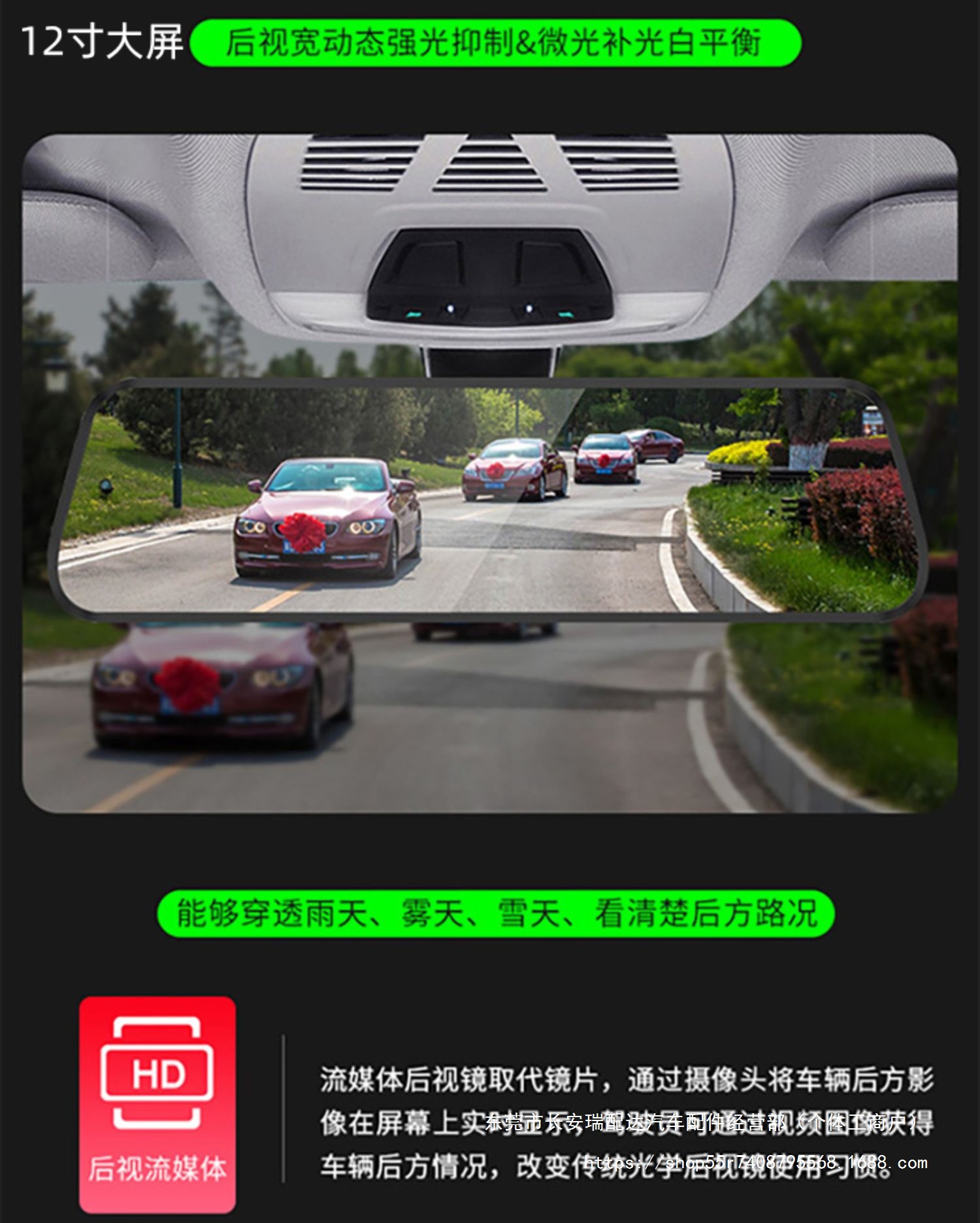 Новый полноэкранный видеорегистратор 12inch года с двойной записью спереди и сзади, потоковой передачей HD, навигацией по зеркалу заднего вида и камерой заднего вида.