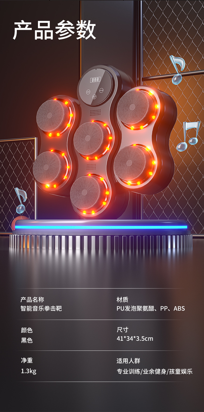 Музыкальный боксерский тренажер для умного дома, электронная настенная мишень для фитнеса взрослых и детей, регулируемое оборудование для тренировки реакции