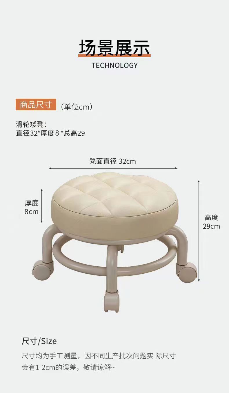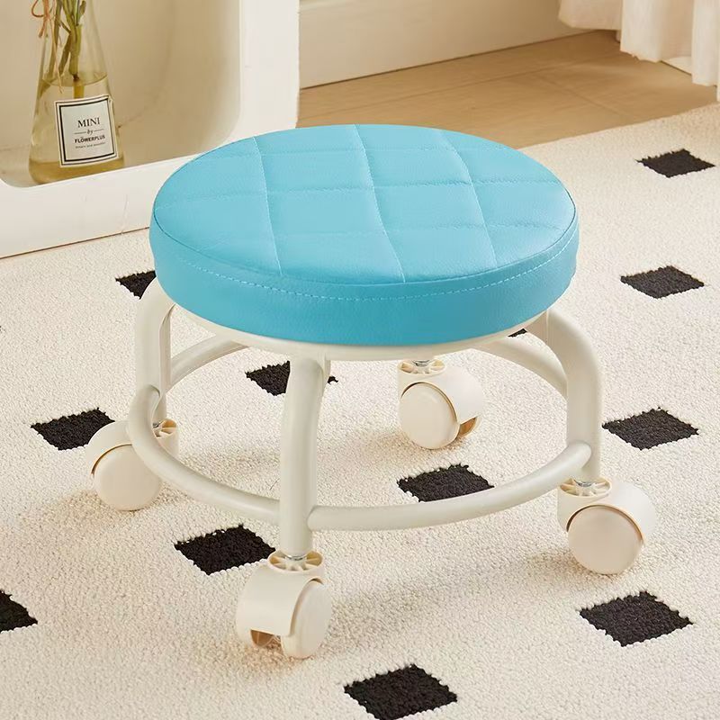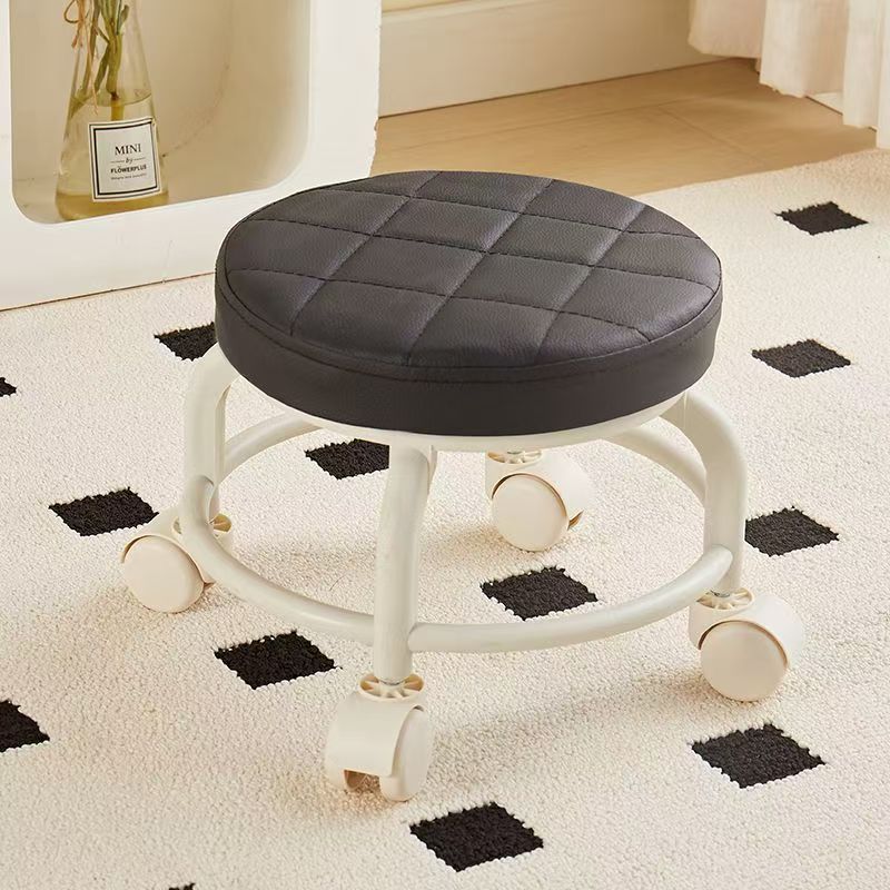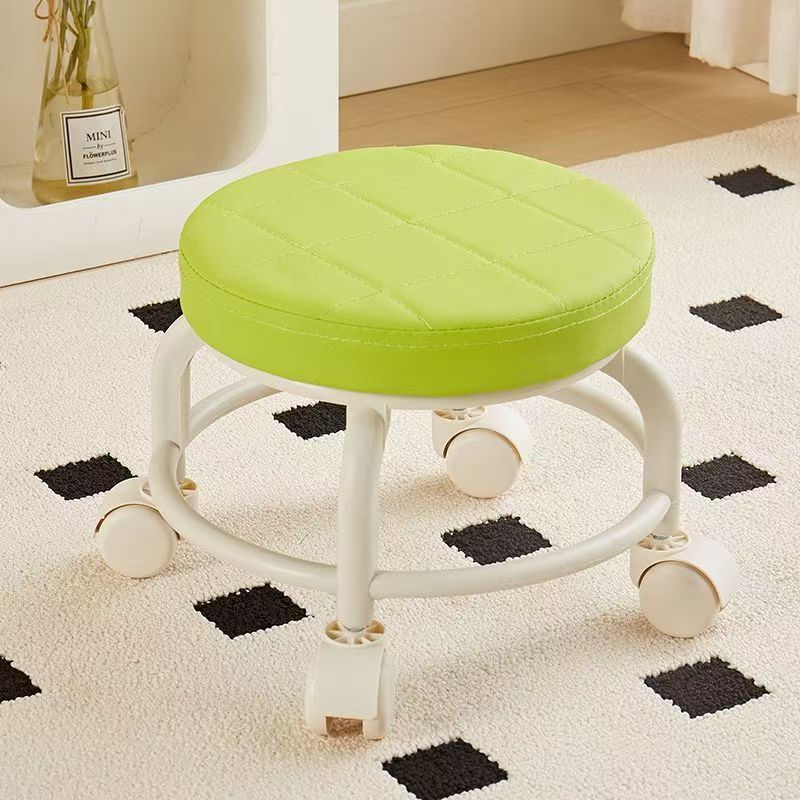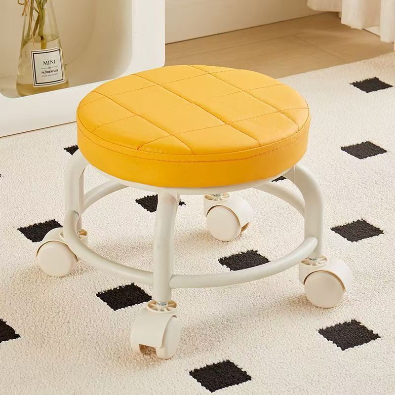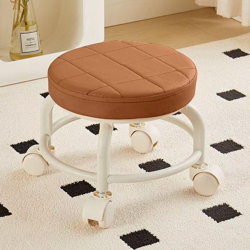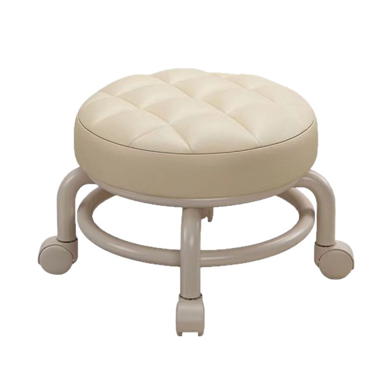 Бытовой вращающийся табурет в кремовом стиле с колесиками, подвижный круглый табурет с мягкой подушкой для входа в гостиную, ленивый табурет для смены обуви.