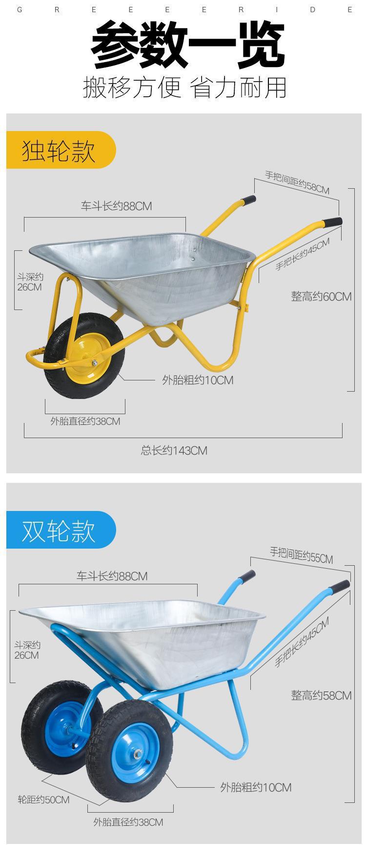 Синяя тачка (пневматическая шина); Желтый тачка (пневматическая шина); Синяя тачка (сплошные шины); Желтый тачка (сплошные шины); Один двухколесный автомобиль (пневматические шины); Один двухколесный автомобиль (сплошные шины); Один кузов автомобиля (аксессуар); Одна накачанная шина (аксессуар); Одна цельная шина (аксессуар); Новый одноколесный велосипед (пневматическая шина); Новый одноколесный велосипед (сплошные шины)