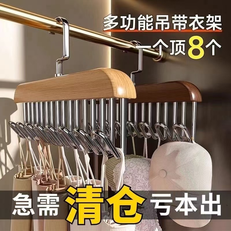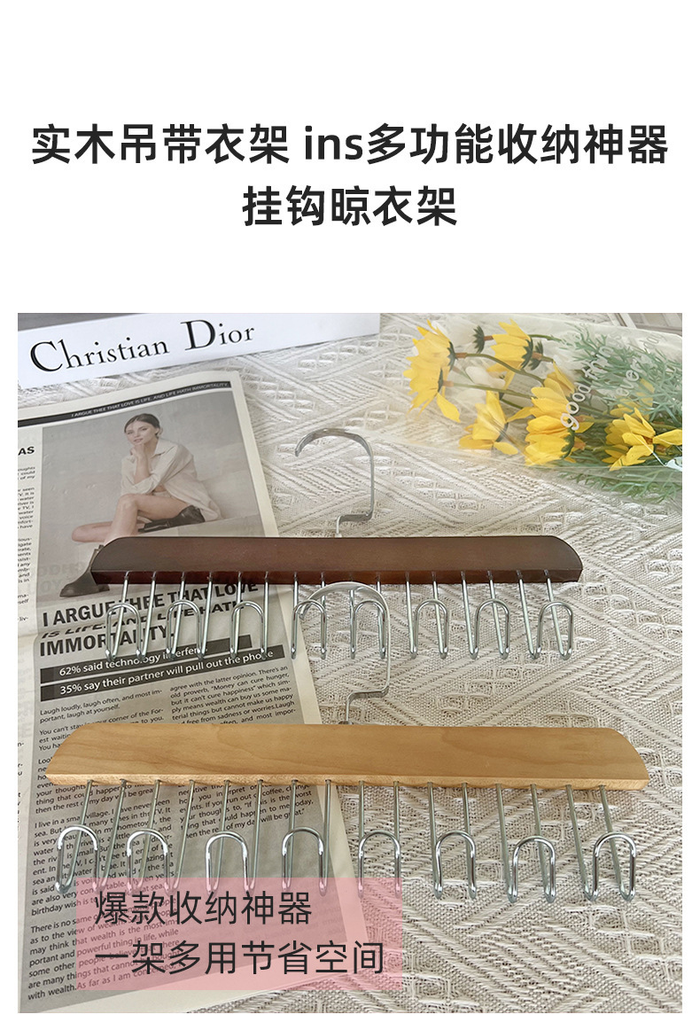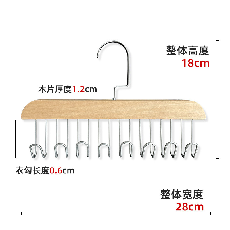 Вешалка для одежды из массива дерева с 8 крючками для хранения нижнего белья, майок и одежды, многофункциональная вешалка-крючок из массива дерева.