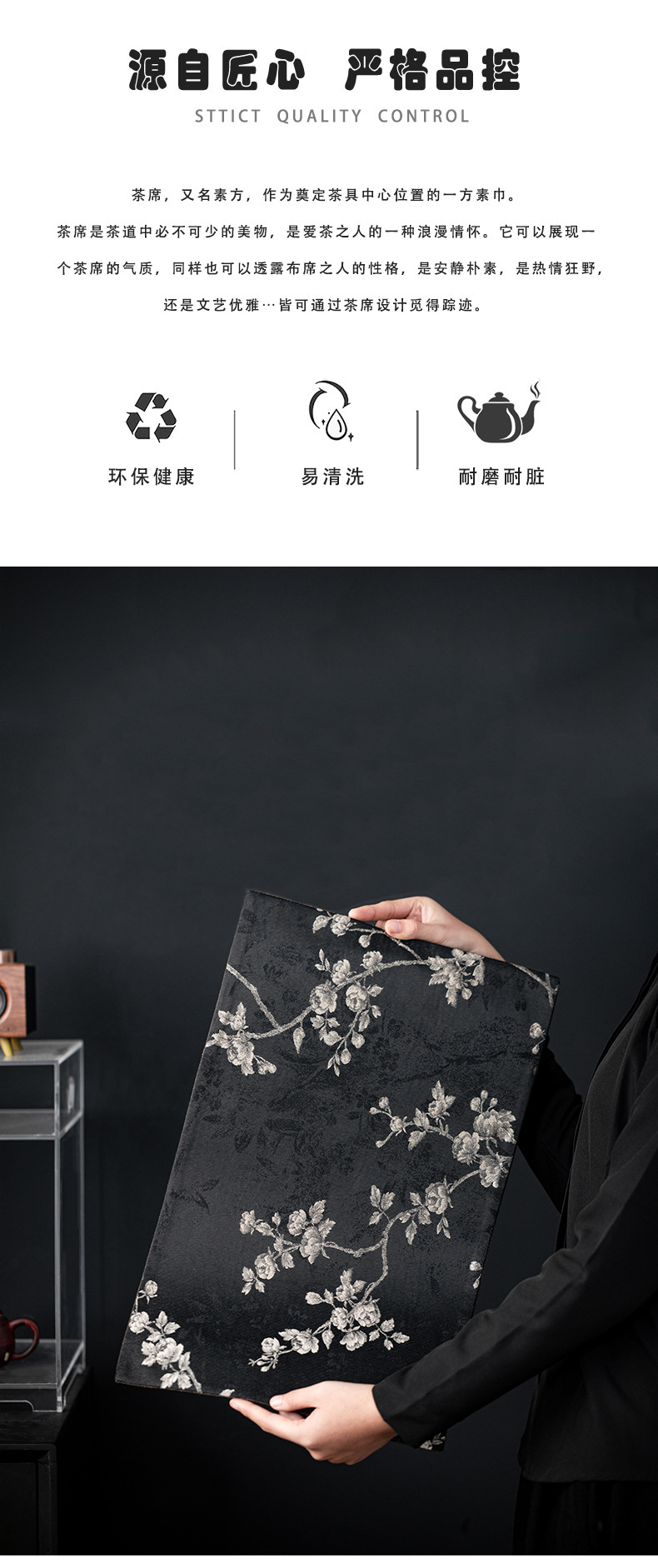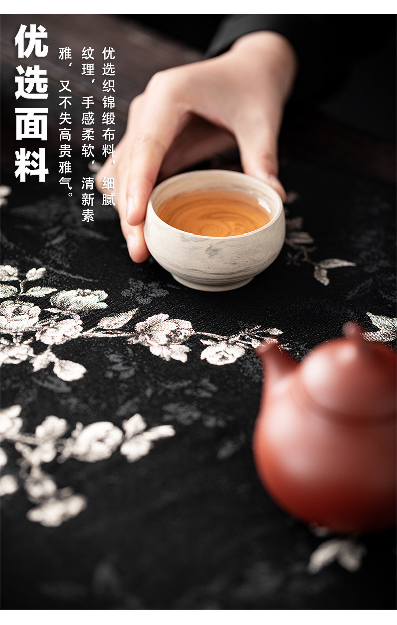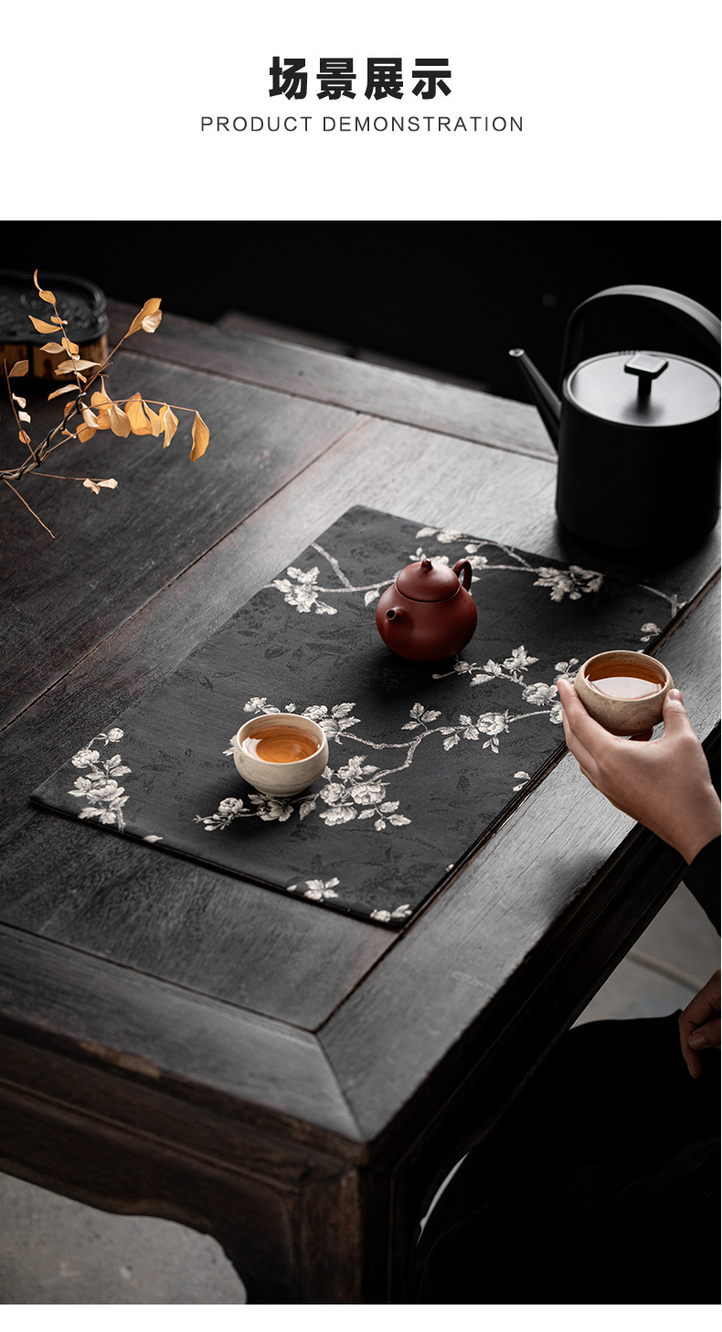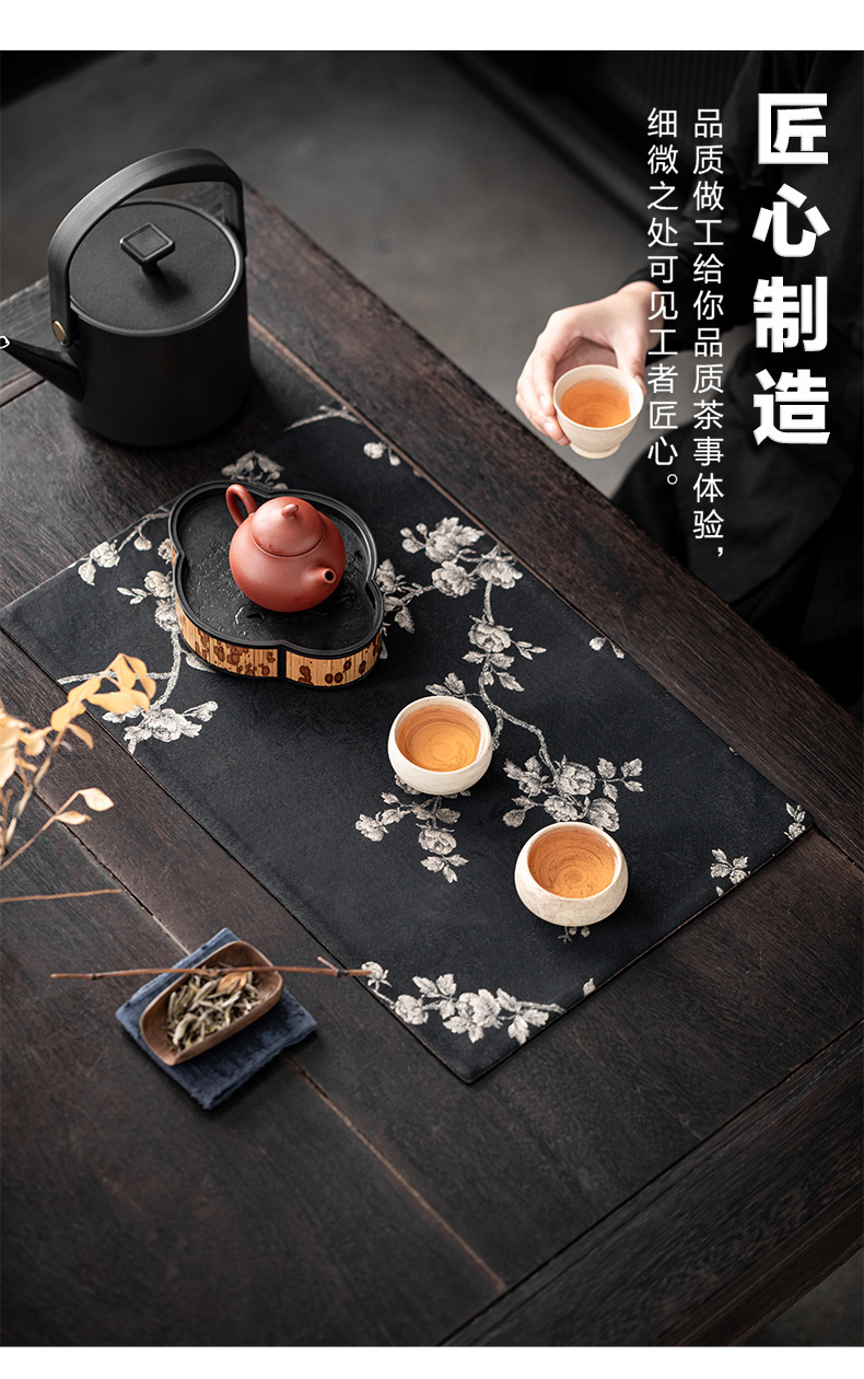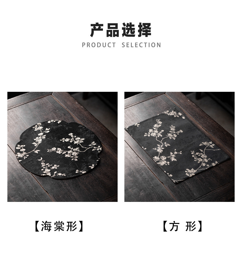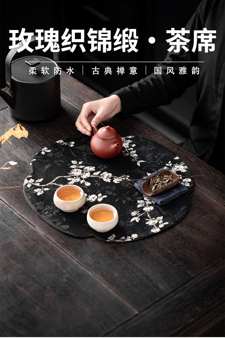 Чайный коврик в китайском стиле с легким роскошным китайским парчовым рисунком розы и бегонии, чайным флагом, ковриком для чашки чая, теплоизоляционным ковриком, ковриком для чайной церемонии, чайной скатертью.