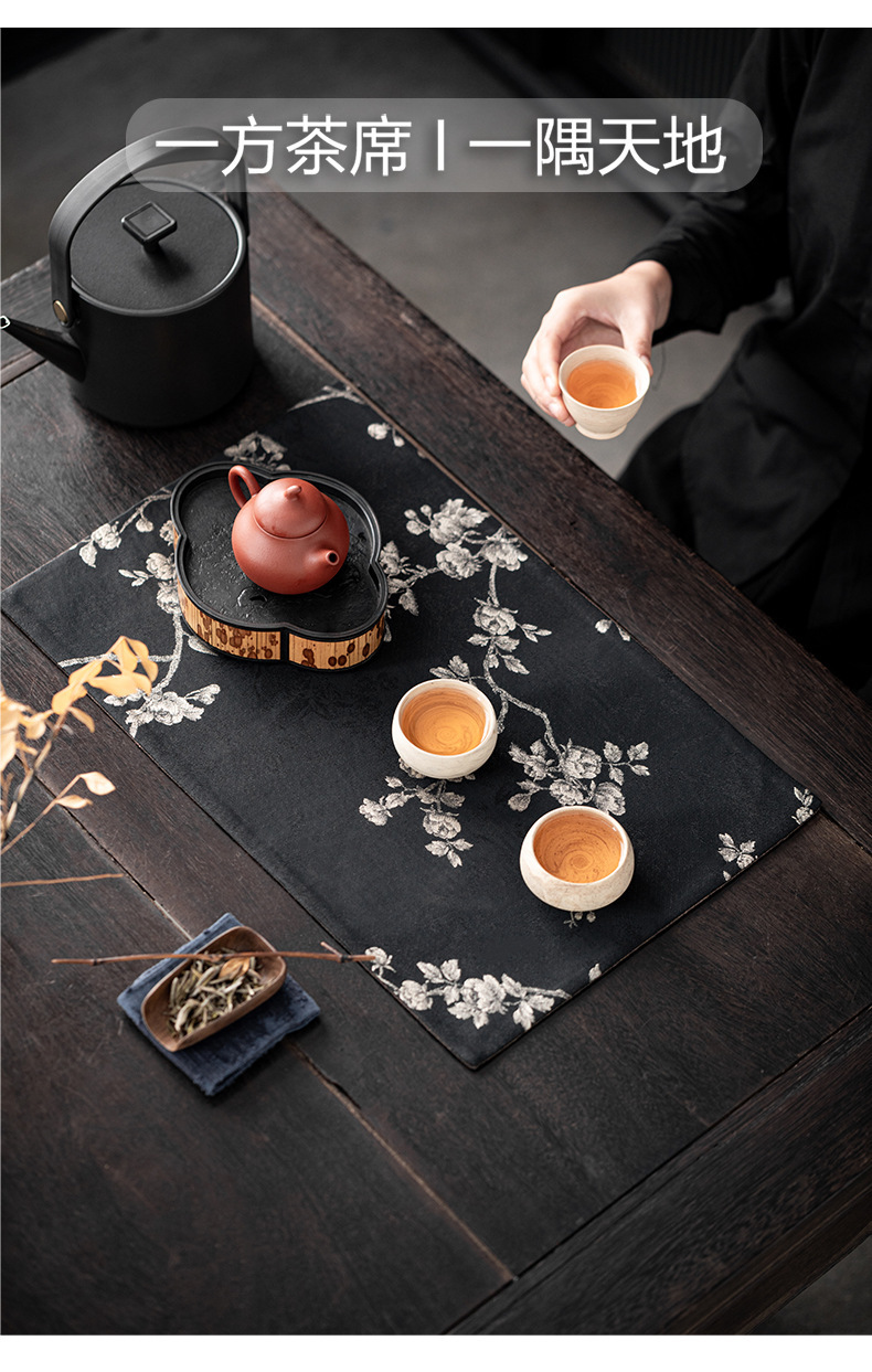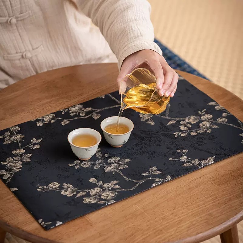 Двусторонний брокатный коврик для чая с чернилами и белой сливой (26*47 см)