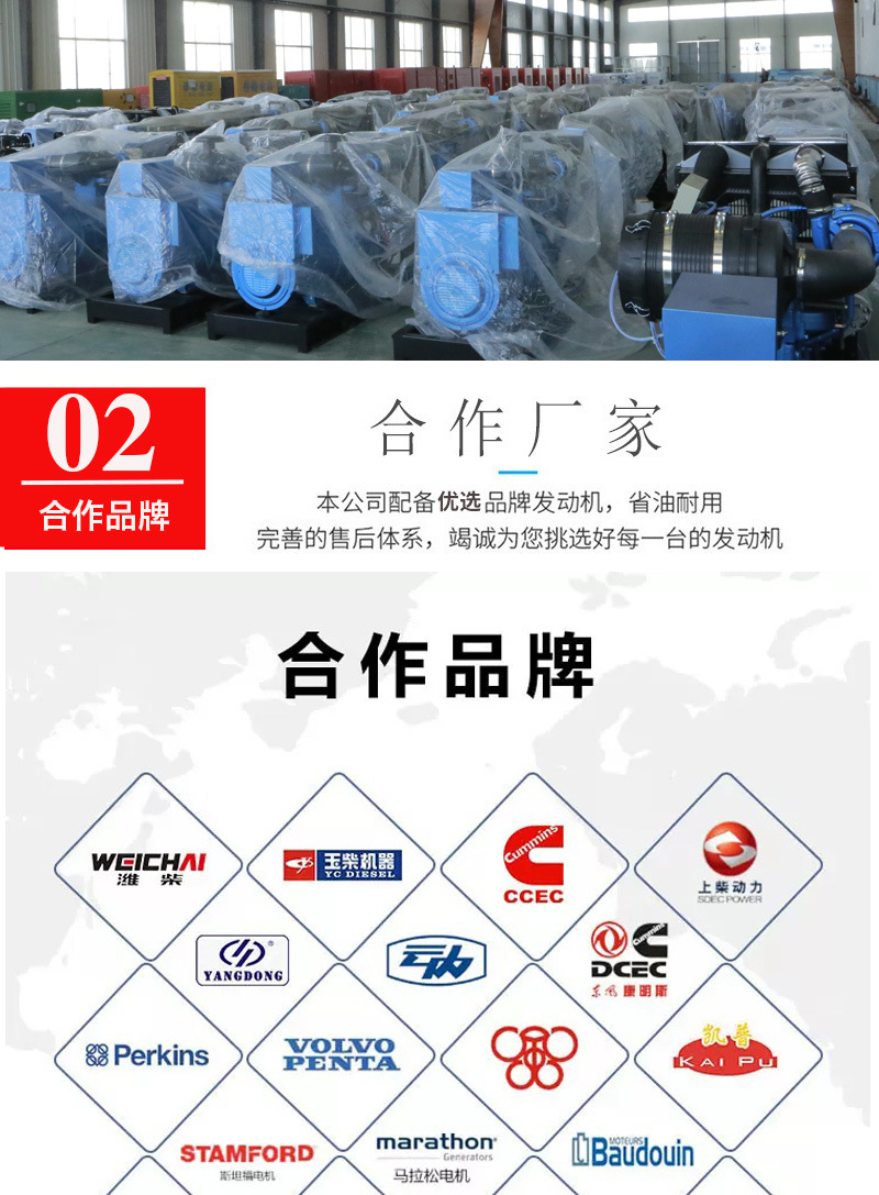10KW WP2.4D25E600; 16KW WP2.3D25E200; 24KW WP2.3D33E200; 30KW WP2.3D40E200; 50KW WP4.1D66E200; 100KW WP6D132E200; 150KW WP10D200E200; 200kw(250KW) WP10D264E200; 300KW WP12D353E200; 400KW WP13D490E310; 500KW(600KW) 6M33D633E200; 720KW(700KW) 8M33D890E200; 800KW 8M33D975E310; Мобильный прицеп мощностью 30–50 кВт; Бесшумный ящик мощностью 30–50 кВт; Система управления АТС мощностью 30–50 кВт; 30-50кВт антифриз; 75-120кВт антифриз; 150 кВт антифриз; 200 кВт антифриз