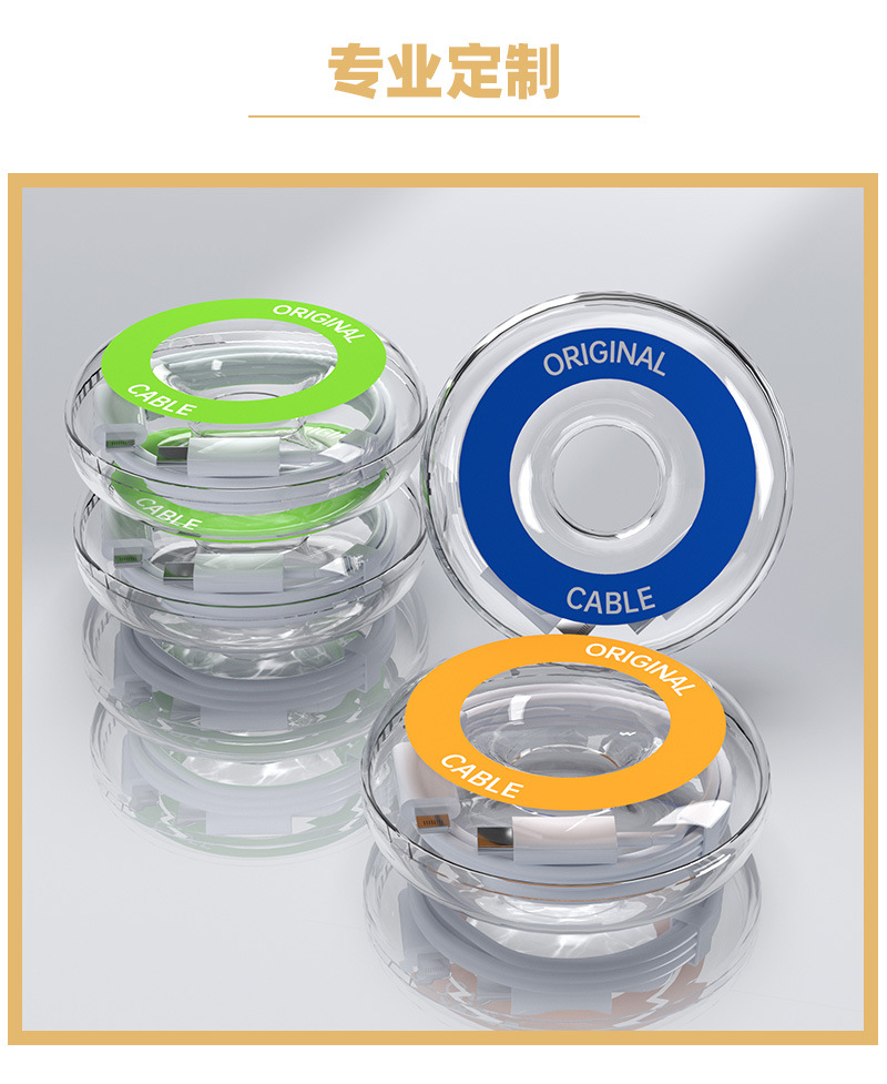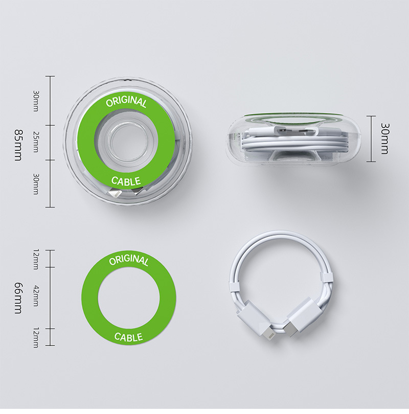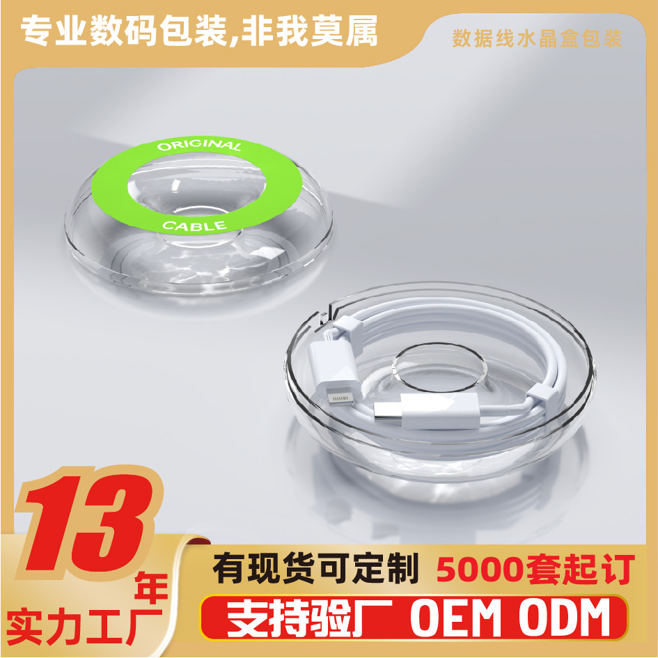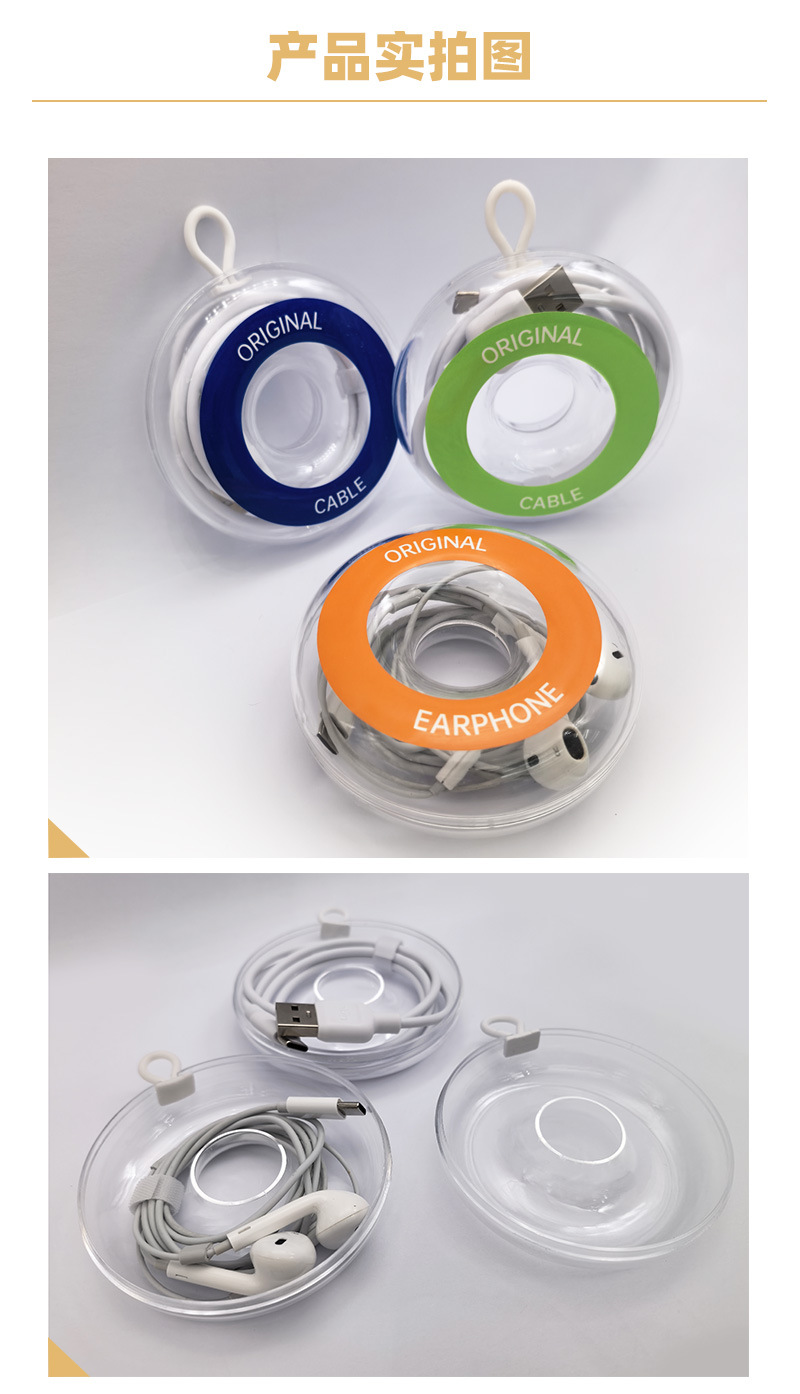 Упаковка для кабеля данных 2 м, прозрачная круглая коробка для наушников, USB-кабеля для зарядки Apple, новая пластиковая коробка, кристальная упаковка.