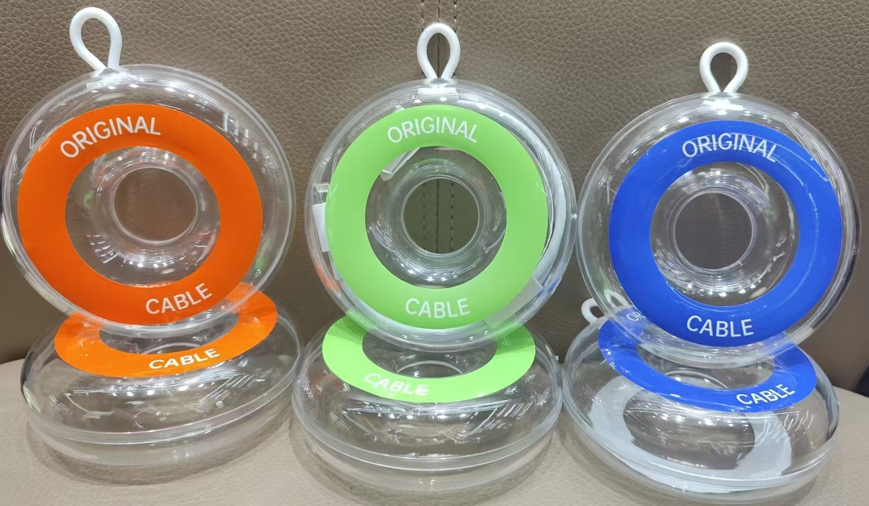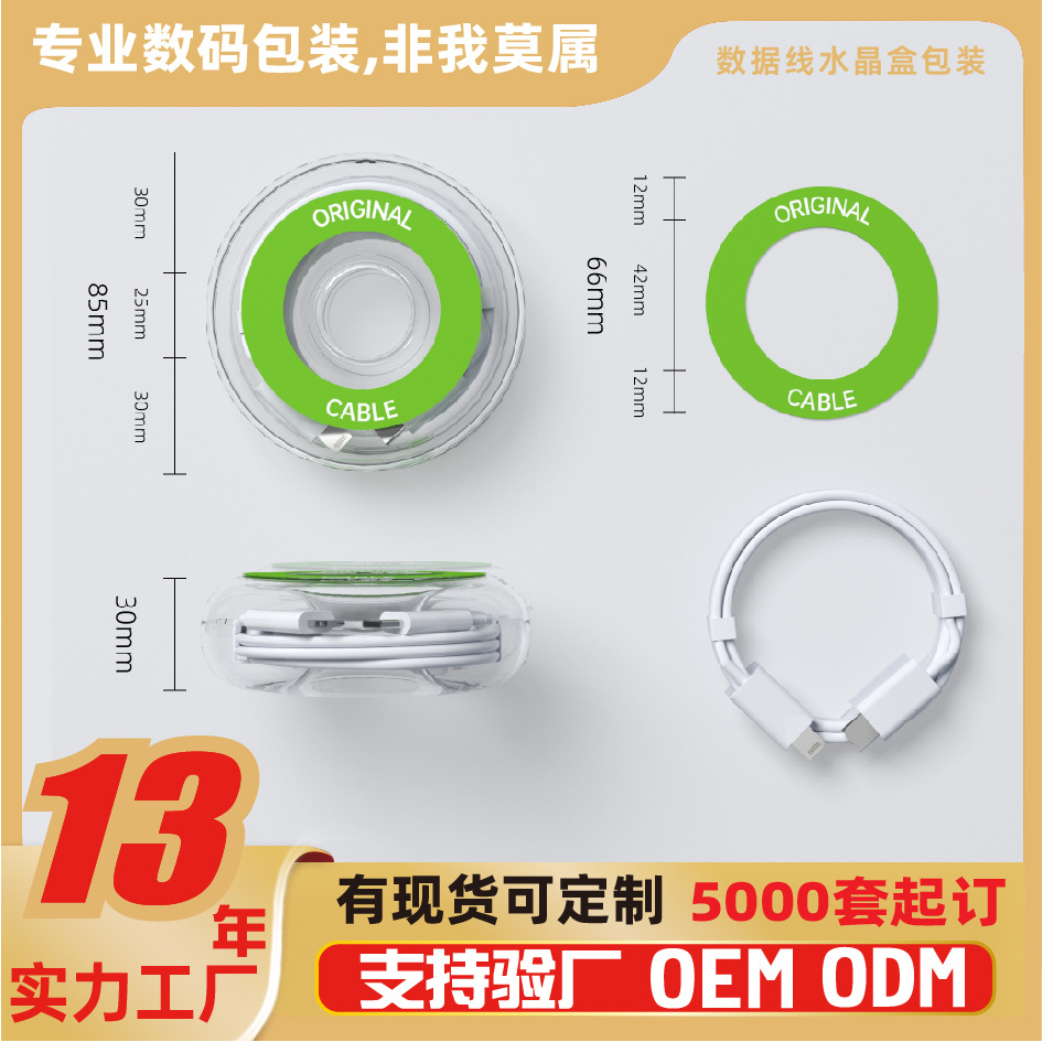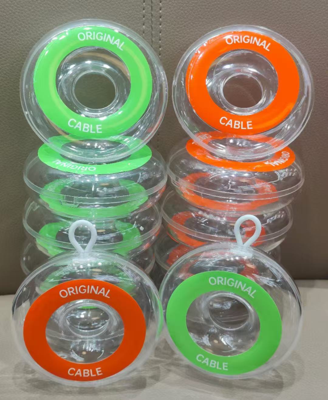 Упаковка для кабеля данных 2 м, прозрачная круглая коробка для наушников, USB-кабеля для зарядки Apple, новая пластиковая коробка, кристальная упаковка.
