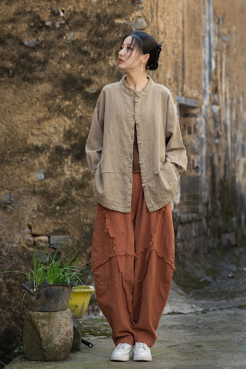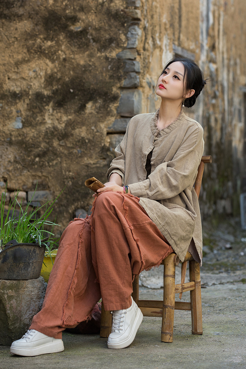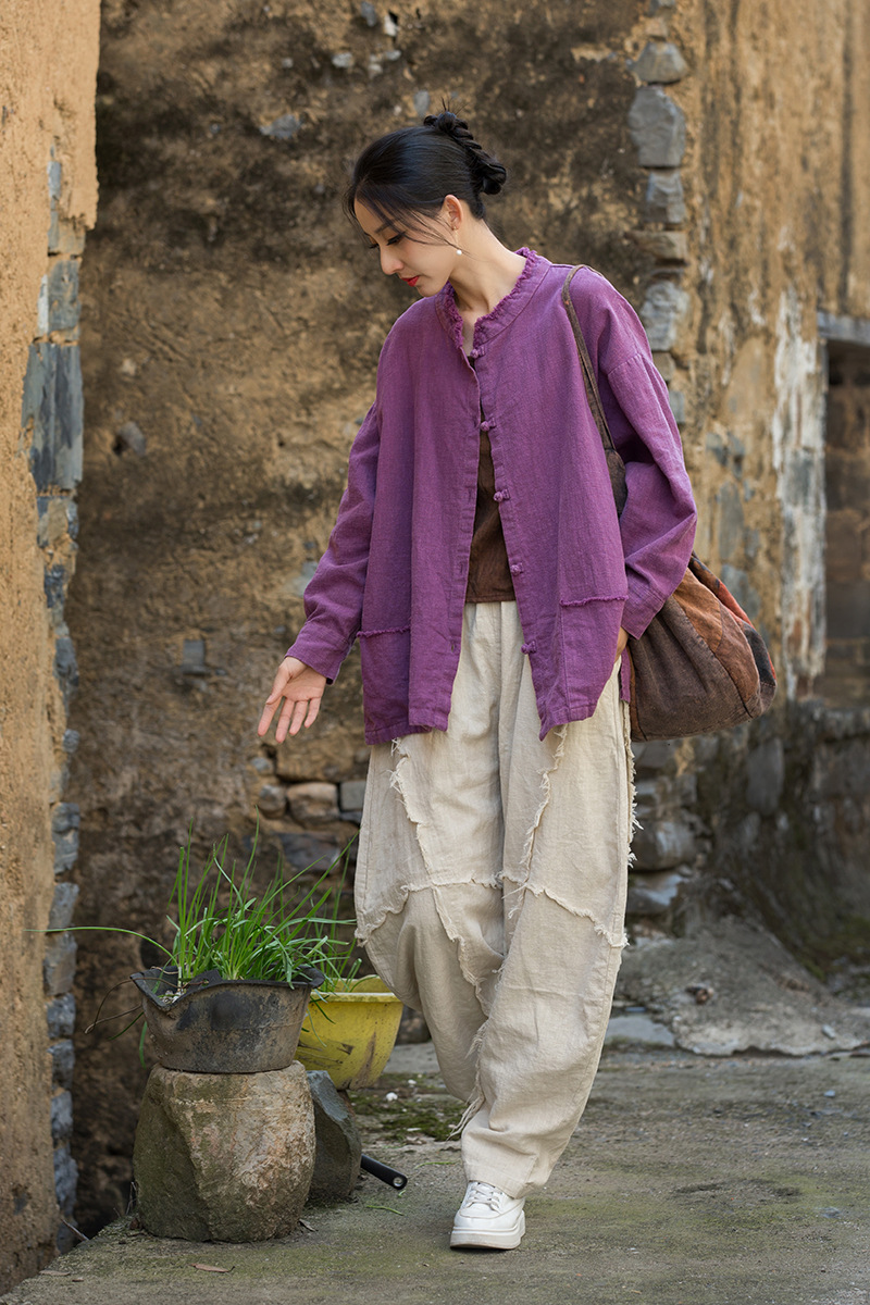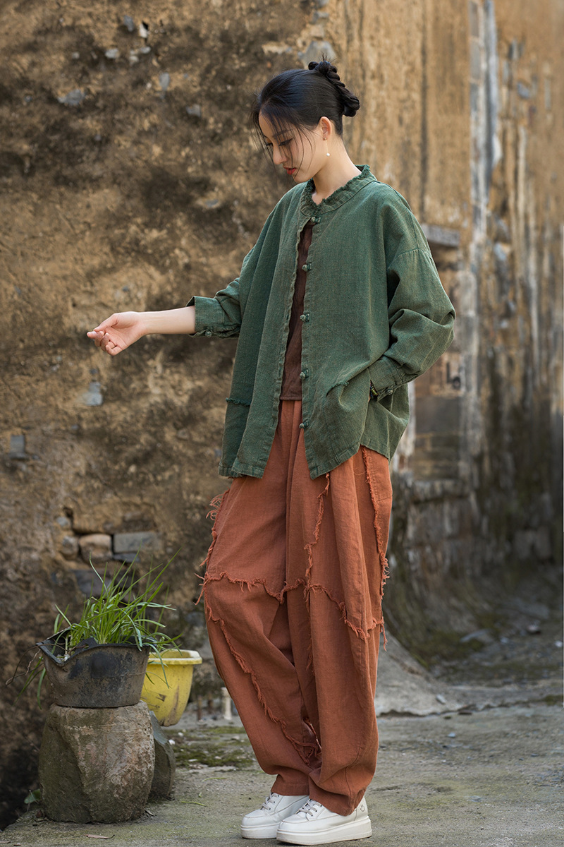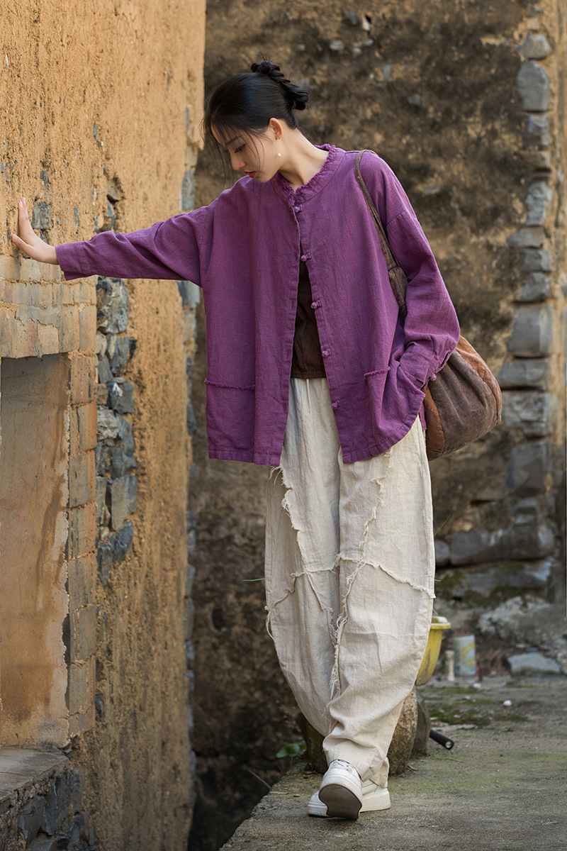 Новая коллекция женской одежды из хлопка и льна Весна/Лето 26: Жакет из окрашенной ткани рами с начесом, ручной работы, на пуговицах, в стиле дзен, повседневный, универсальный.