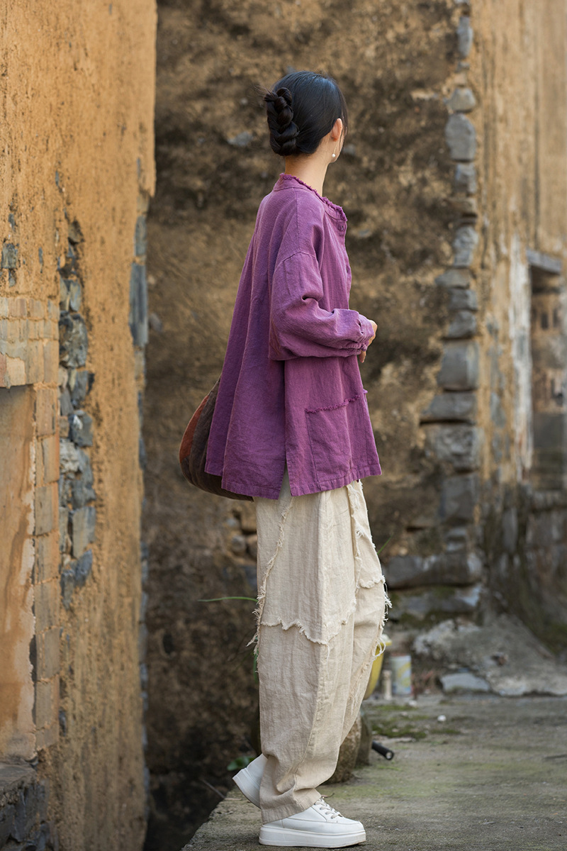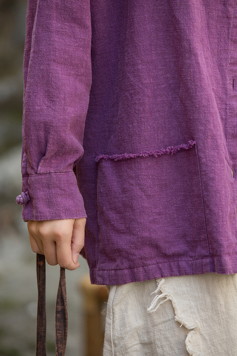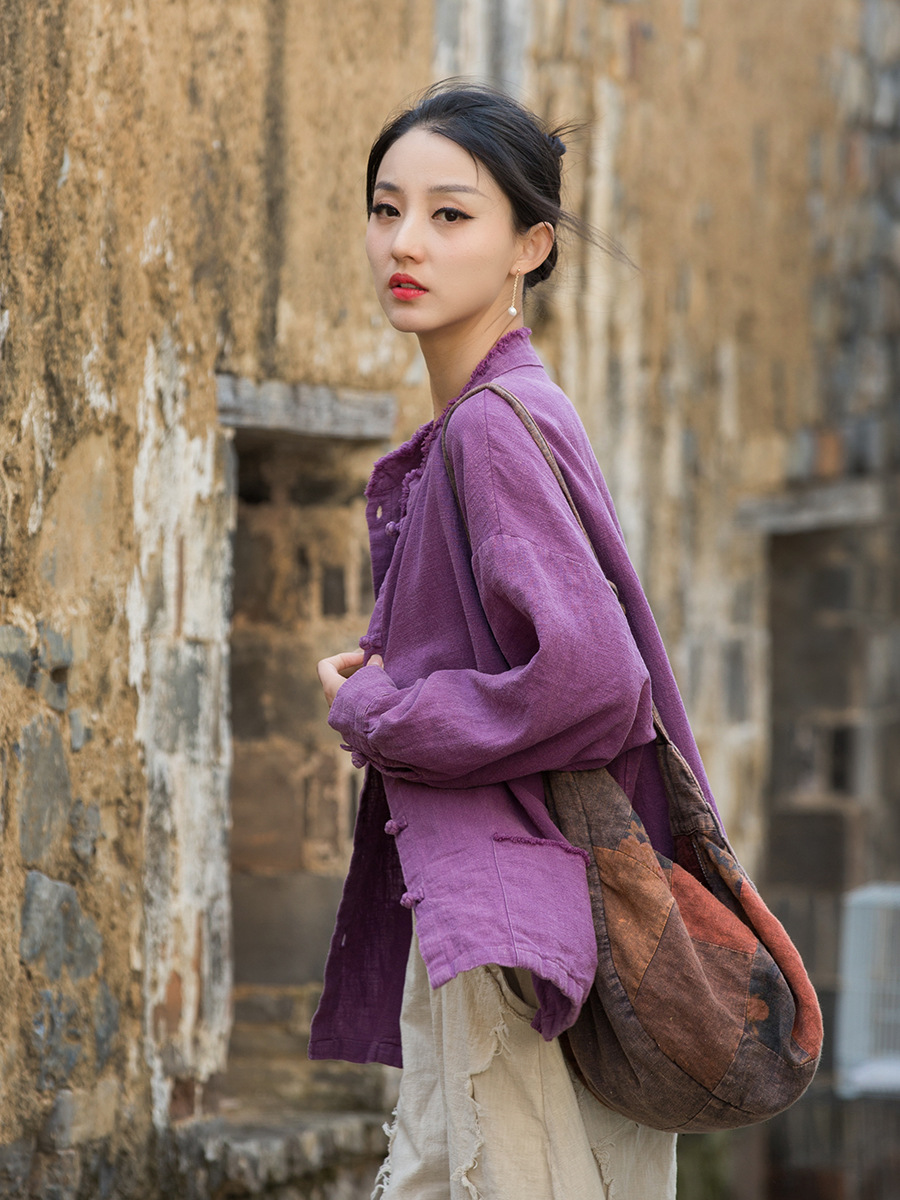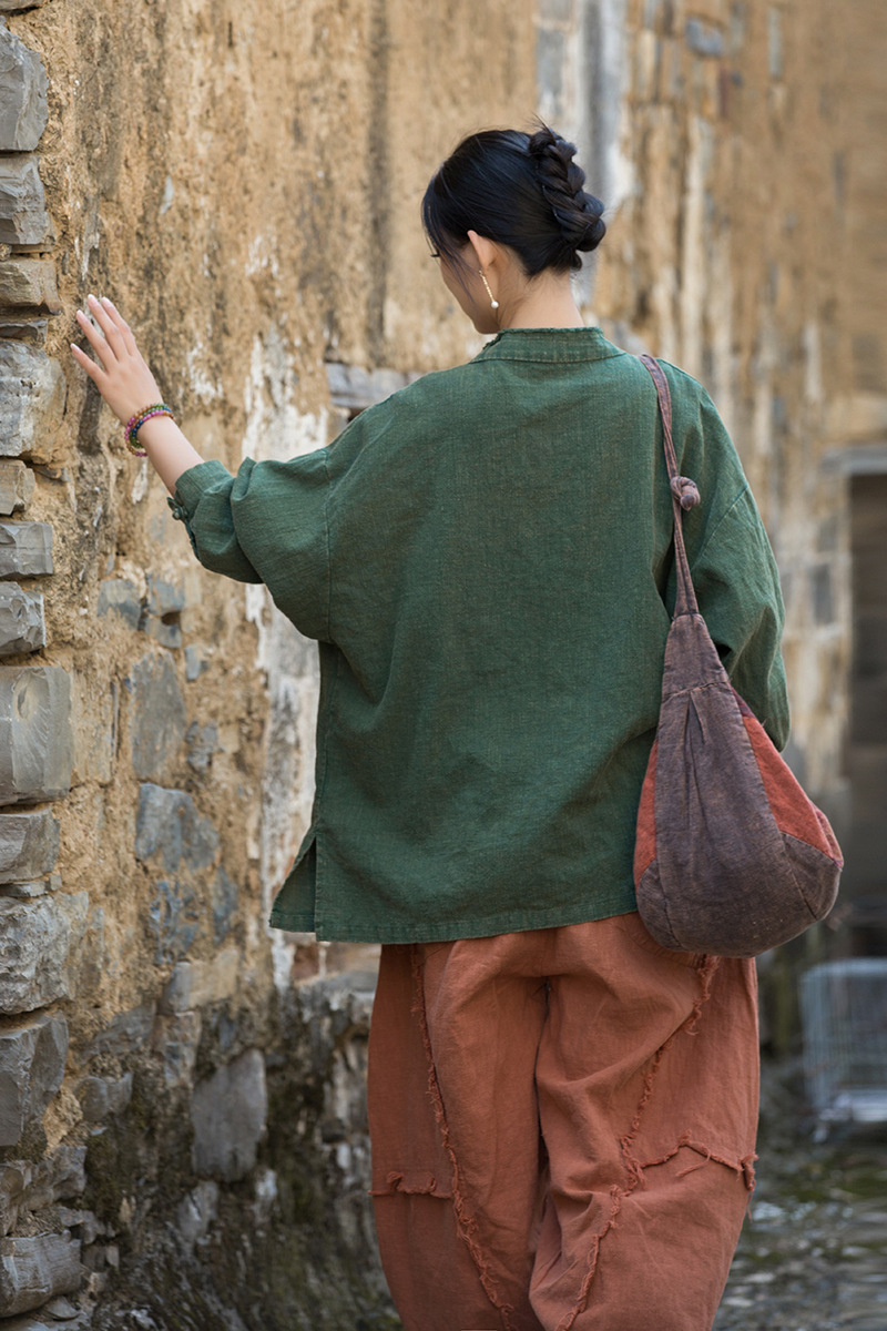 Новая коллекция женской одежды из хлопка и льна Весна/Лето 26: Жакет из окрашенной ткани рами с начесом, ручной работы, на пуговицах, в стиле дзен, повседневный, универсальный.