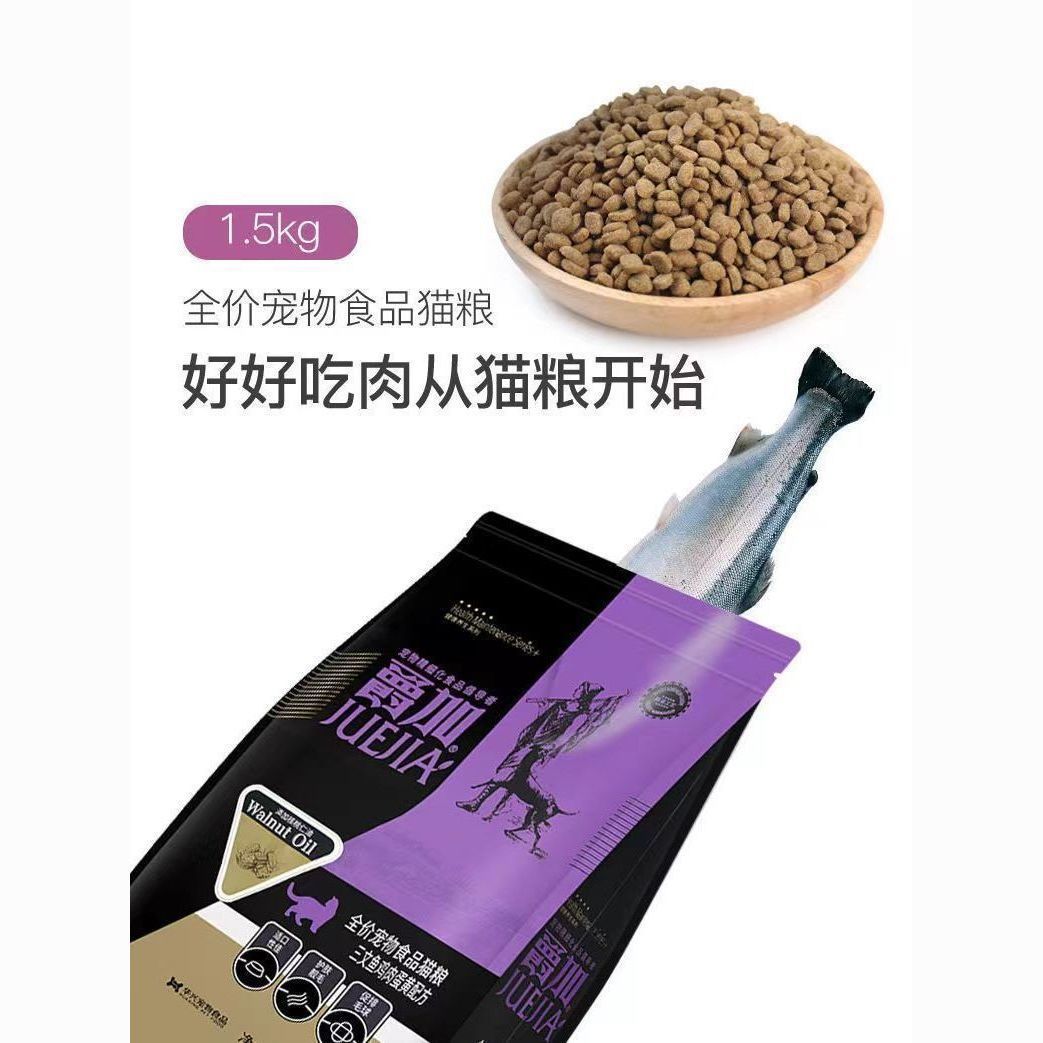 [Красивые волосы и красивая кожа] Корм для кошек Juejia 1,5 кг лосось, курица и яичный желток, специальное откорм для всех стадий взрослых и молодых кошек.
