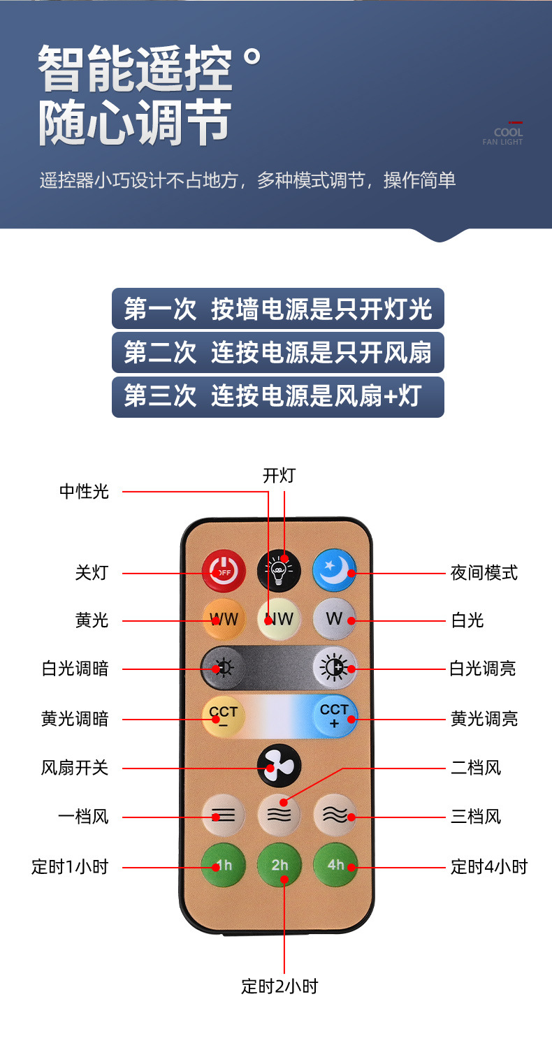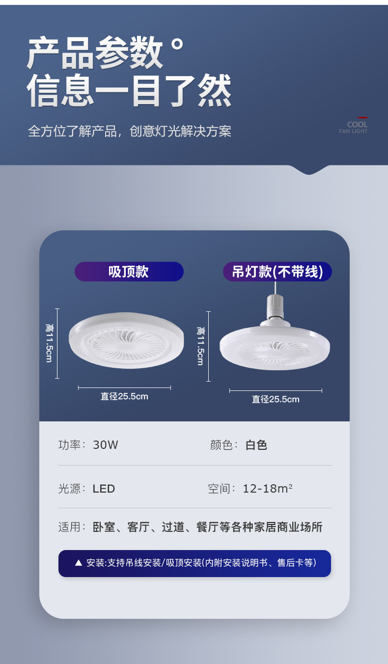 Белый свет 260, пять лопастей + разъемная головка лампы (без пульта дистанционного управления); Белый свет 260, пять лопастей + разъемная головка лампы (с пультом дистанционного управления); Трехцветное затемнение 260, пять лопастей + разделенная головка лампы (с пультом дистанционного управления); Белый свет 230, три лопасти + разъемная головка лампы (с пультом дистанционного управления); Трехцветное затемнение 230, три лопасти + разделенная головка лампы (с пультом дистанционного управления); Модернизированная универсальная головка лампы с трехцветным затемнением (с дистанционным управлением)
