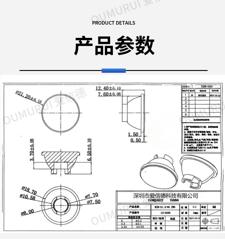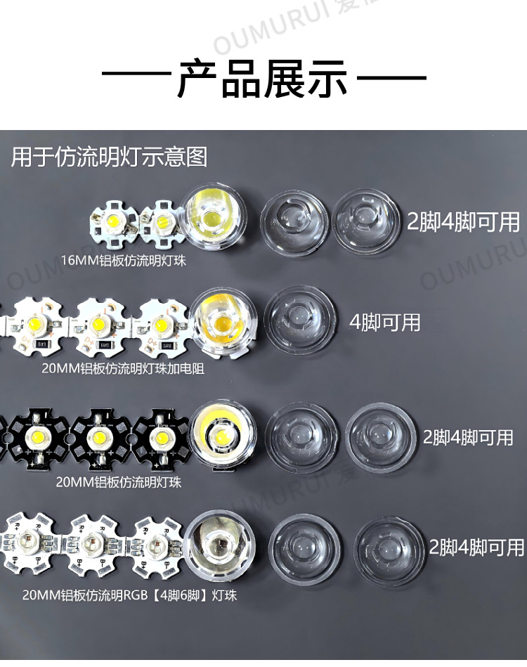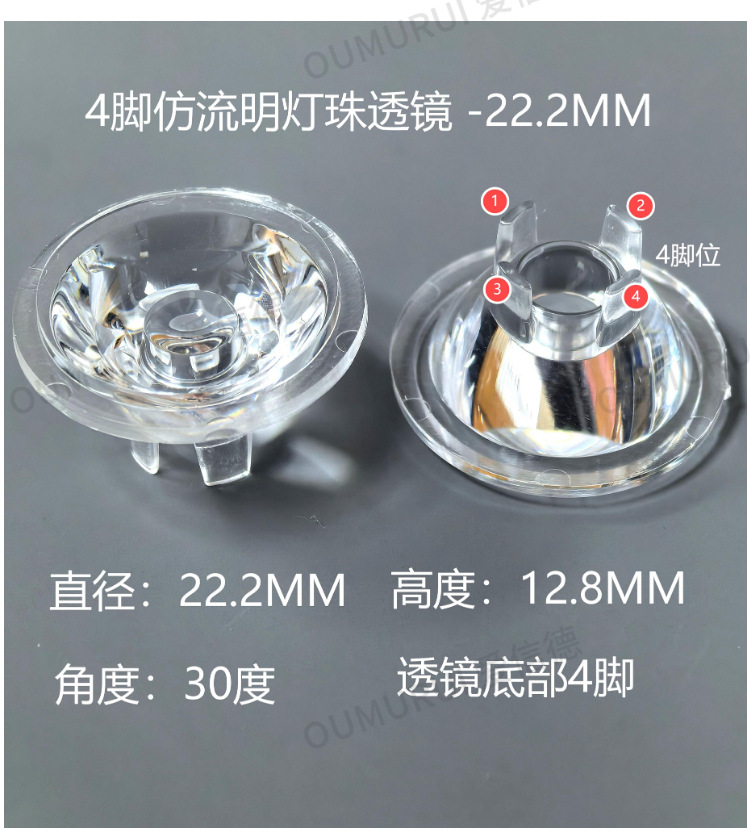 2. 此款透镜采用表面光面,在保证透光的情况下,光斑更加均匀、收光更加干净;