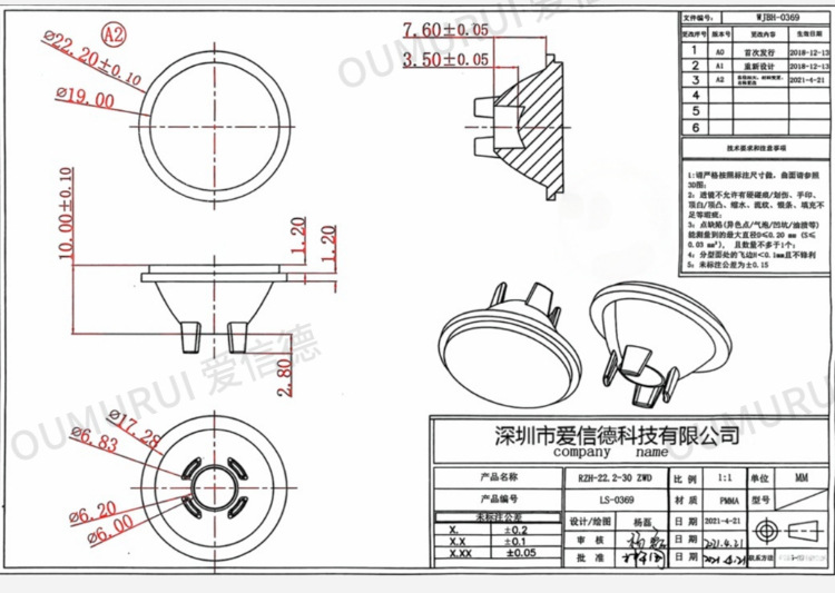 透镜材料:光学级亚克力(PMMA)