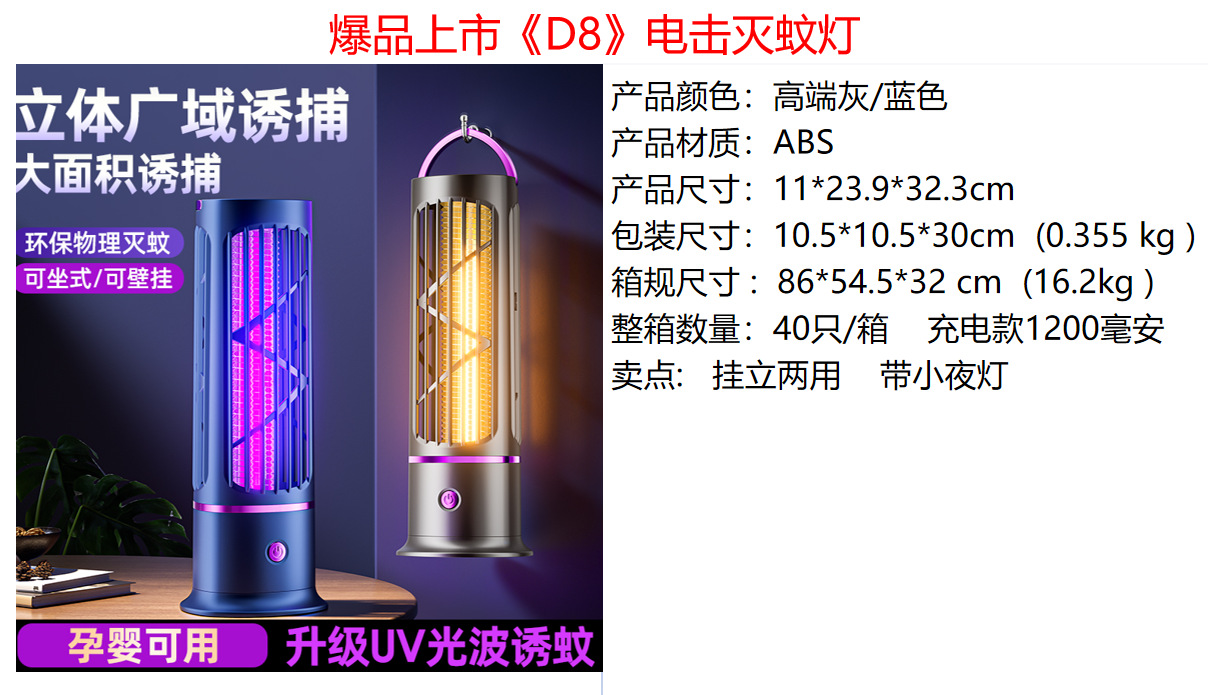 Электрическая лампа от комаров D8, перезаряжаемая, высококачественная, серая; Лампа для уничтожения комаров D8 с электрическим током, перезаряжаемая, синяя; Лампа для уничтожения комаров D8 с электрическим током, прямая подключаемая, высококачественная серая; Лампа для уничтожения комаров D8 с прямой вилкой, синяя