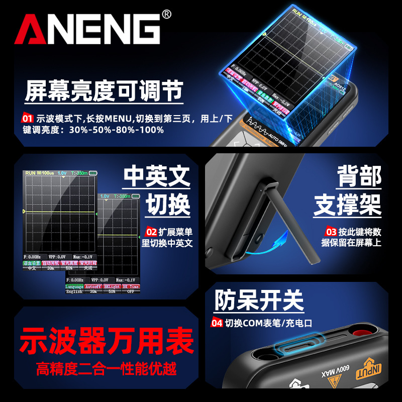 ANENG Ручной цветной экран сигнальный 2-в-1 цифровой интеллектуальный мультиметр антигоревший ремонт бытовой техники резистор емкостный метр