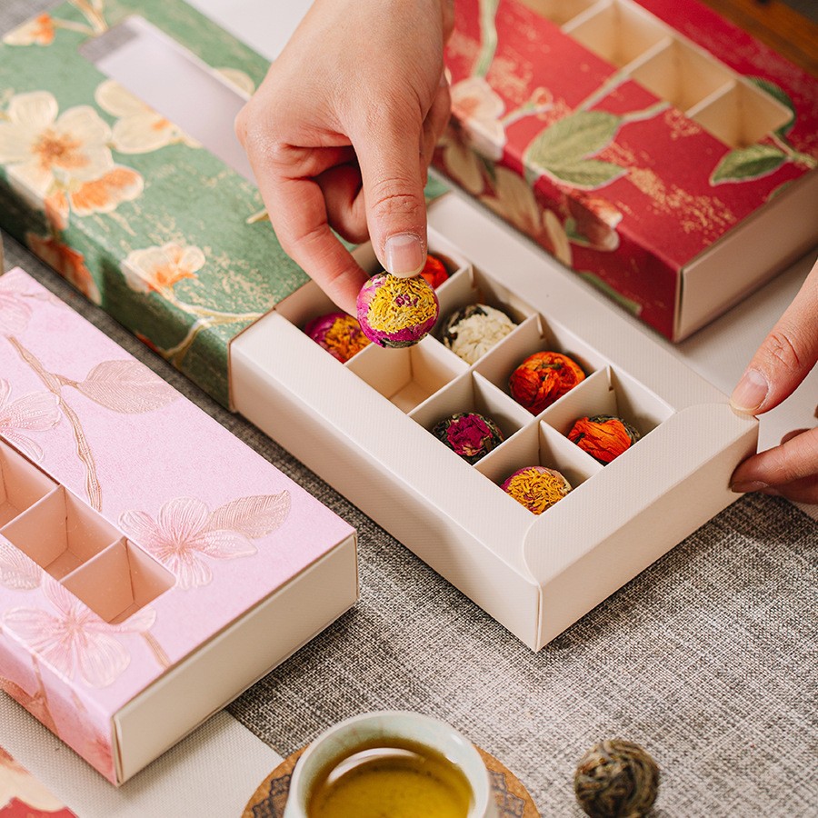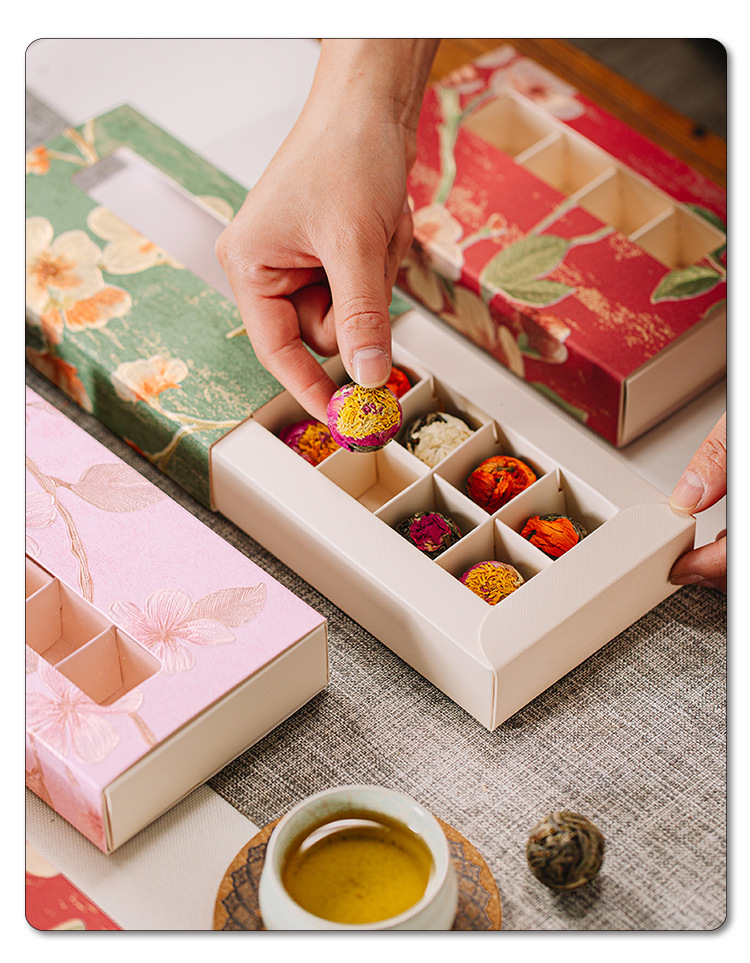 Подарочный набор чая с 8 или 16 чайными шариками «Драконий жемчуг», включая образцы белого чая Фудинг и чая пуэр, а также упаковка для чая из шиповника.