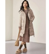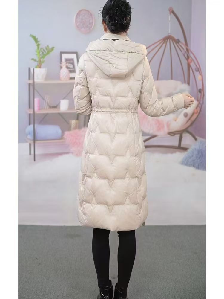 J555 новая зимняя модная длинная куртка-пуховик с капюшоном и шнурком на талии для похудения