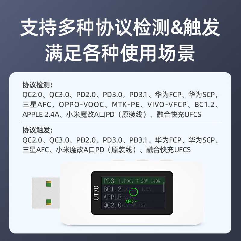 Zhengdian Atomic USB тестер UT70 детектор мощности зарядки вольтметр тока мобильного телефона протокол-приманка
