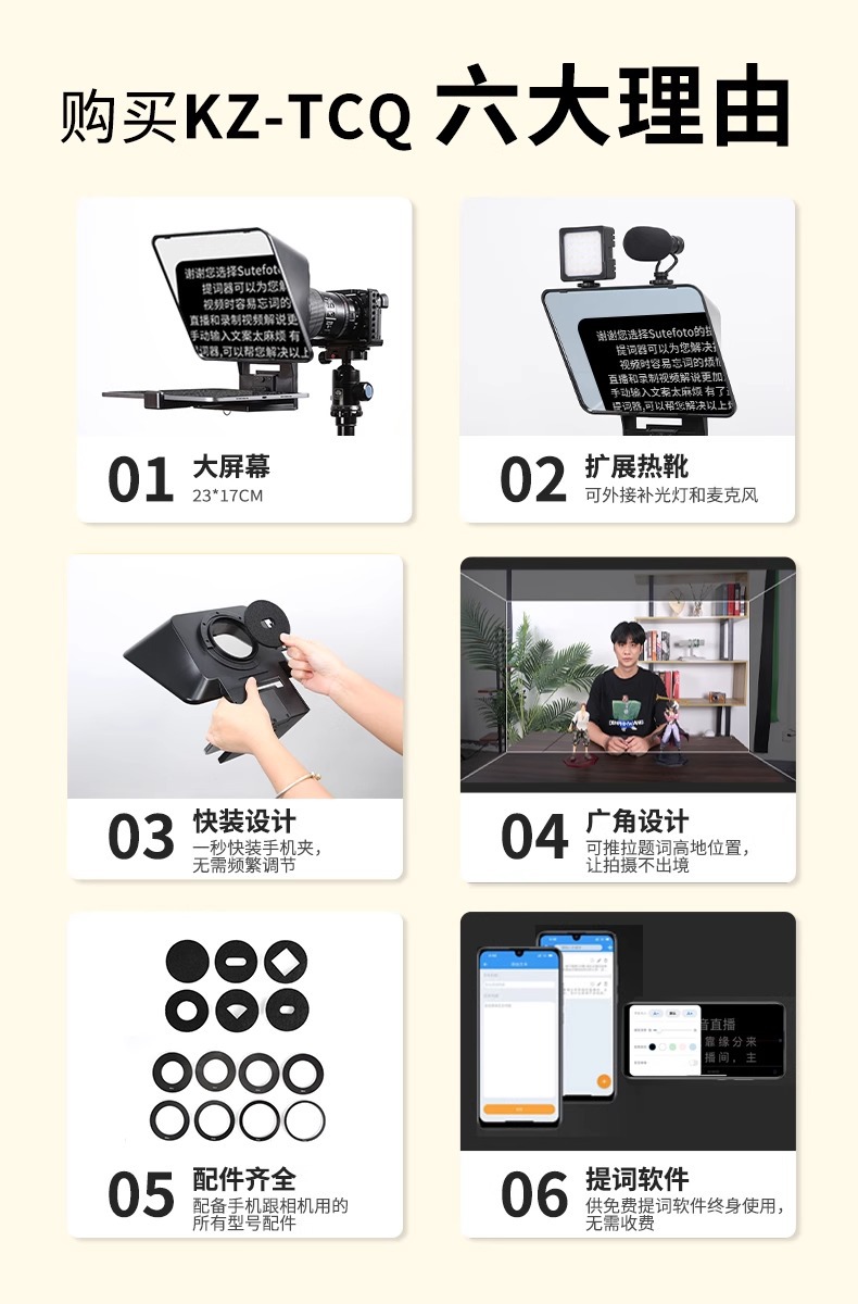 Телесуфлер KZ-TCQ (обновление для быстрой установки T3) [стандартная конфигурация]; Телесуфлер KZ-TCQ (обновление для быстрой установки T3) + настольный штатив; Телесуфлер KZ-TCQ (обновление быстрой установки T3) + 2m кронштейна