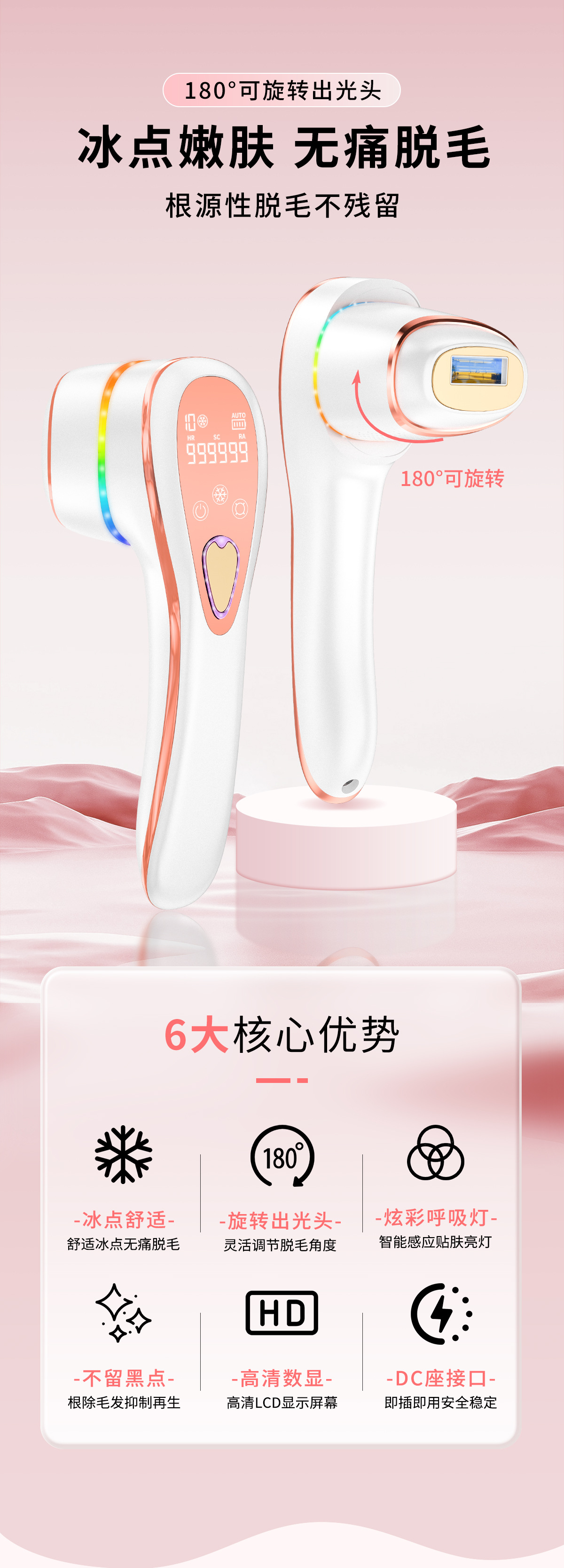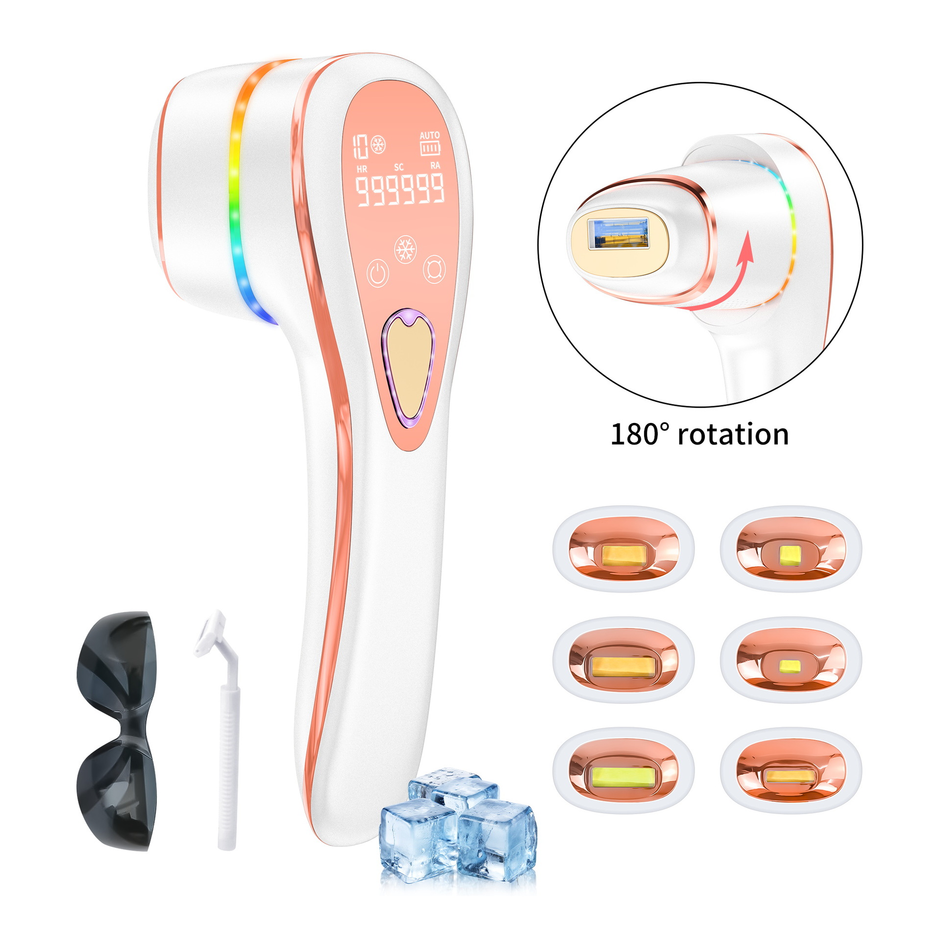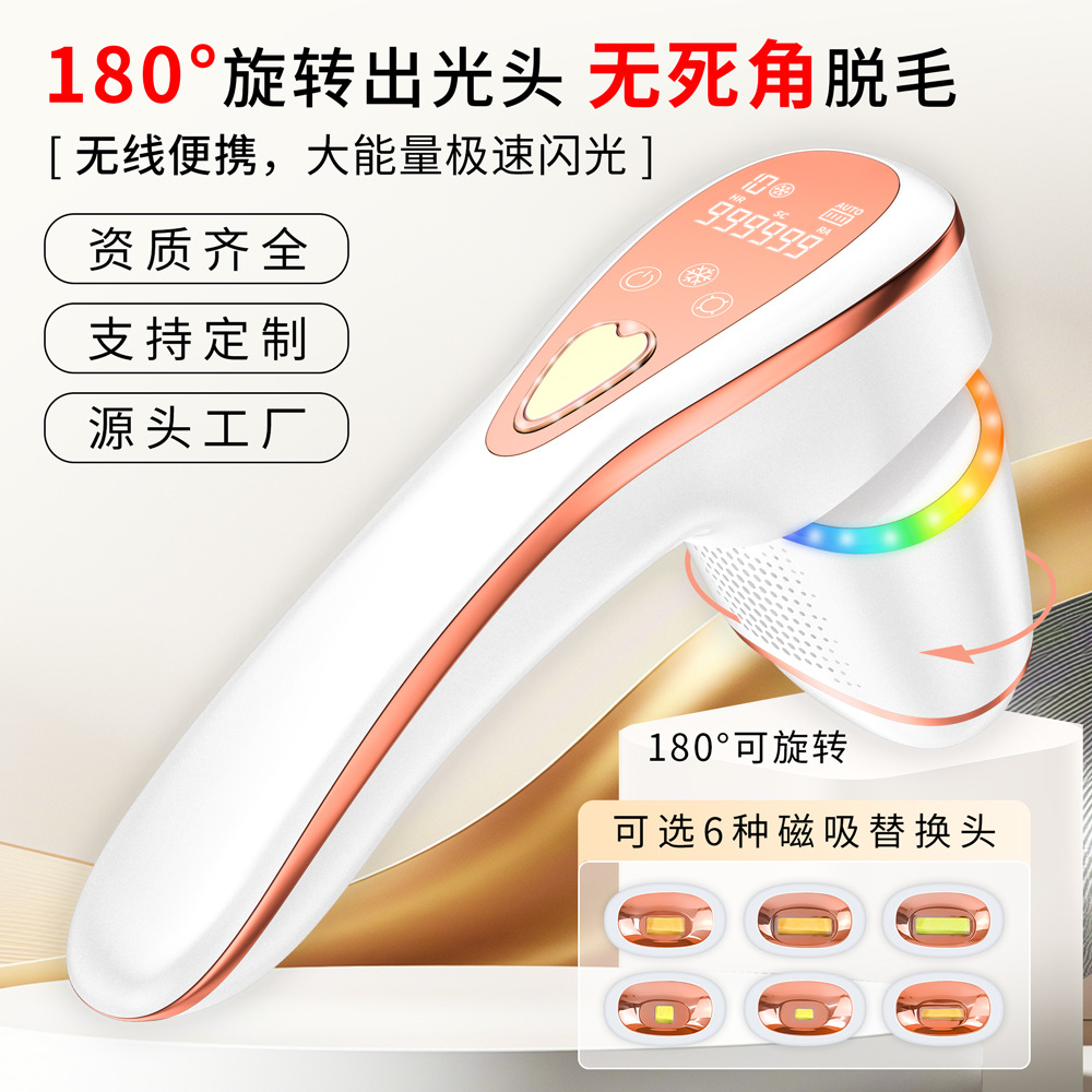 Портативный лазерный аппарат для безболезненного удаления волос и омоложения кожи всего тела с функцией фотонной терапии, одобренный FDA, с возможностью зарядки, вращения и использования в домашних условиях.