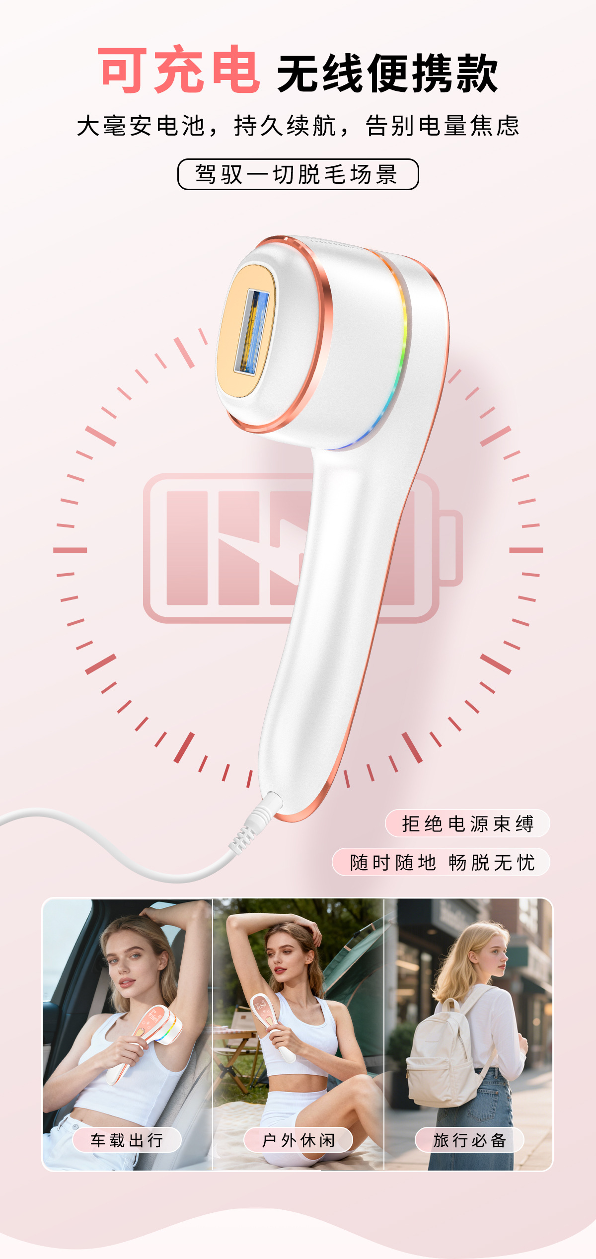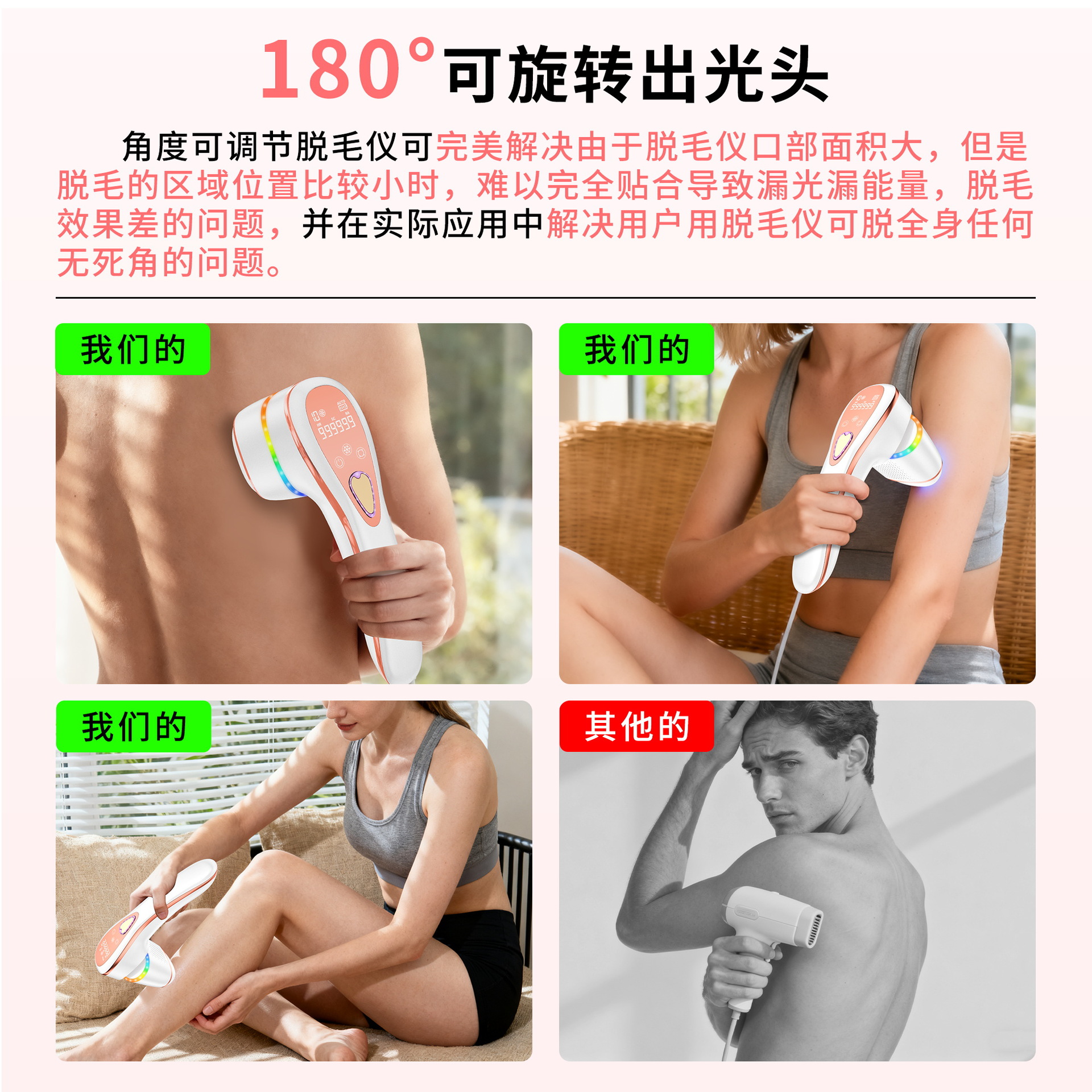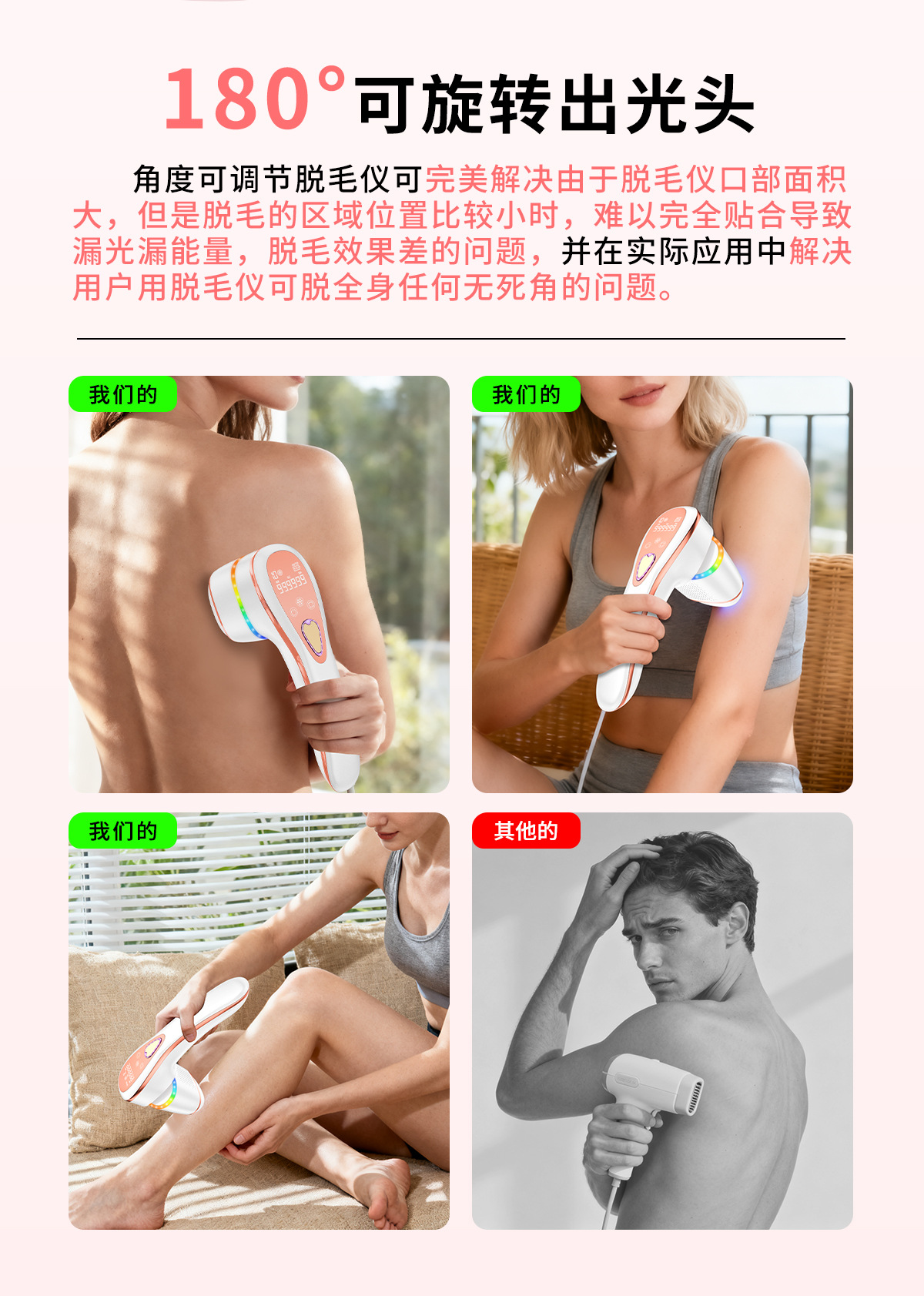 Портативный лазерный аппарат для безболезненного удаления волос и омоложения кожи всего тела с функцией фотонной терапии, одобренный FDA, с возможностью зарядки, вращения и использования в домашних условиях.