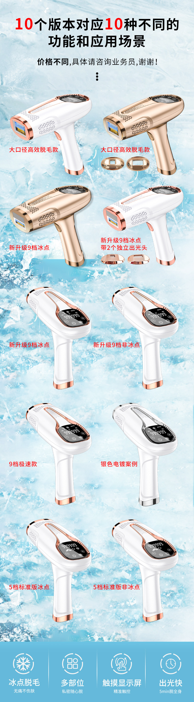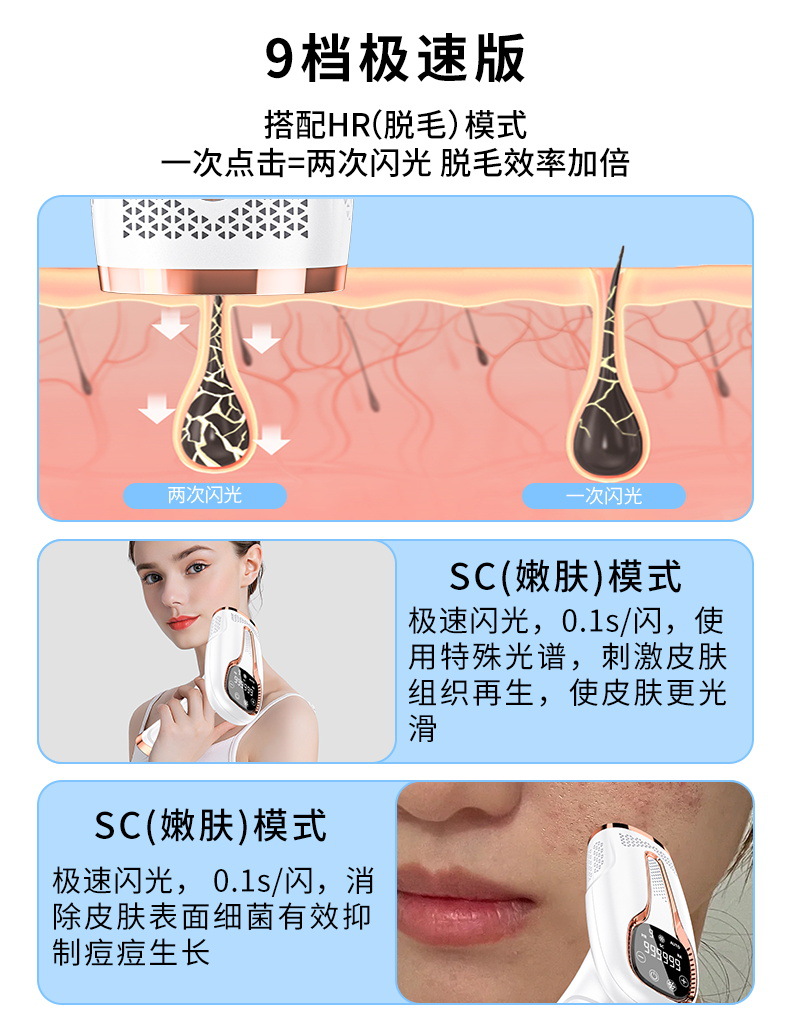 Портативный электрический фотонный аппарат IPL для омоложения кожи, пользующийся большим спросом на международном рынке, для безболезненного лазерного удаления волос по всему телу в домашних условиях методом заморозки.