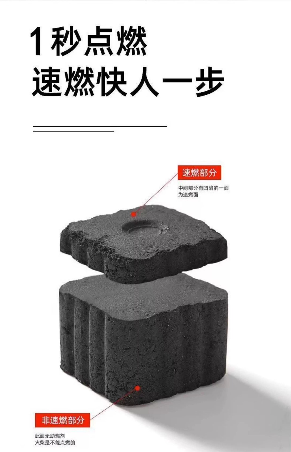 Фруктовый уголь [1 упаковка по 3 шт.] горит быстро и устойчив к горению.