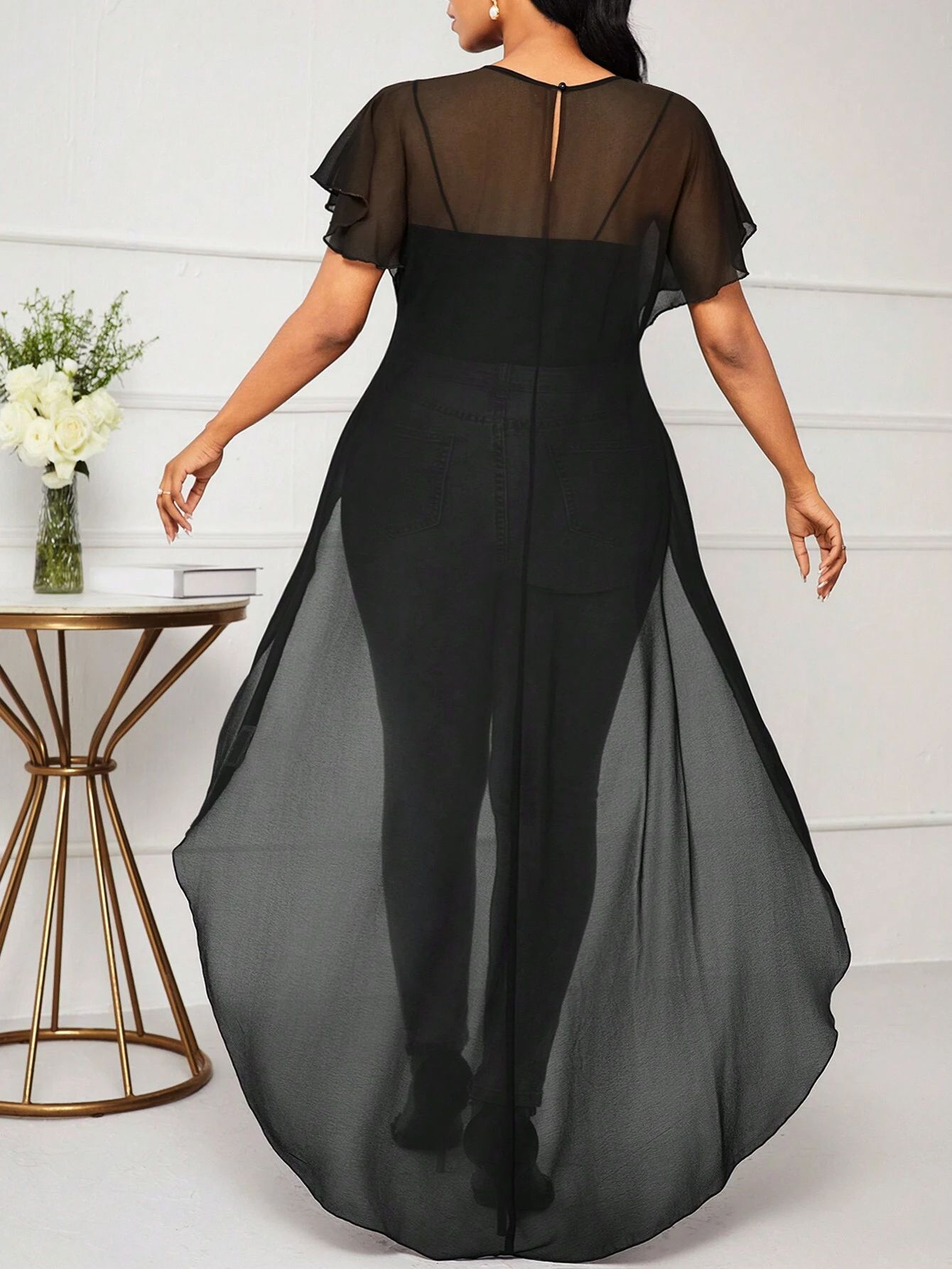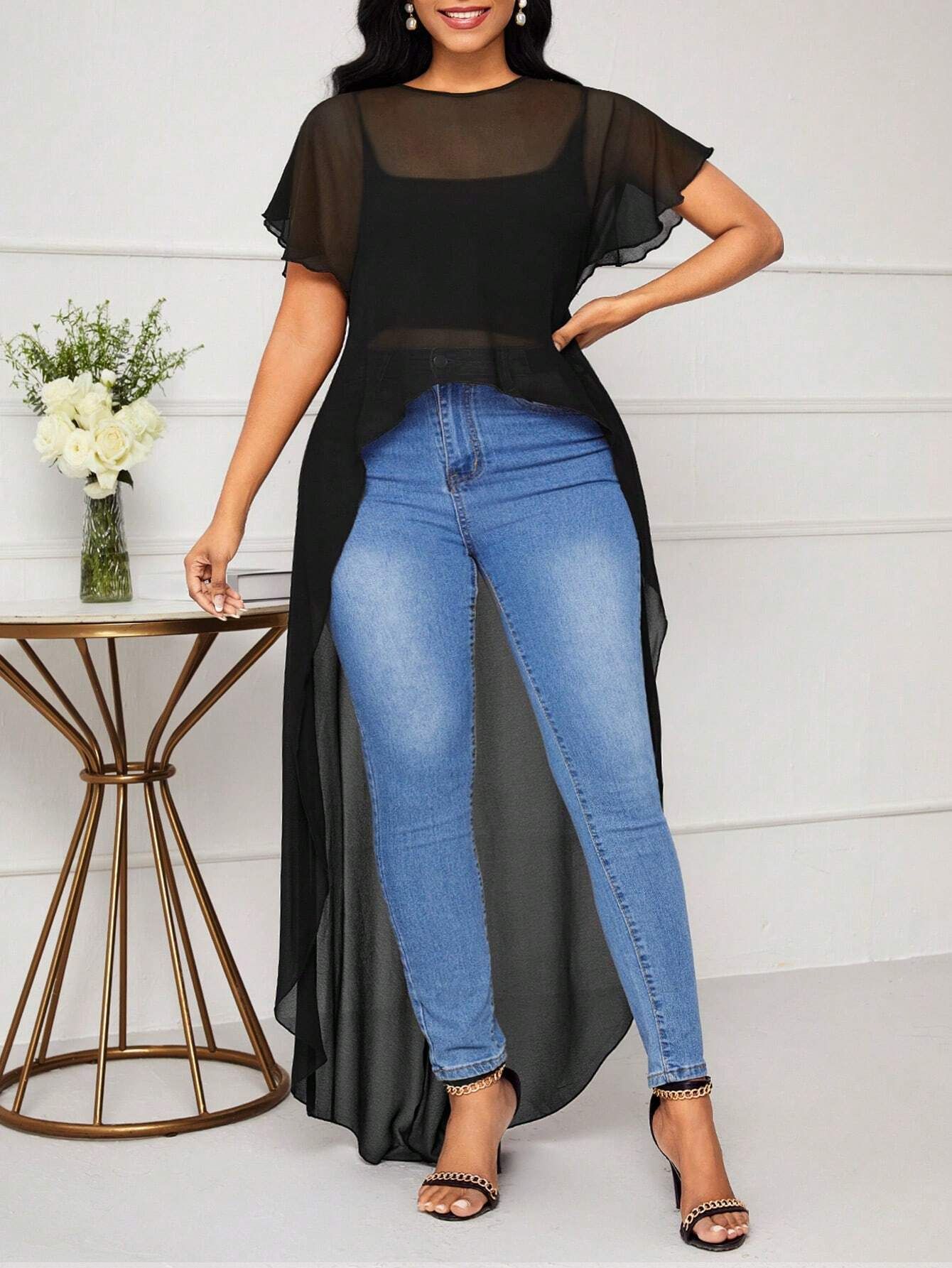 Европейские и американские топы больших размеров для женщин, короткие спереди и длинные сзади, весенне-летние короткие рукава с круглым вырезом, новая свободная праздничная повседневная женская одежда.