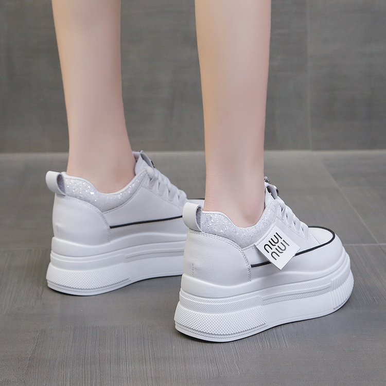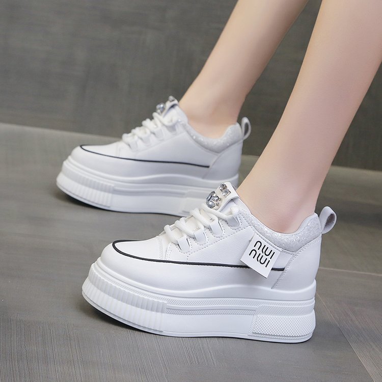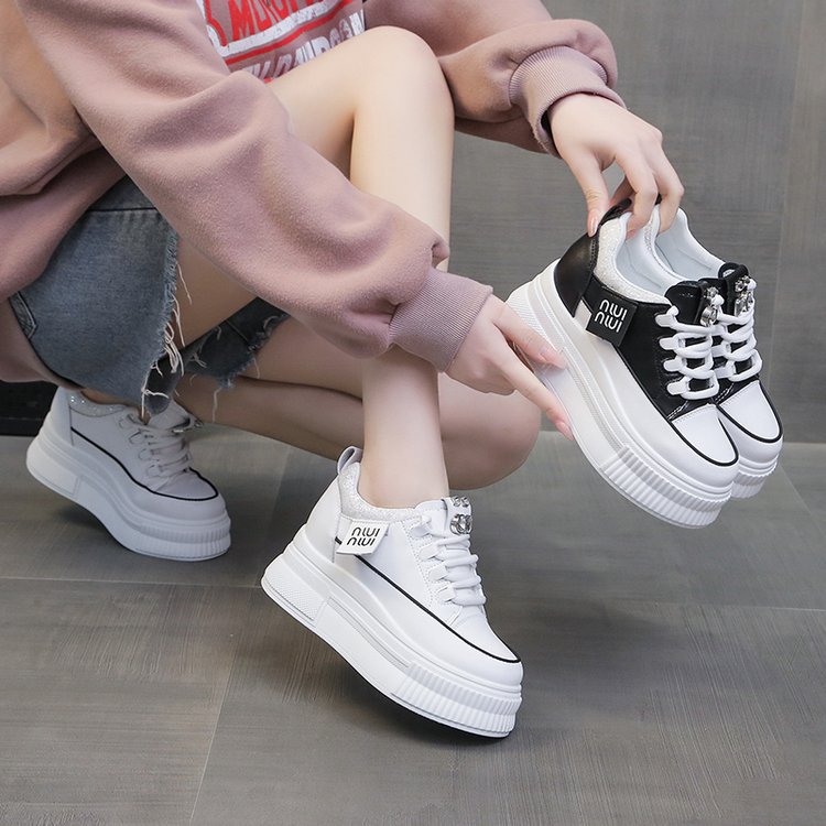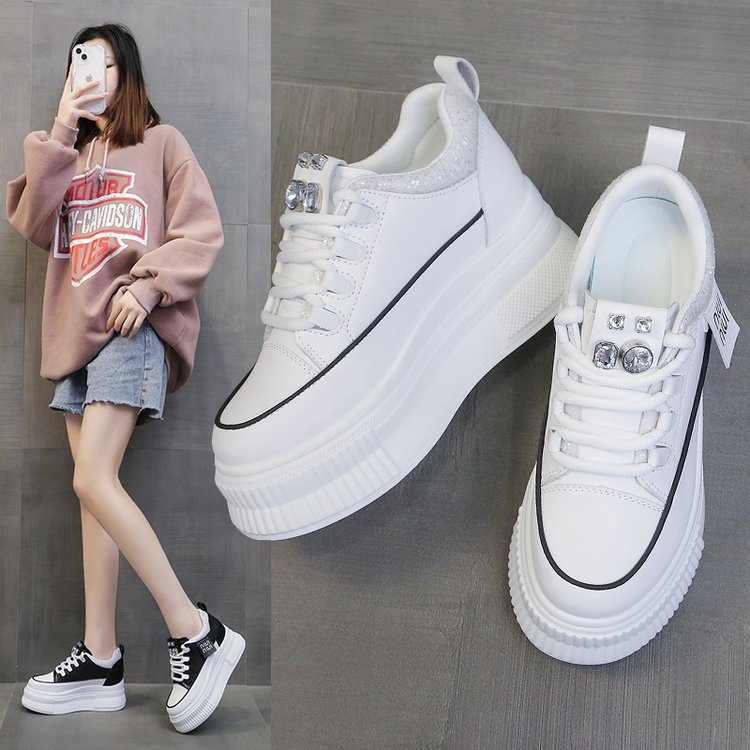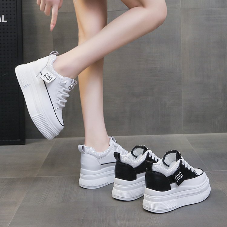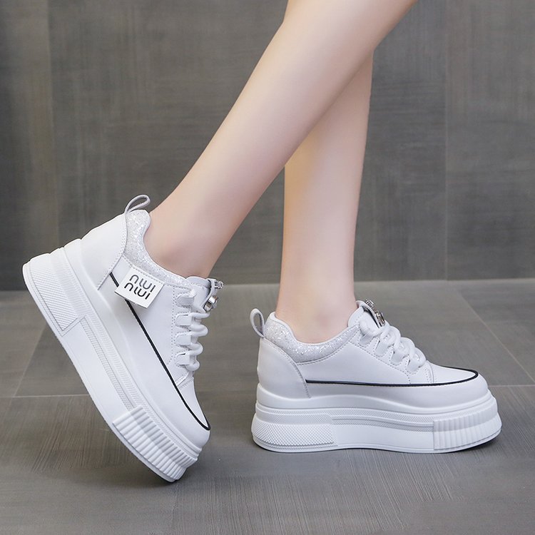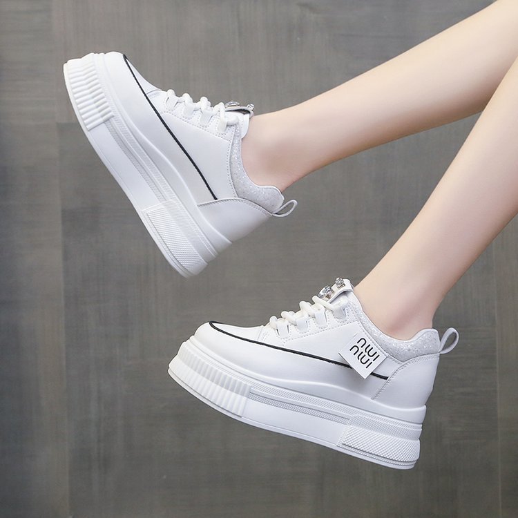 Популярные повседневные спортивные белые туфли на толстой подошве и на танкетке для женщин, популярные модные туфли