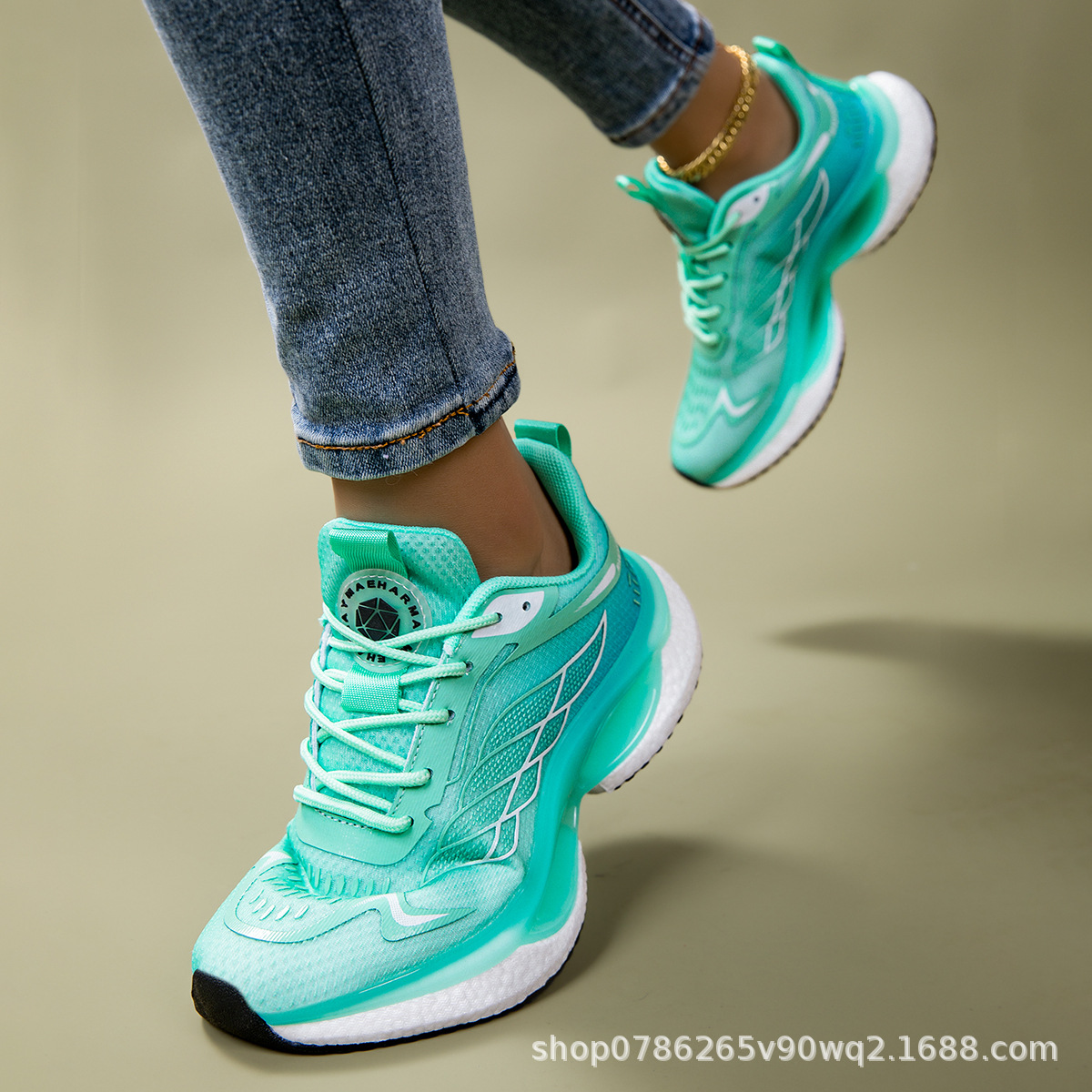 Женская спортивная обувь, верх из дышащей сетки, подошва из композитного материала «попкорн», амортизирующие кроссовки, модная повседневная обувь, трансграничный горячий стиль.
