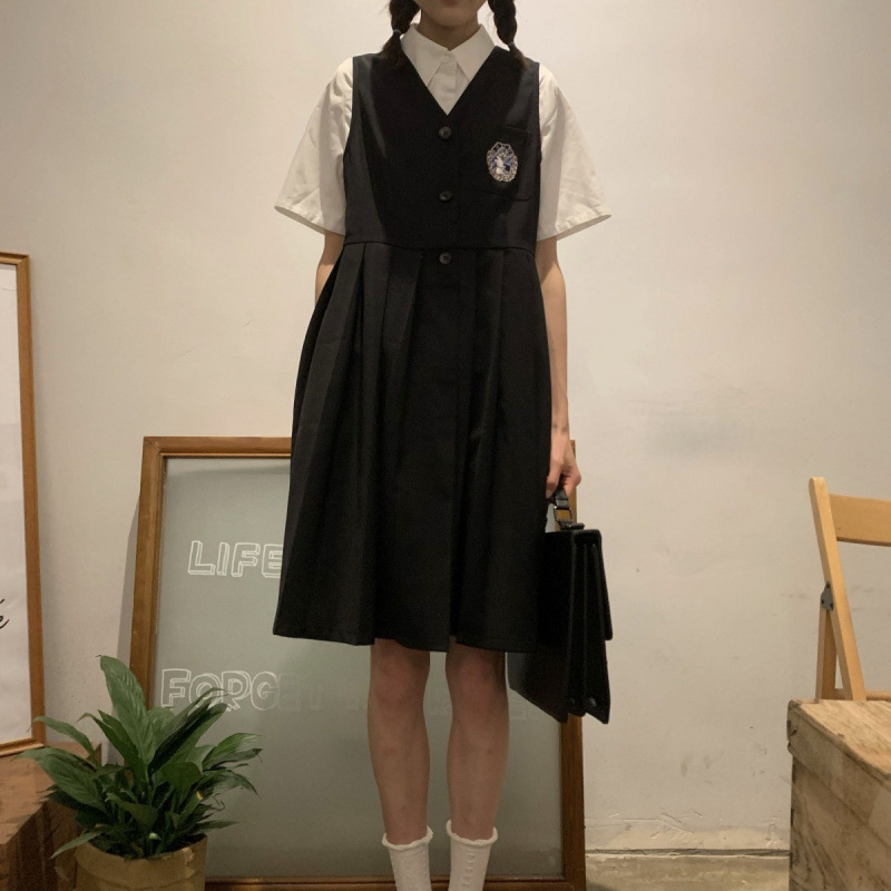 Костюм в летнем студенческом стиле, мягкая форма для девочек jk, кампусная классная форма, рубашка с короткими рукавами, платье на подтяжках