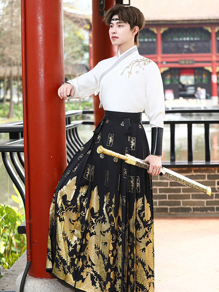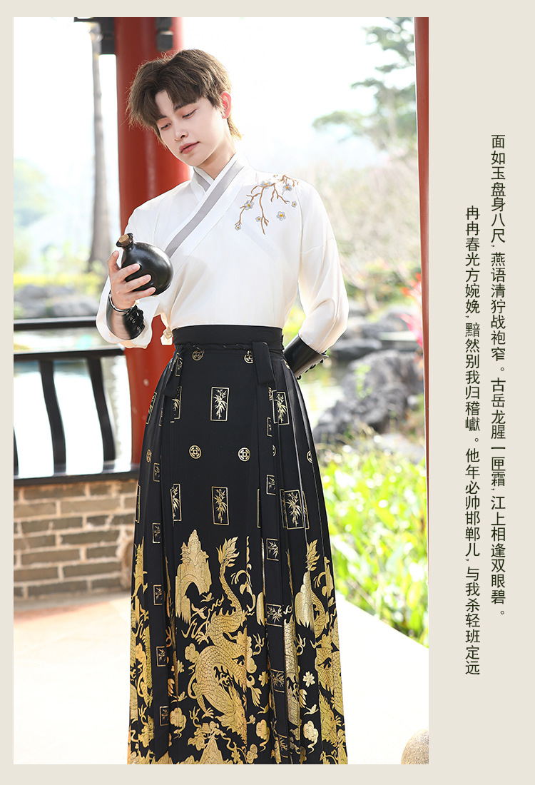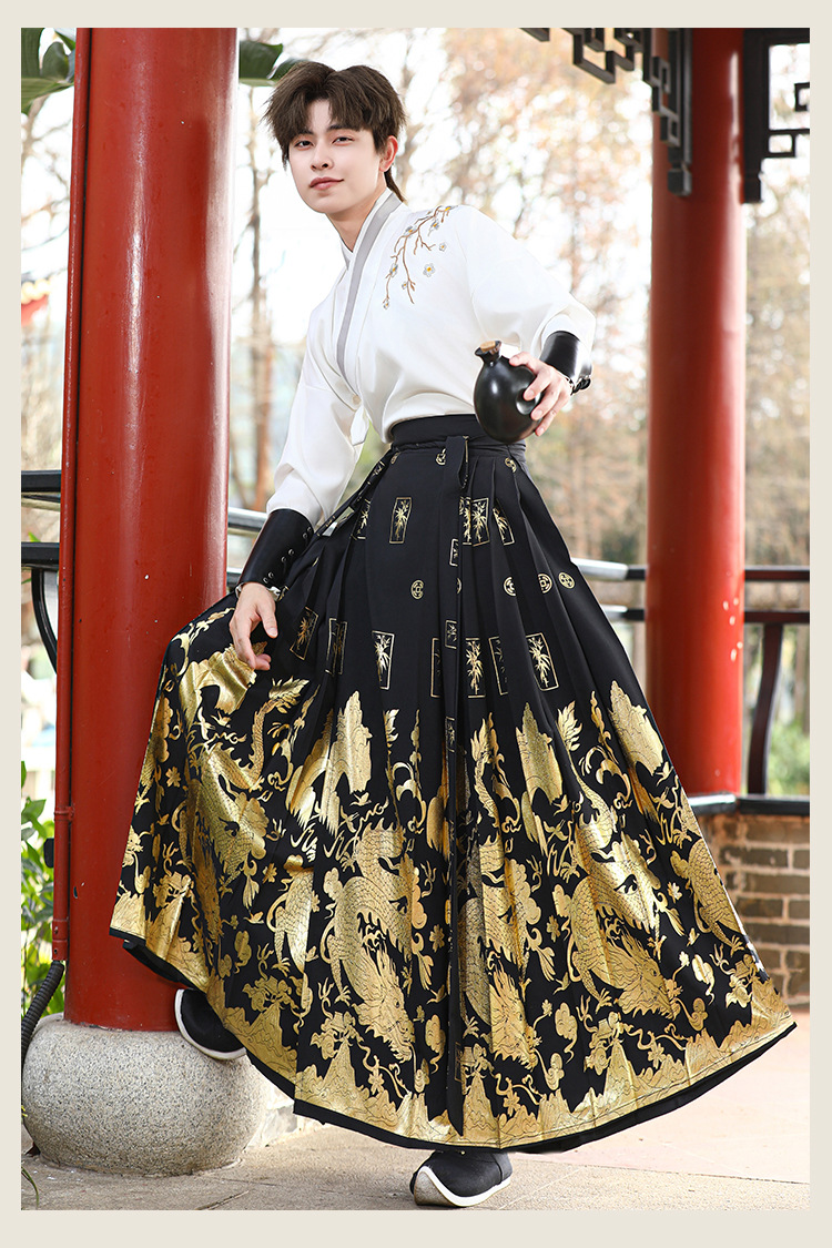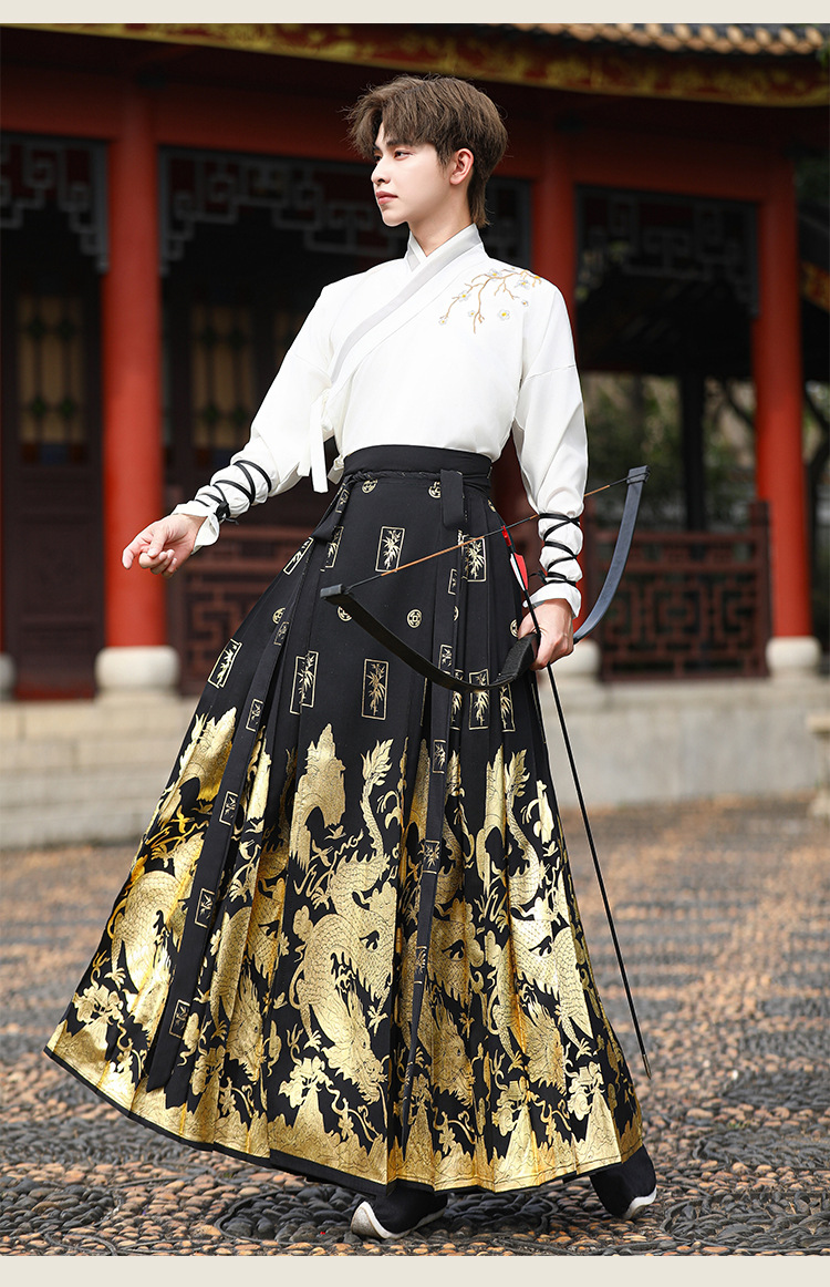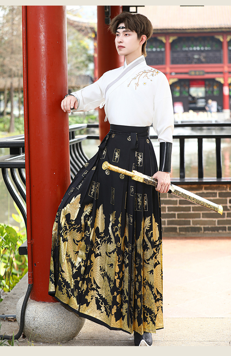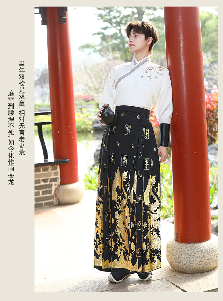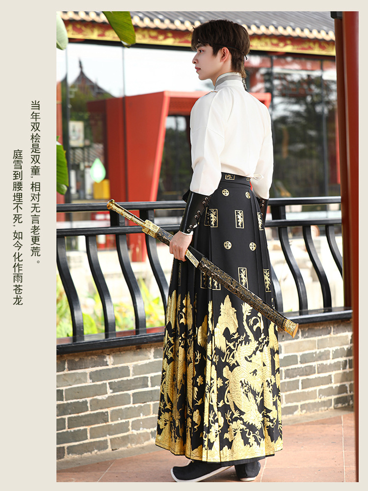 Новая юбка мамиан в китайском стиле с узором дракона и золотым тиснением, большие размеры, древний стиль, белый и черный традиционный мужской костюм ханьфу для боевых искусств