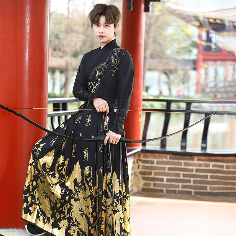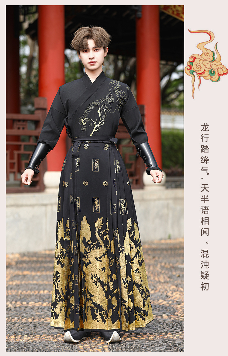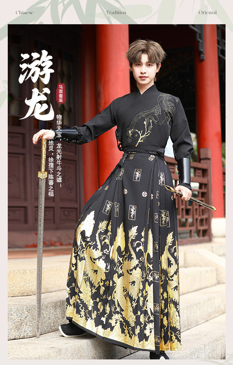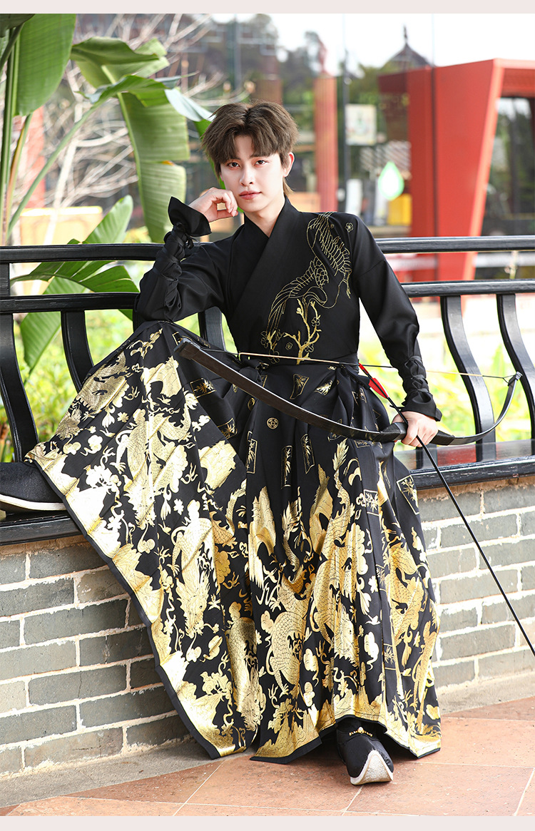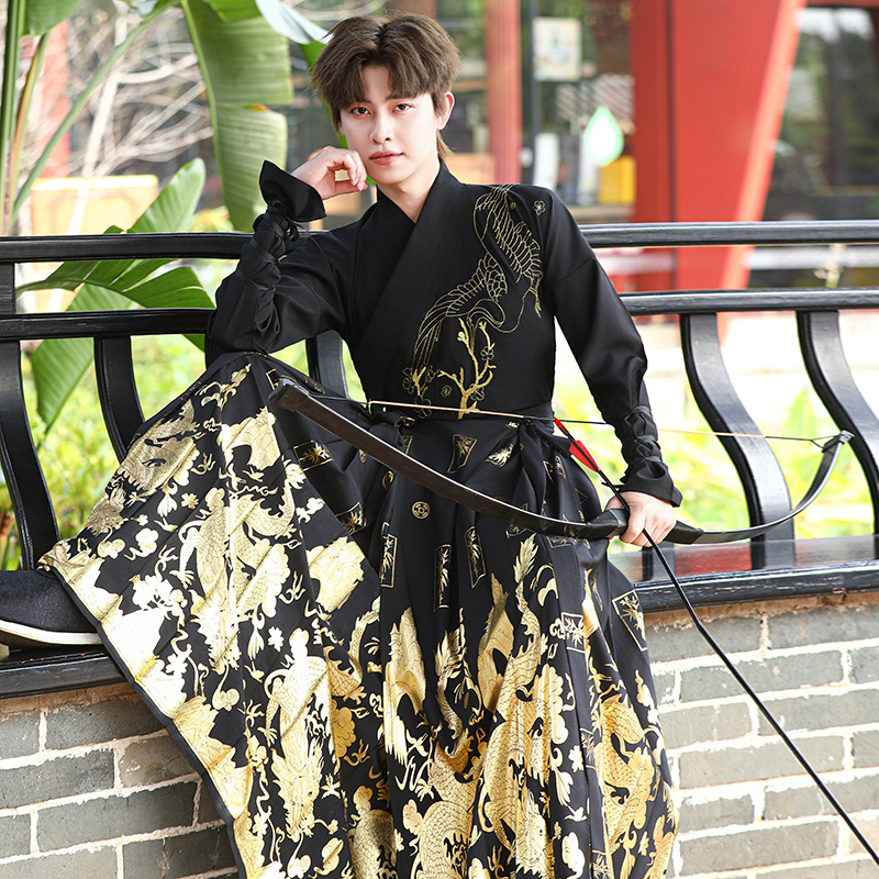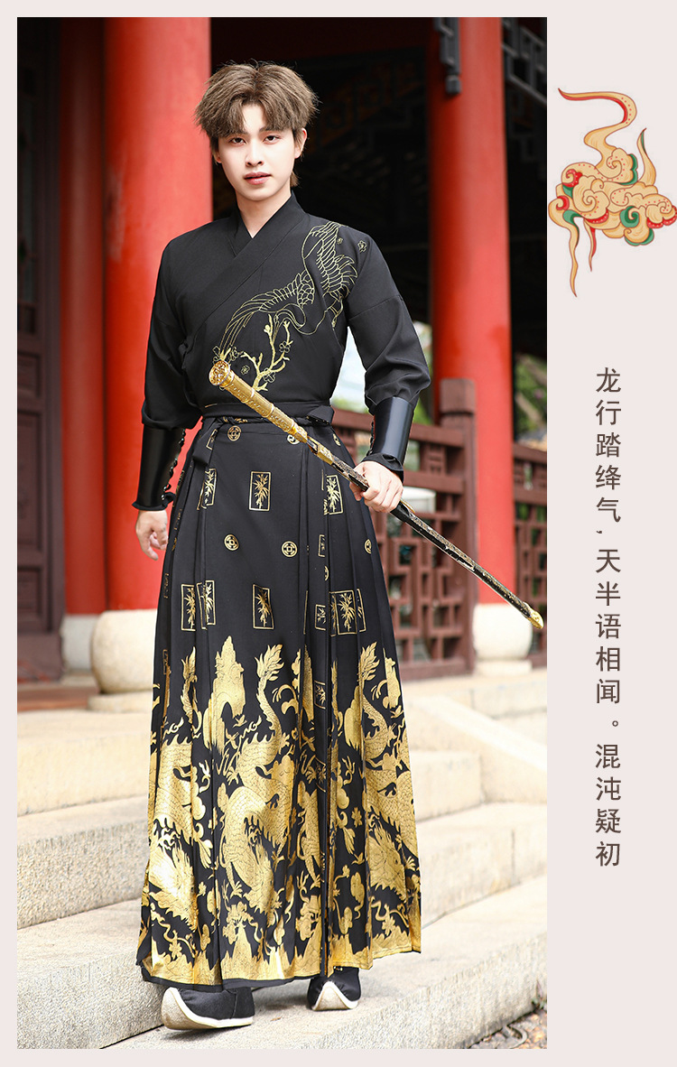 Новая тяжелая юбка с рисунком дракона в китайском стиле, мужская одежда Hanfu, древний костюм в китайском стиле, новый черный национальный трендовый костюм в китайском стиле.