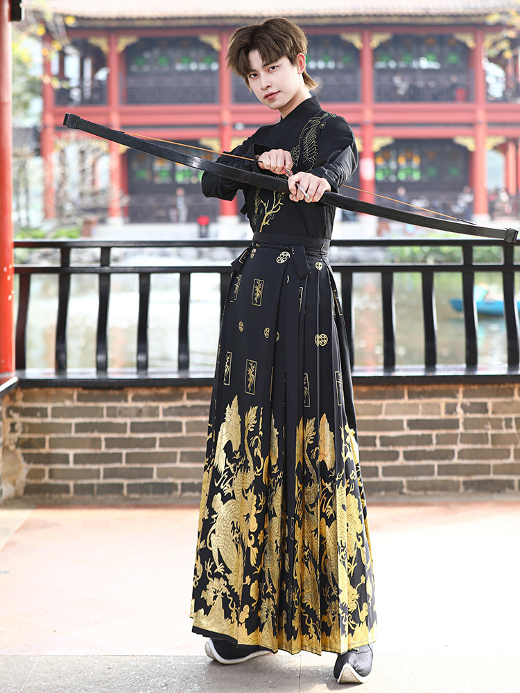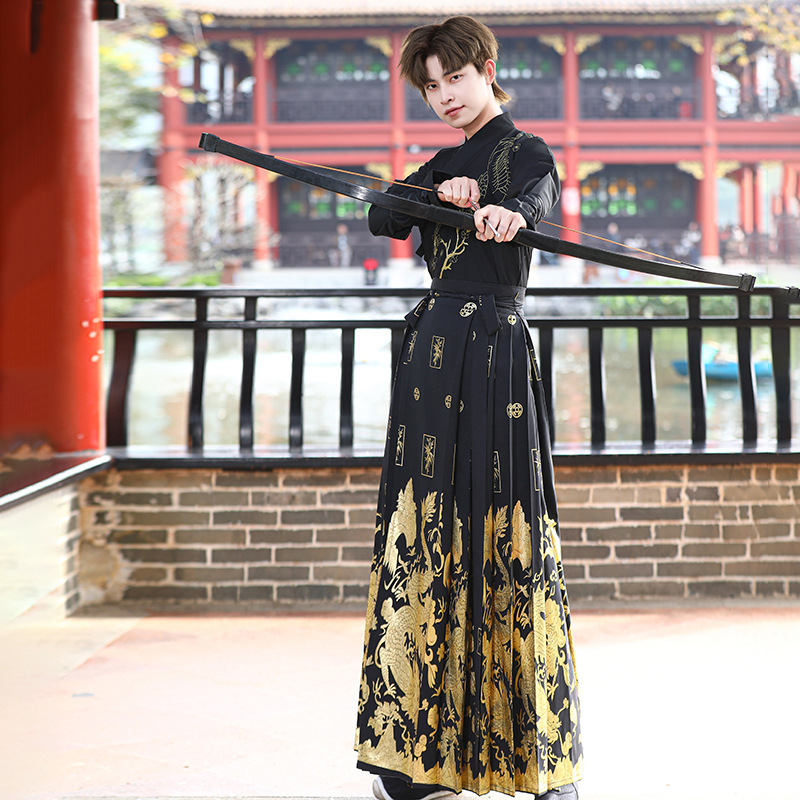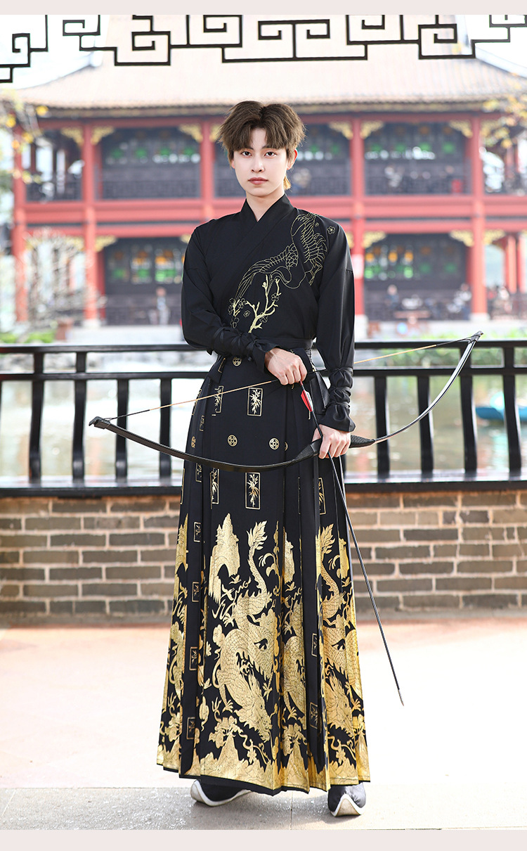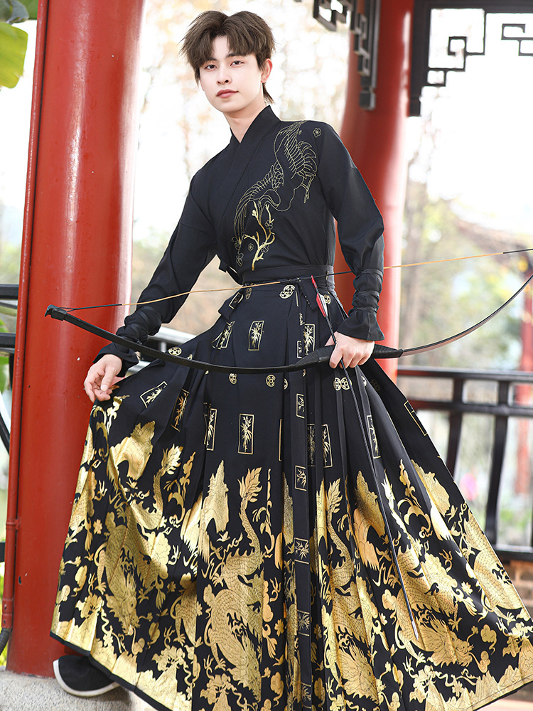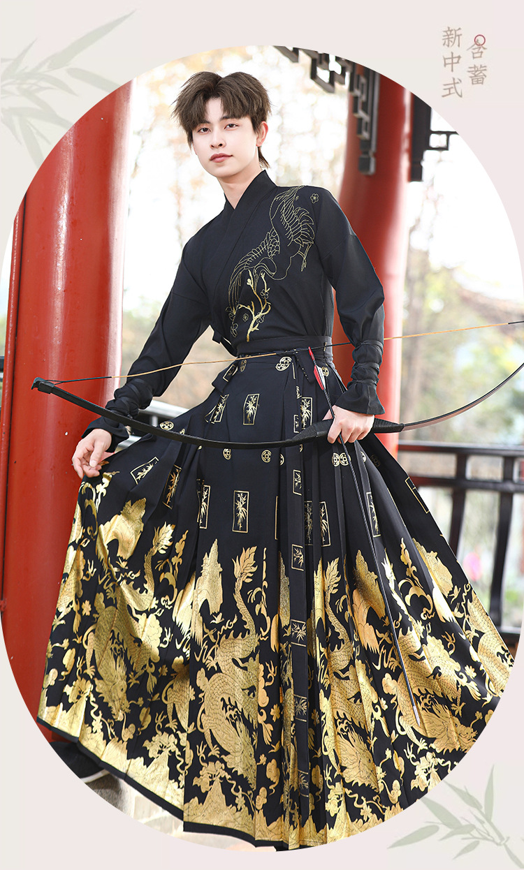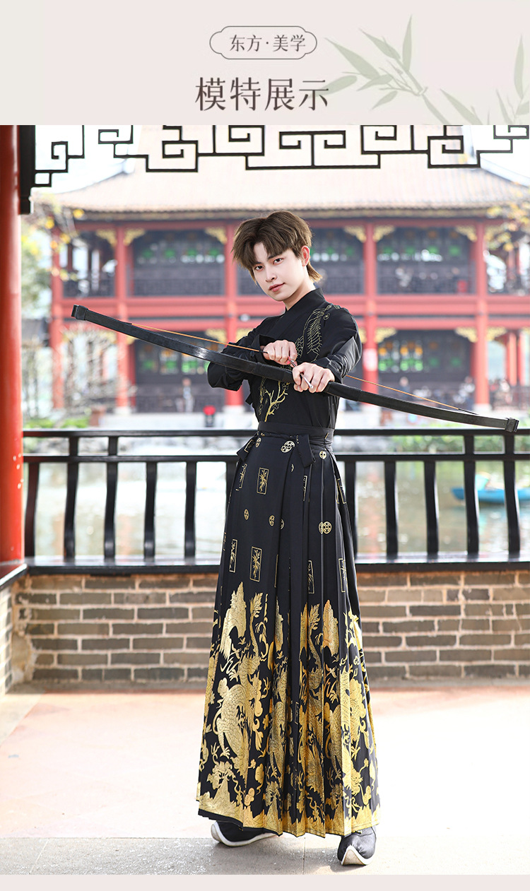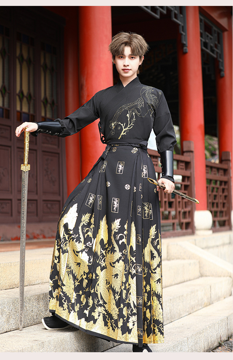 Новая тяжелая юбка с рисунком дракона в китайском стиле, мужская одежда Hanfu, древний костюм в китайском стиле, новый черный национальный трендовый костюм в китайском стиле.