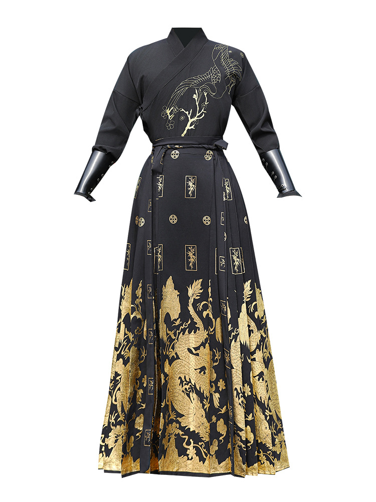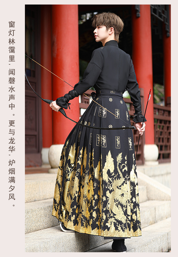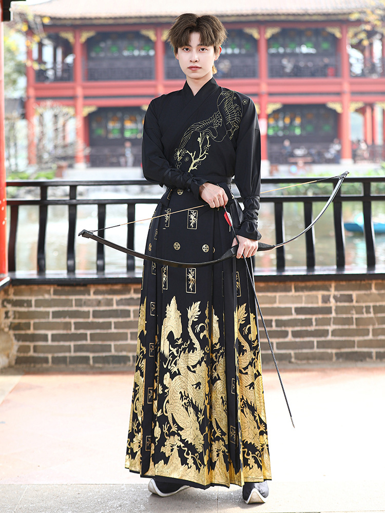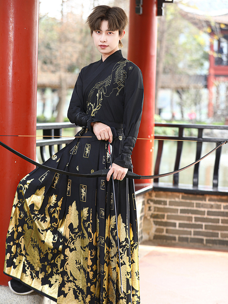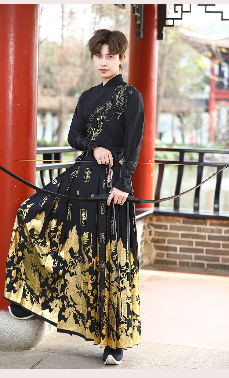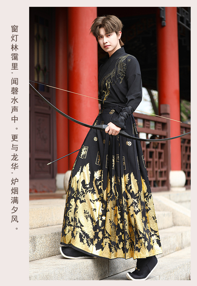 Новая тяжелая юбка с рисунком дракона в китайском стиле, мужская одежда Hanfu, древний костюм в китайском стиле, новый черный национальный трендовый костюм в китайском стиле.