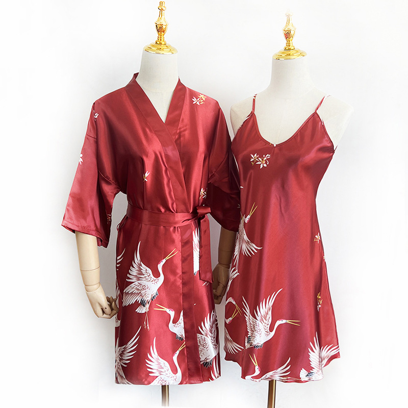 Трансграничный ледяной шелк в китайском стиле, кардиган большого размера, ночная рубашка, халат, летний тонкий шелковый свадебный халат, халат для подружки невесты