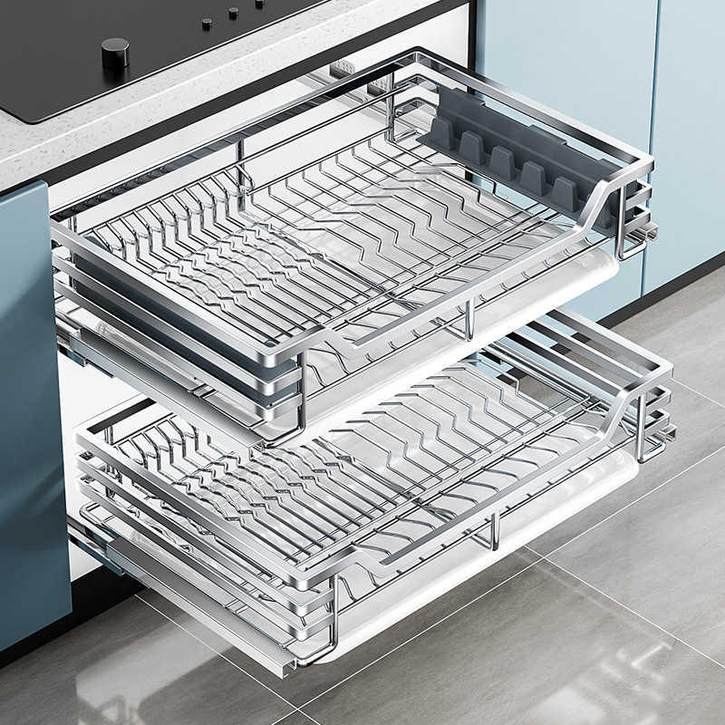 Корзина Mugosha, кухонный шкаф, корзина для мисок, корзина для мисок из нержавеющей стали 304, квадратная сталь, двухслойный шкаф для специй, кухонный шкаф, посуда и миски