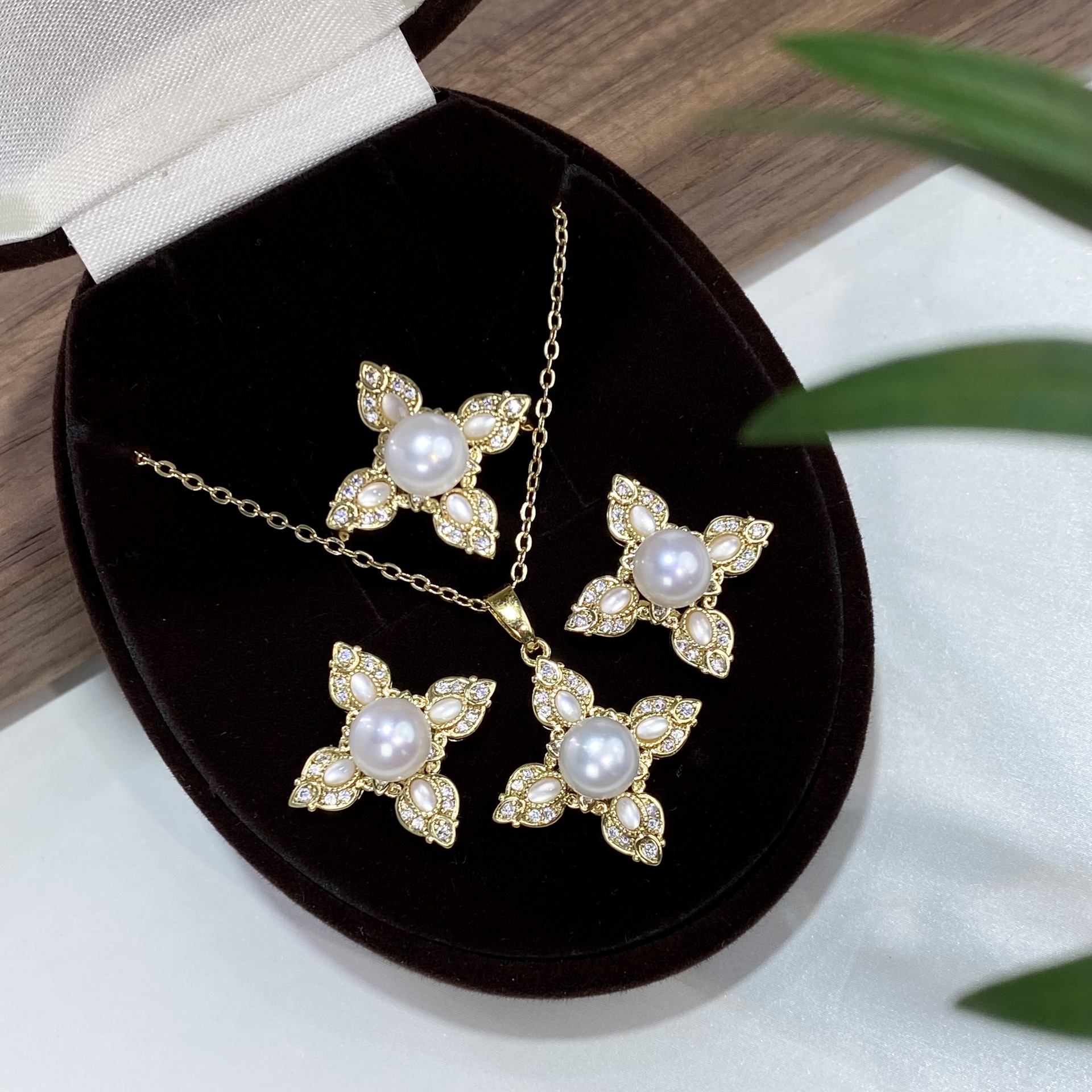 День матери натуральный перламутр с бриллиантами легкий экстравагантный набор из трех частей женского кольца серьги-гвоздика подвеска s925