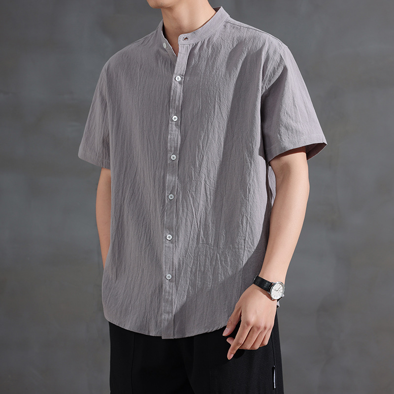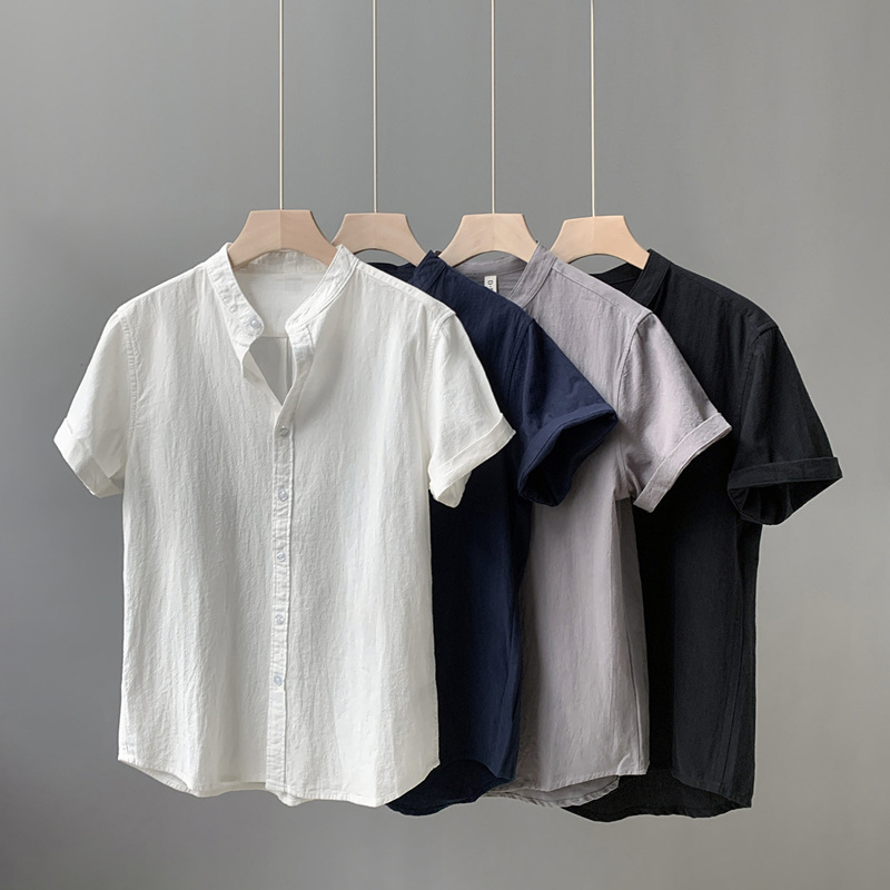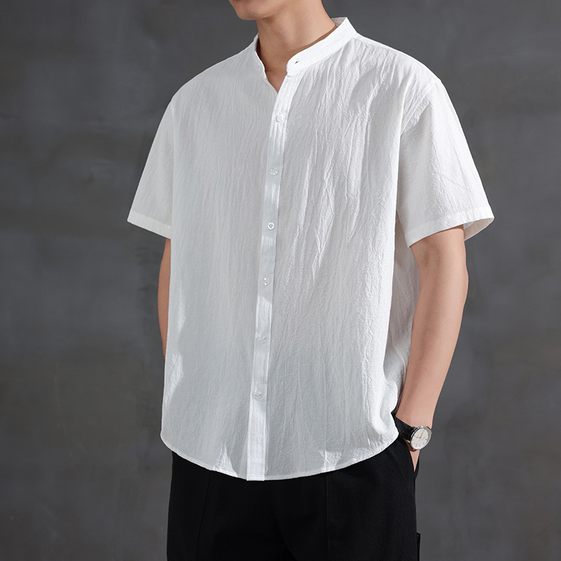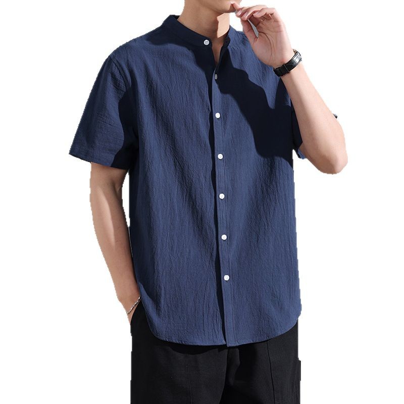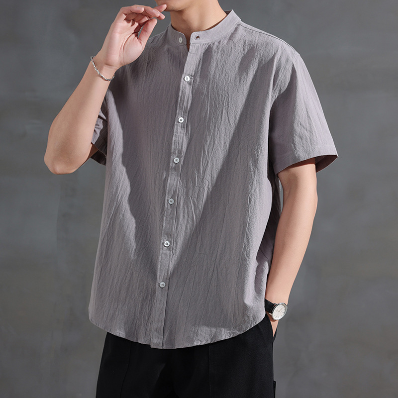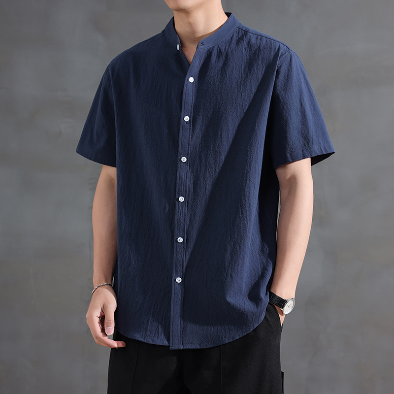 Новая летняя рубашка в китайском стиле с воротником-стойкой и короткими рукавами, модная деловая повседневная простая легкая роскошная универсальная стильная рубашка, модная