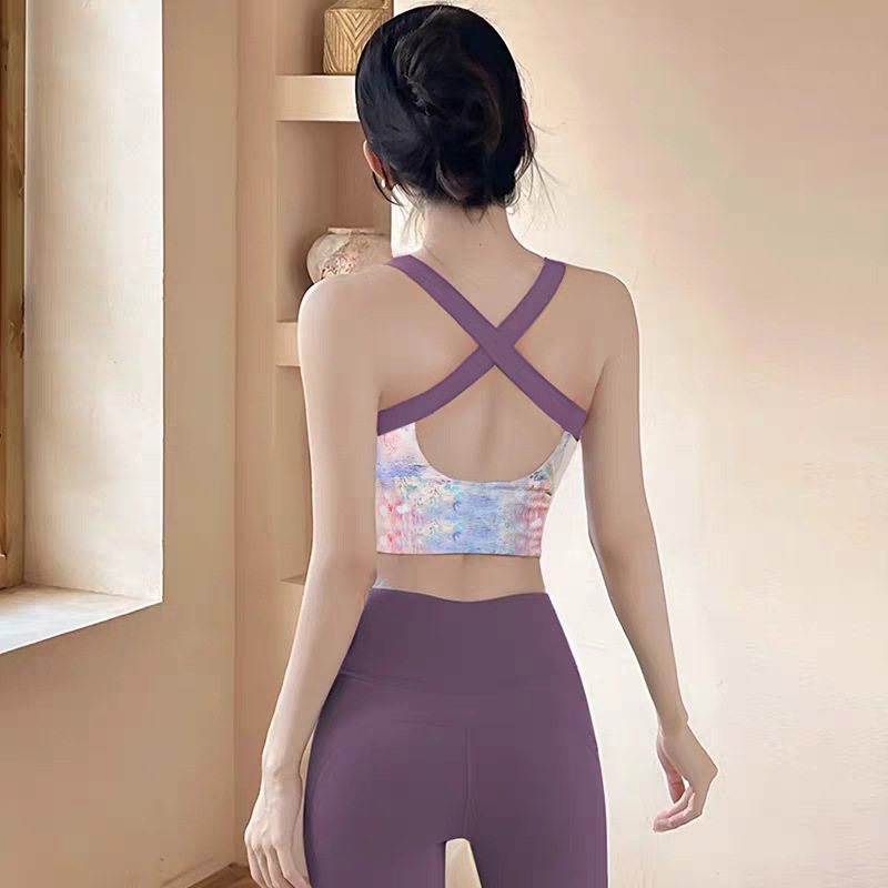Новый тренд принт спортивное нижнее белье женское заднее кроссовер дизайн сексуальная красота спина с нагрудным ковриком короткий жилет