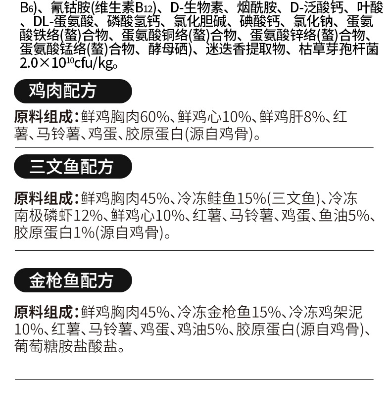 Курица и тунец; Курица и куриная печень; Криль и Лосось; Смешанные три вкуса